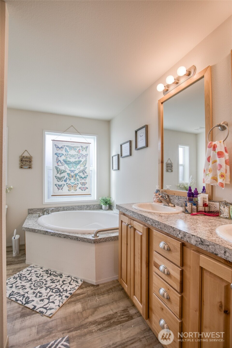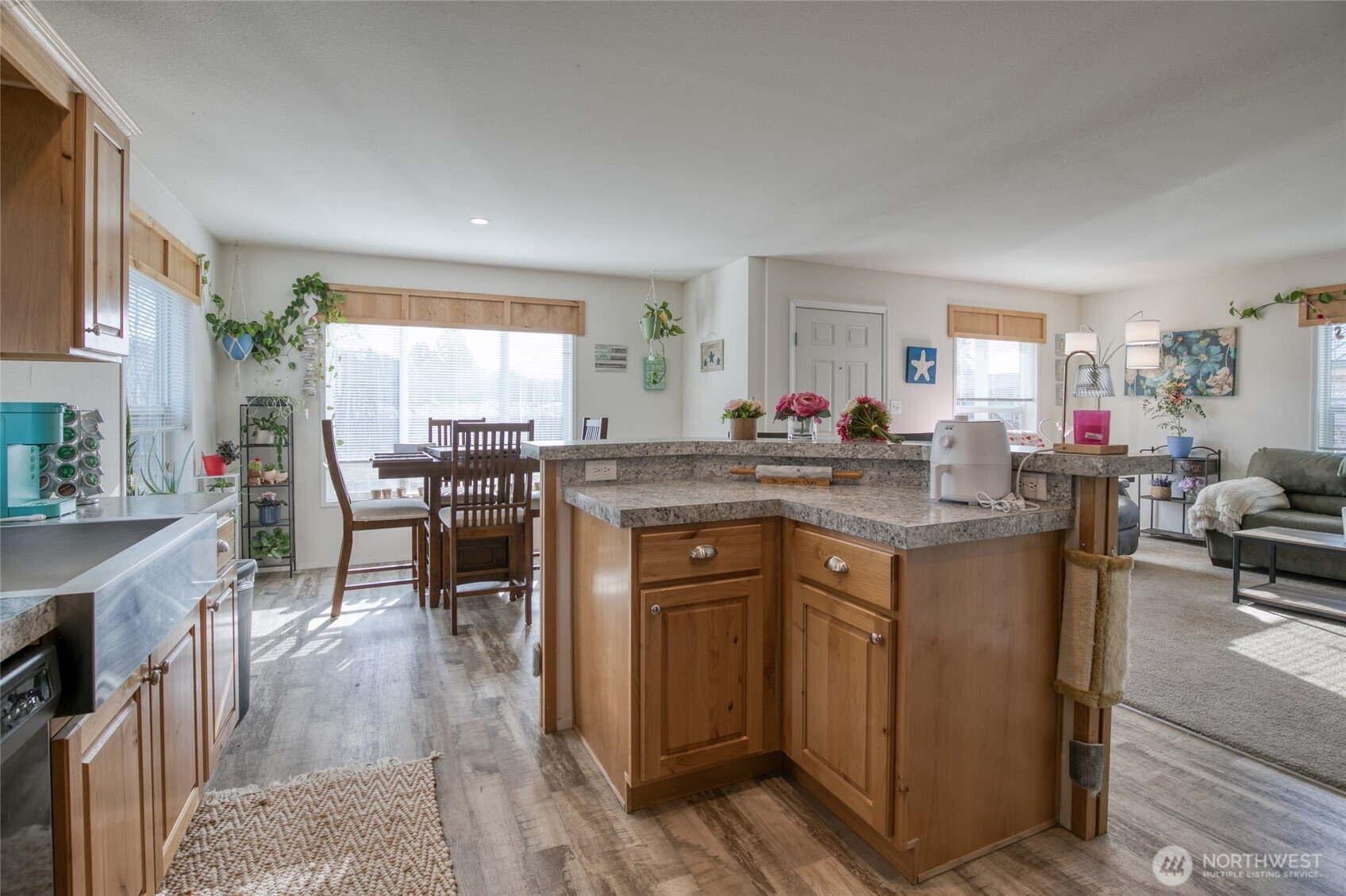 Welcome to Broadway Manor, a newer 55+ community featuring this beautifully maintained 2021 Fleetwood double-wide manufactured home. Offering 1,330 sq ft of thoughtfully designed living space, this home showcases high-end finishes, durable vinyl plank flooring throughout the main living areas, and plush wall-to-wall carpet in the bedrooms. The well-appointed kitchen and two stylish bathrooms provide both function and elegance. Enjoy easy, low-maintenance living with space rent of just $395 per month. Additional features include forced-air heating, a metal roof, and a huge concrete parking pad with a large carport. Pet-friendly community with some restrictions.