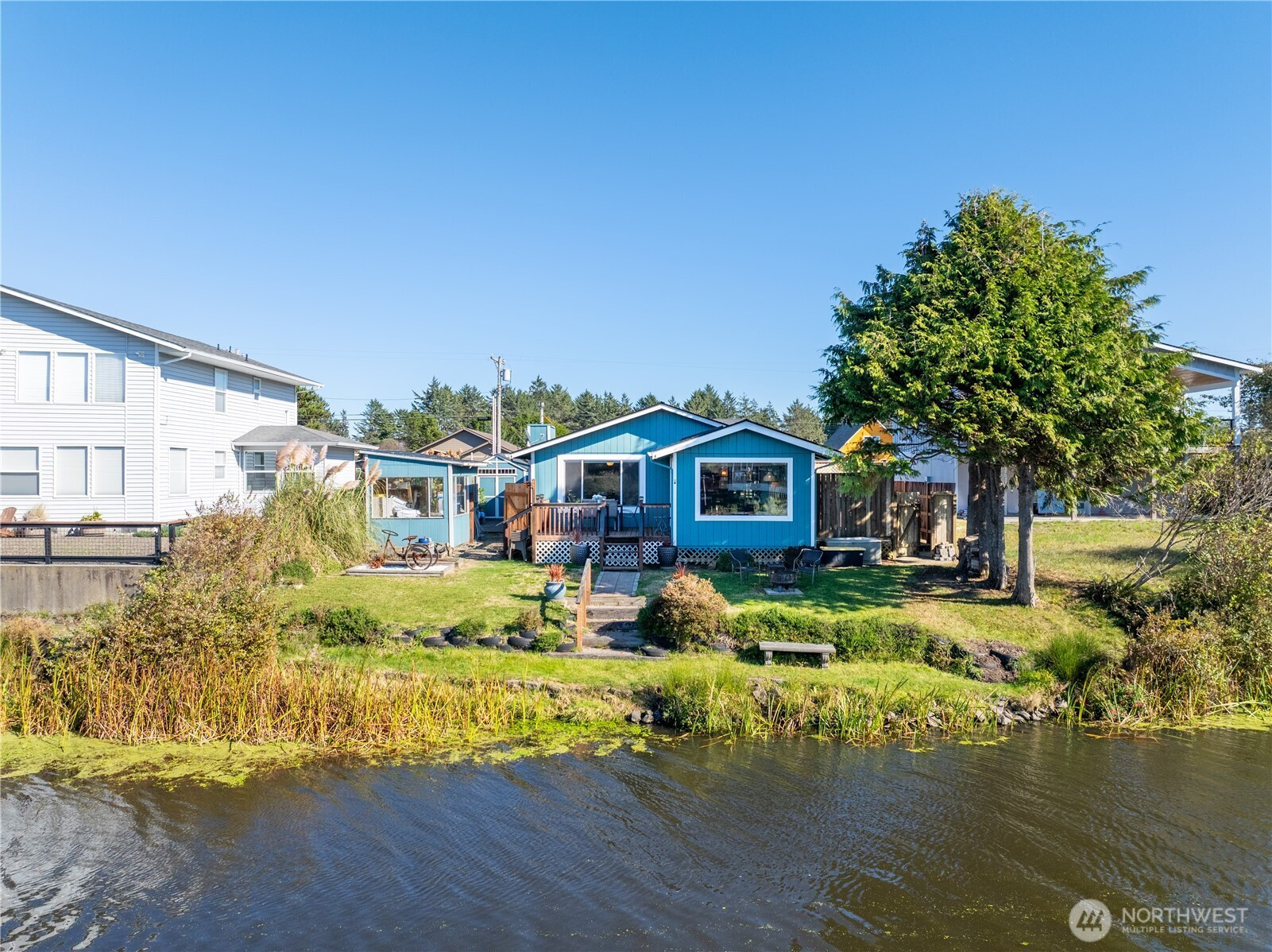 Live your dream on the waterfront w/60ft of canal where you can enjoy fishing & boating from your backyard, and you are only minutes away from the beach. Charming 2Bd 1Bth home plus large bonus room with separate exterior entrance- could be guest quarters, private office, hobby room-you decide. The open concept great room will wow you with views of canal & cozy gas fireplace. Kitchen is open to living space & perfect for entertaining. Relax in the Sunroom facing canal or soak in your hot tub. Outside you will find fenced yard, shed, greenhouse & firepit. One car garage & tons of parking space for autos, boat & hookups for RVs. Enjoy your membership to community club w/amenities such as golf course, pools, parks, boat launch, athletic courts & more. Check out the video tour. Don't miss this great home.