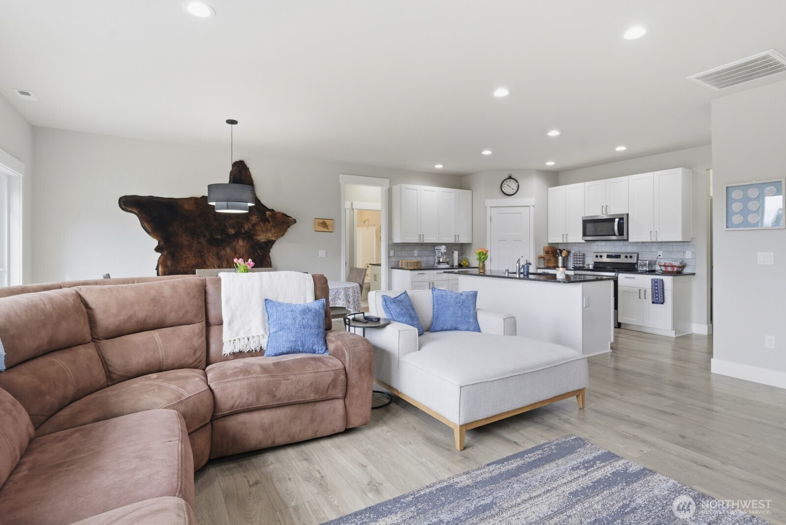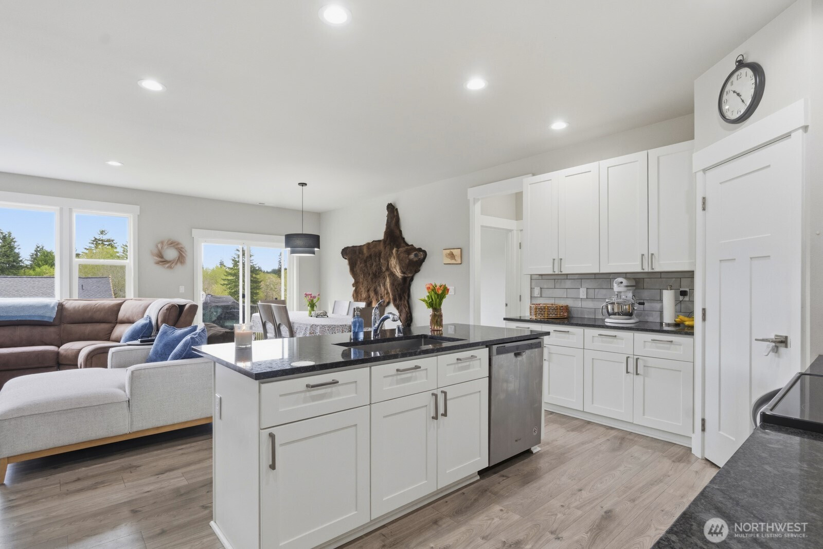 Enjoy the best of both worlds with a peaceful rural setting just 15 minutes from Olympia and convenient access to JBLM. Nestled in the highly desirable Cedar Heights community, this like-new home offers a quiet, friendly atmosphere with a true sense of welcome. Built just 5 years ago, this 1,783 sq ft rambler showcases a bright, open-concept design perfect for modern living and effortless entertaining. Expansive windows flood the home with natural light, accentuating the high-end finishes throughout. The chef-inspired kitchen features custom cabinetry, granite slab countertops, and stainless steel appliances, seamlessly connecting to the main living space. Interior highlights include extensive plank flooring, custom millwork, slab counters and tile flooring in bathrooms, a cozy fireplace, and a high-efficiency heat pump for year-round comfort. With 3 bedrooms and 2 baths, the home offers generously sized, deep closets and abundant storage throughout. The spacious 3-car garage provides room for vehicles, hobbies, and more, along with additional exterior storage for added flexibility. Situated on a premium corner lot, the property offers enhanced privacy and extra outdoor space. Relax or entertain on the private back deck, or enjoy the covered patio below—perfect for all-season outdoor living. Attractive landscaping and well-maintained exterior details complete this move-in-ready gem.