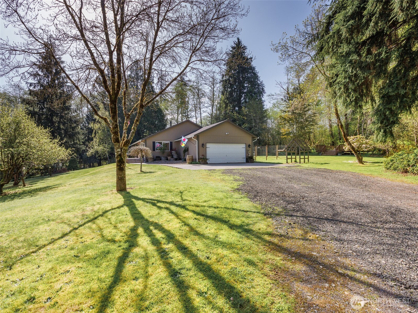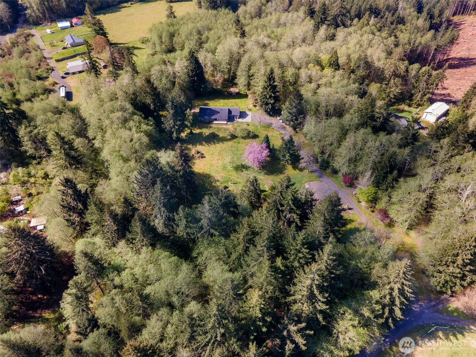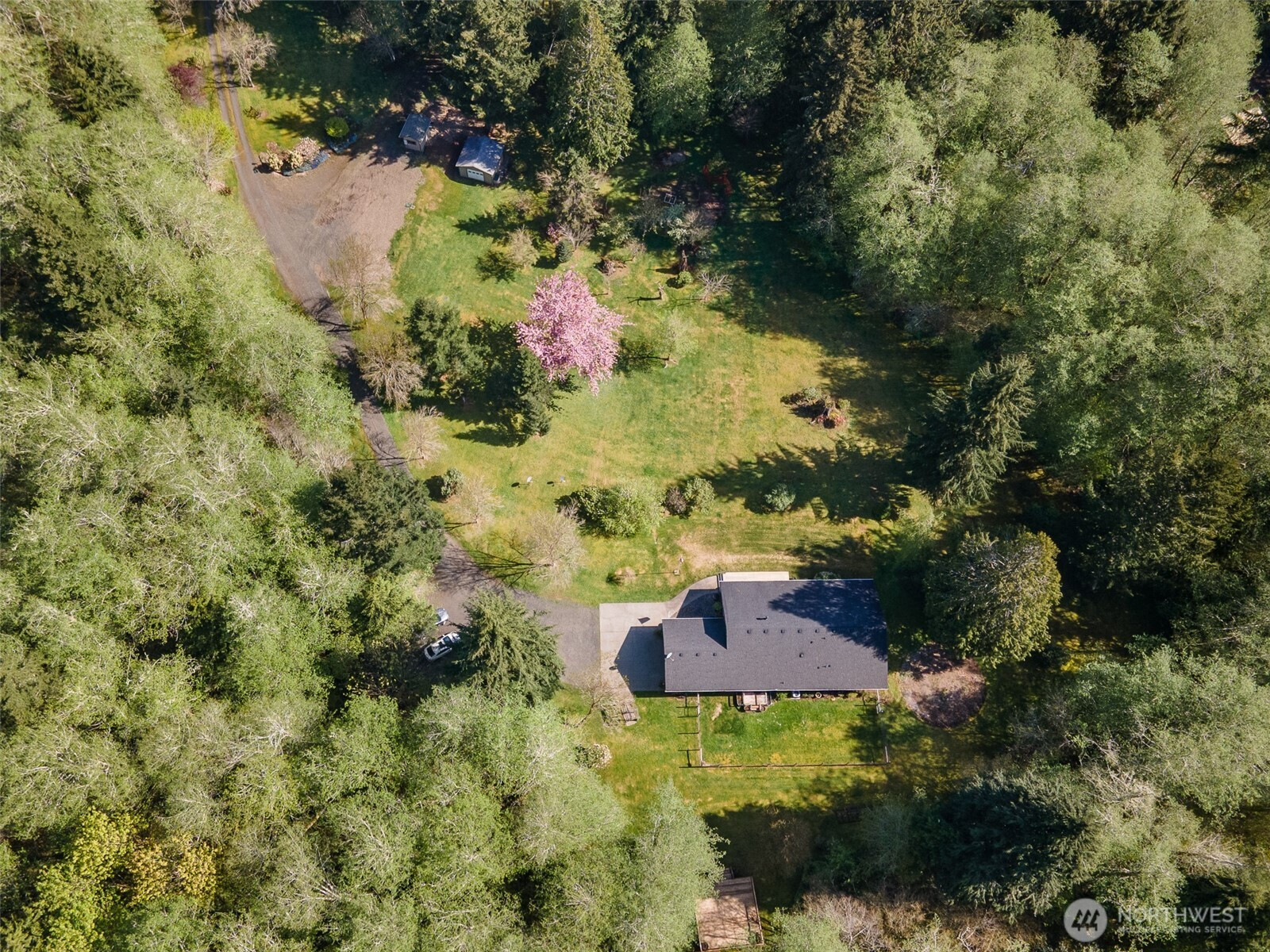 Elevated Northwest Living-Private Retreat with Expansive Outdoor AmenitiesWelcome to 25 Carol Lane-where space, functionality, and modern updates come together on 5 beautiful acres. This well-maintained 3- bedroom, 2-bath rambler offers easy single-level living with thoughtful upgrades throughout. Step inside to discover new LifeProof flooring and fresh interior paint, creating a clean, contemporary feel that's truly move-in ready. The home is equipped with a 2-year old HVAC system for year-round comfort and efficiency, along with EV charging in the garage for added convenience. Outdoors, the property truly shines. A beautiful deck off the back of the home provides the perfect setting for entertaining, enjoying your morning coffee, or simply taking in the fresh Pacific Northwest air. With three versatile outbuildings, there's ample room for storage, hobbies, or workspace. Even more valuable, the property includes water, sewer, and power hookups already in place-ideal for a future shop, ADU, or RV setup. Enjoy the privacy and flexibility of acreage living while still having all the essentials in place for expansion and customization. This is a rare opportunity to own property that combines immediate livability with long-term potential.