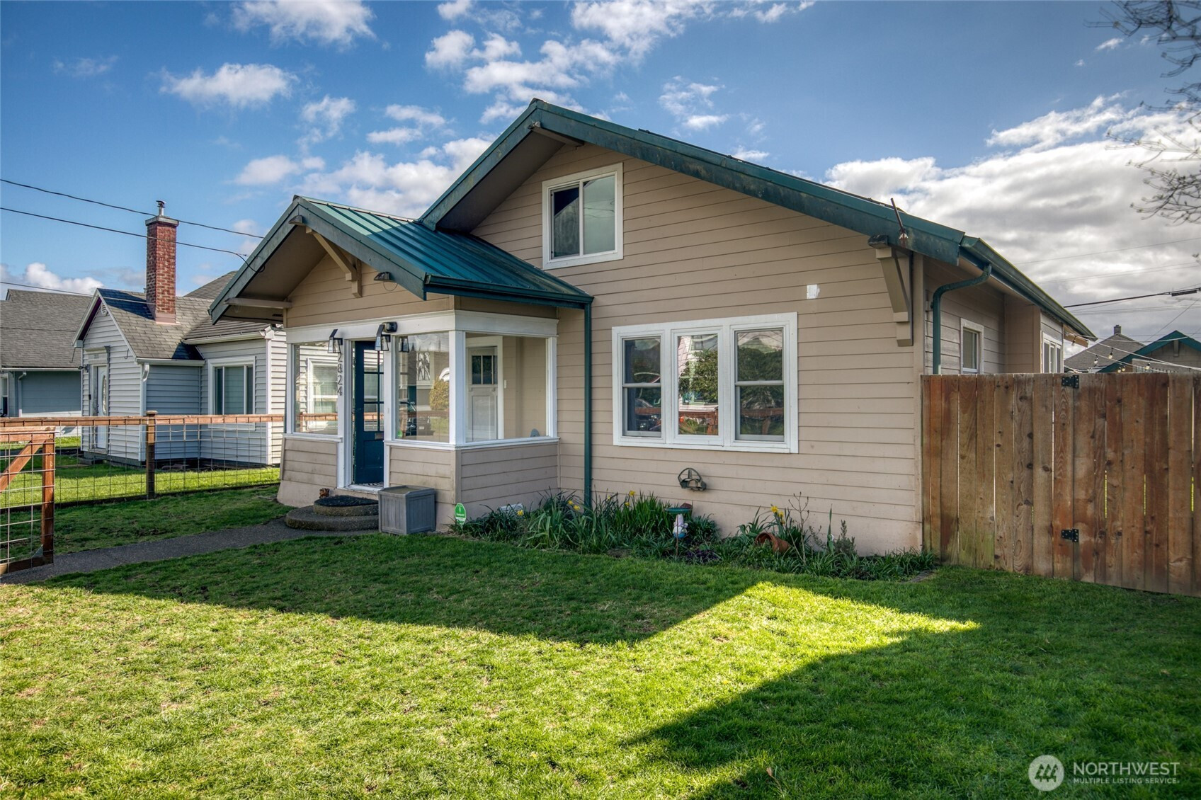 Beautifully updated single-level home in Hoquiam offering over 1,800 sq ft of comfortable living. This 3-bedroom, 2-bath home features a spacious primary suite with en suite bath, hardwood floors, and a thoughtfully updated kitchen perfect for everyday living and entertaining. Enjoy year-round comfort with a forced air furnace and mini split system, plus peace of mind with a durable metal roof and updated windows. Energy efficiency shines with solar panels—keeping electric bills around just $40/month. A charming sun porch entry welcomes you in, while the large, easily accessible attic provides excellent storage options. Outside, the fully fenced yard offers privacy and space to enjoy, complemented by an oversized carport, detached 1-car garage, and convenient alley access. A rare combination of updates, efficiency, and functionality—this home is move-in ready and built for easy living.