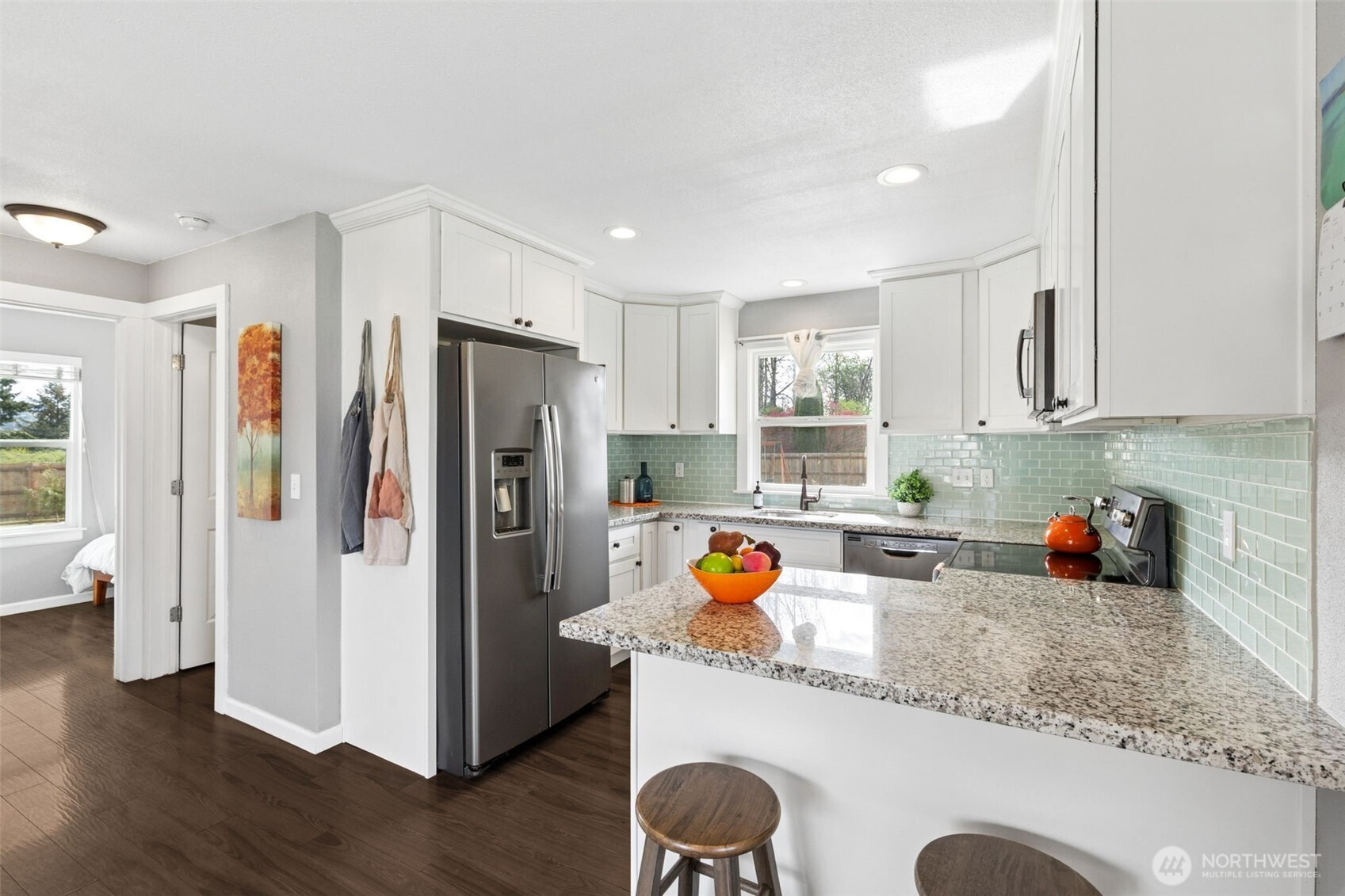 Fabulous combination of delightfully updated bungalow in great condition, large shop and a large lot! This home was *completely* remodeled about 10 years ago--new wiring, plumbing, windows, flooring, fixtures--all of it! Super functional kitchen with granite counters, cute backsplash, stainless appliances and eating bar. Laminate floors--no carpet! Large utility room with appliances included. Shop is 960 SF with a concrete floor. Lot is fully fenced and gated--a little over 1/3 acre. Roof and gutters are brand new and the on demand water heater is just a year old! Home is bright and sunny, property is begging for a garden for all that sunshine!