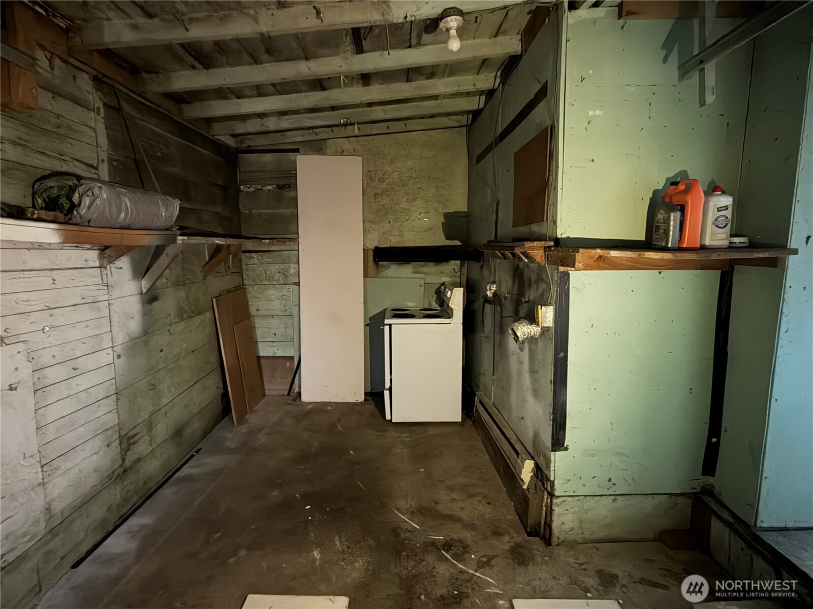 Look at this corner-lot house with a garage and off-street parking! A full bathroom is between two large bedrooms on the main level. The upstairs is a very large bonus room. It has a fully-fenced backyard with an apple tree. The attached garage enters into the laundry/utility room with lots of storage. It has original wood floors that need just a little work to bring back to life. The roof was replaced about 6 years ago.