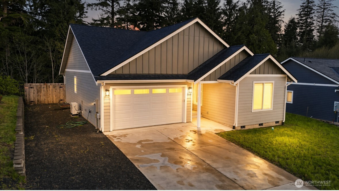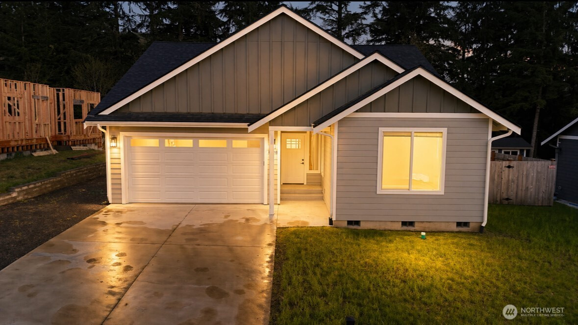 Step into a place where comfort and quality meet at the edge of Hoquiam Estates. This new build isn’t just a house it’s a warm invitation to a life well lived where the craftsmanship really shines. Imagine sipping your coffee on the covered back deck, gazing out at your 6 foot tall, fully fenced backyard retreat. It is thoughtfully designed with a floor plan and feels spacious, open and airy. The easy to care for lot means you can spend more time enjoying life and less time on upkeep. Plus, the high-efficiency heat pump, the roomy two-car garage, and the mudroom from the garage that doubles as the laundry add those practical touches that make daily living easy. Come see how this home can become your next chapter.