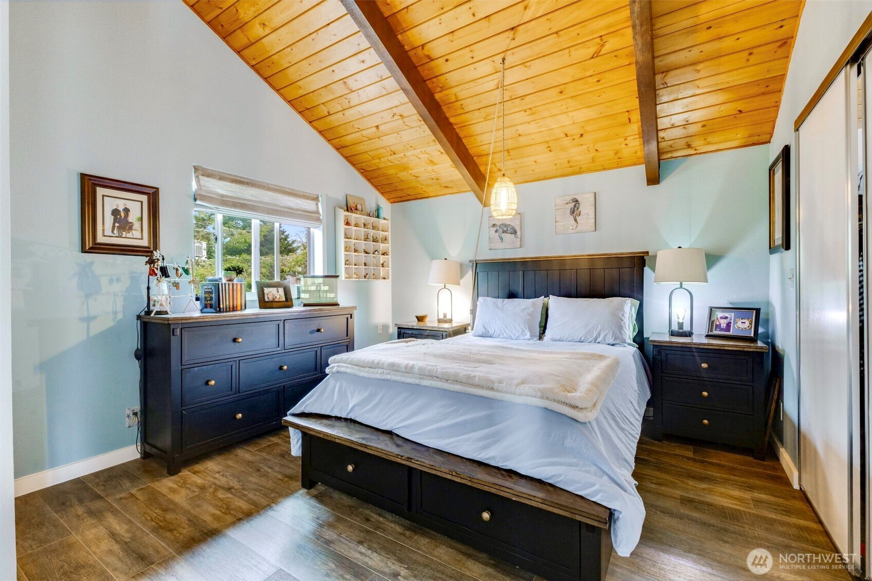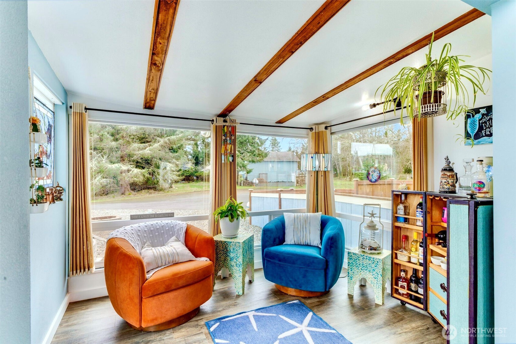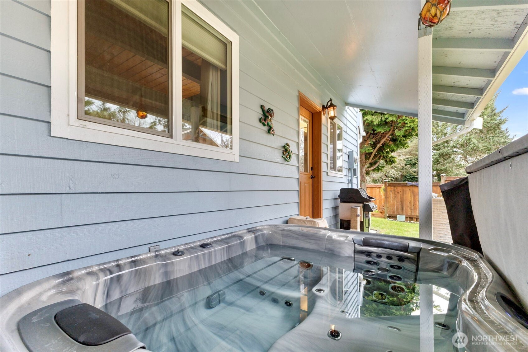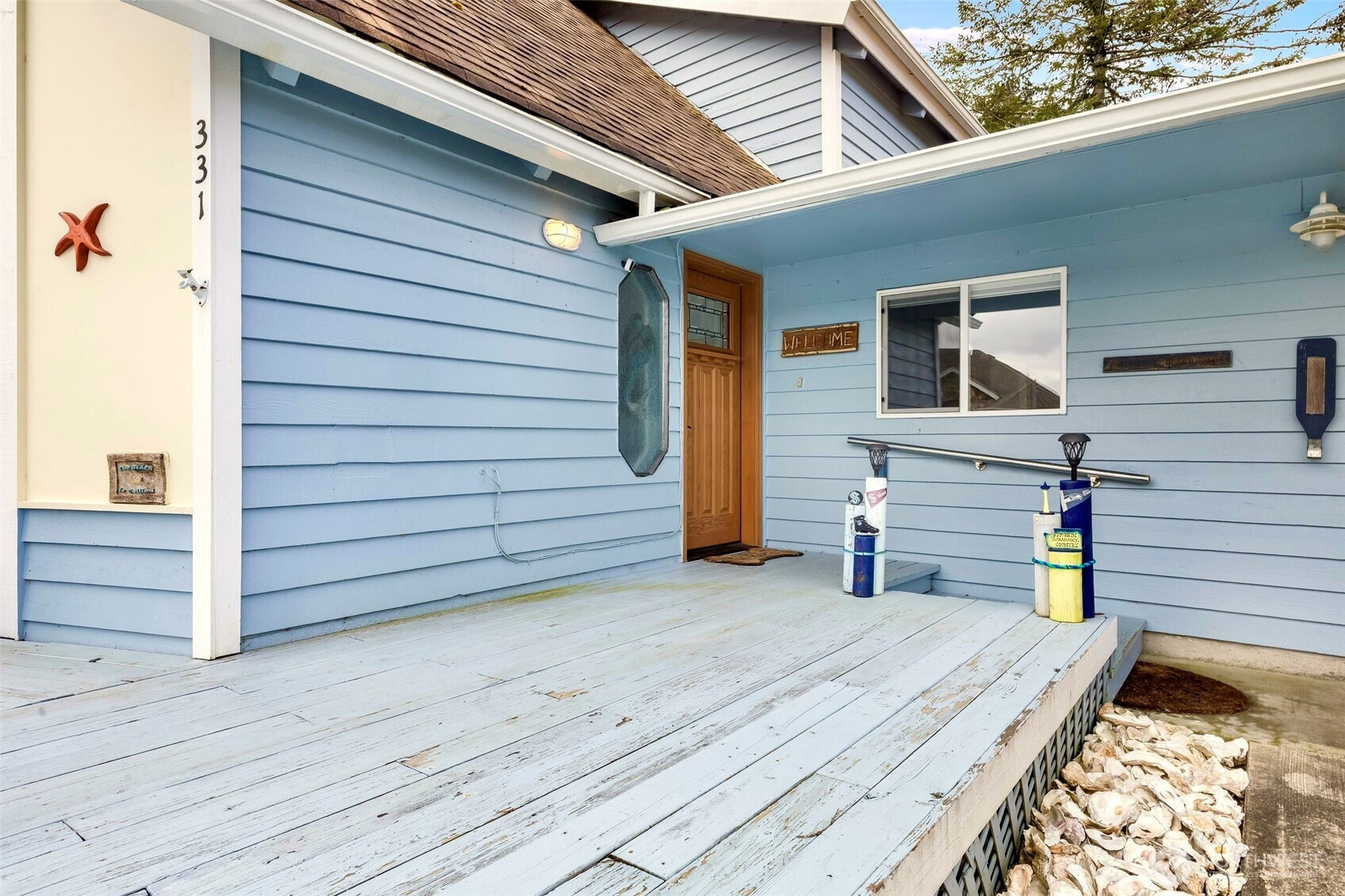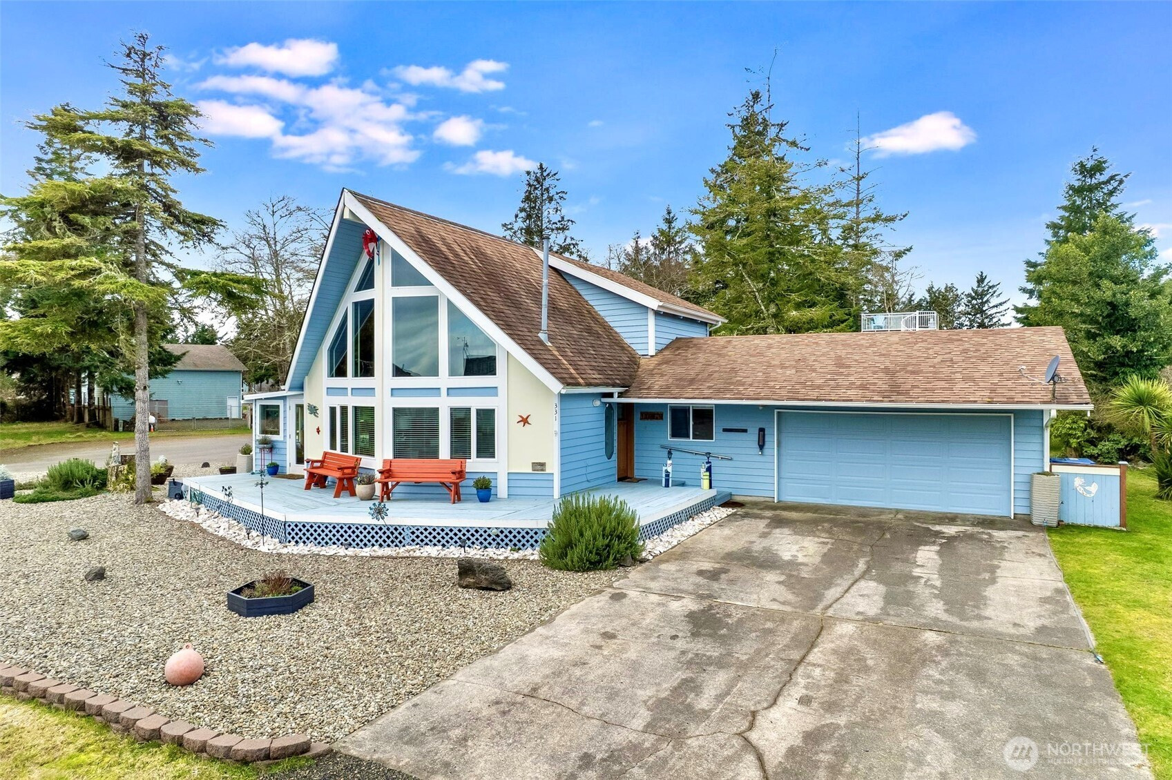 Light-Filled Home with Bay & Mountain Views, Sunroom & Thoughtful, Beautiful Updates! Natural light fills this 3-bedroom, 2.5-bath home featuring an open-concept layout & views of the bay, mountains & vibrant sunrises. The large wall of windows brighten the spacious living, dining & open kitchen area. The newly updated kitchen offers generous storage, a large eat-at island, custom tile backsplash, solid surface counter tops, custom cabinetry & new appliances, with a built-in wall oven—creating a functional space for cooking & gatherings. Just off the dining area is a year-round cozy sunroom with separate entry, a main-level bedroom or office with an attached bath that works well for guests or flexible living, also on the main level, an additional updated bath, good sized bedroom & designated laundry area. Upstairs, the stunning bay, mountain & sunrise views continue with an office nook at the top of the stairs & the primary suite with vaulted wood ceilings, a soaking tub with shower, double vanity & ample closet space. Outside, enjoy a newly fenced yard for pets & privacy, custom landscaped areas on the side yard with built in fire-pit to enjoy the starry nights, RV parking with sewer hookup & a 2-car garage with additional area for storage, convenience & all your beach toys. With character, flexible spaces, beautiful updates & incredible natural light, this home offers a comfortable setting to enjoy coastal living inside & out. Furnishings negotiable, hot tub does not convey