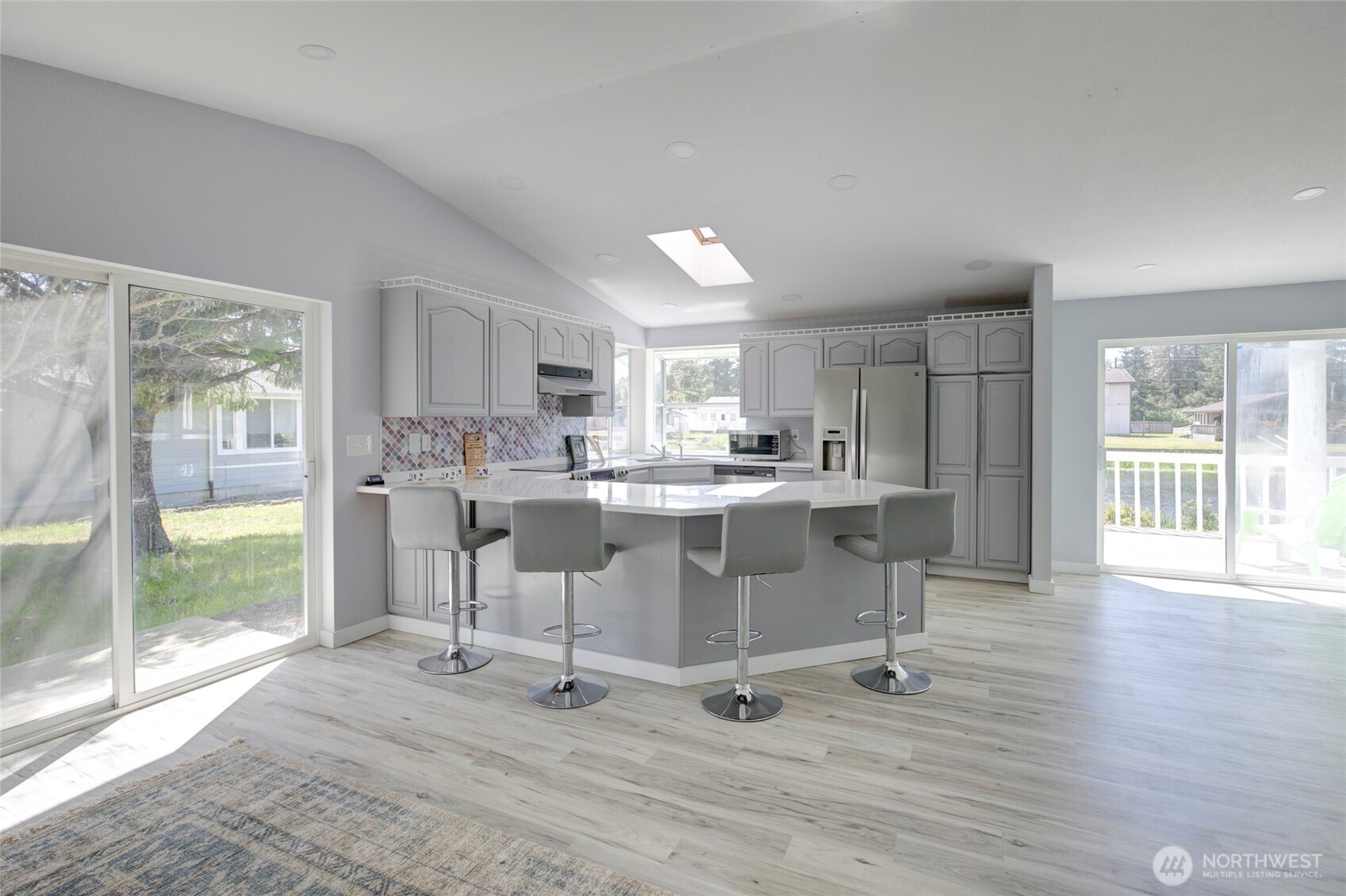 This beautifully updated home sits on a spacious double lot, offering 120 feet of private water frontage complete with a dock and boat launch—perfect for fishing or boating right from your own backyard. With 2,058 square feet of living space, the home features a bright open-concept layout, newer interior and exterior paint, and newer flooring throughout. Enjoy the convenience of a 2-car attached garage and a circular driveway providing ample parking for guests.