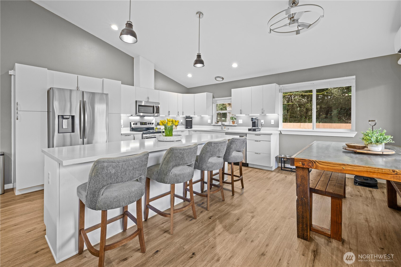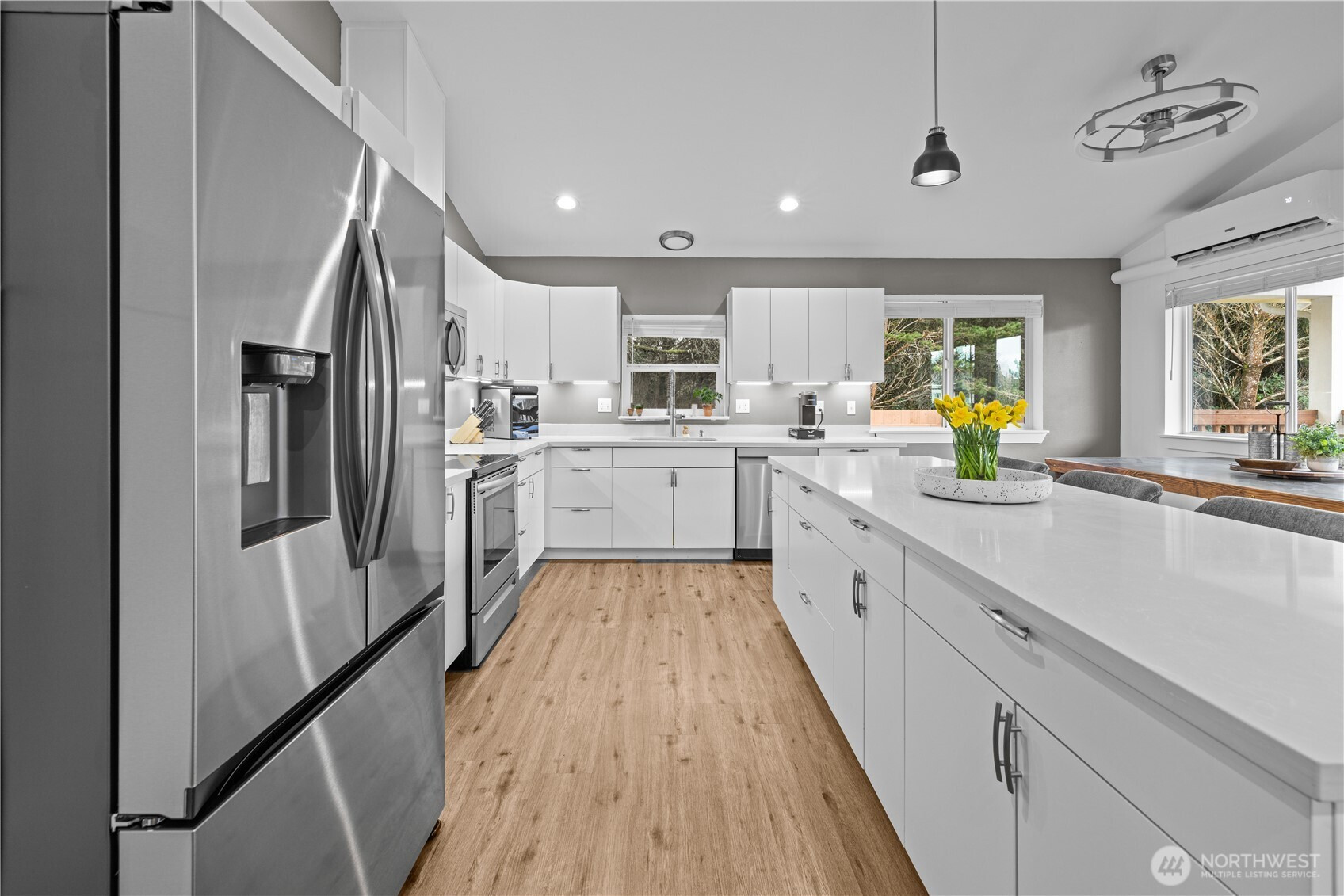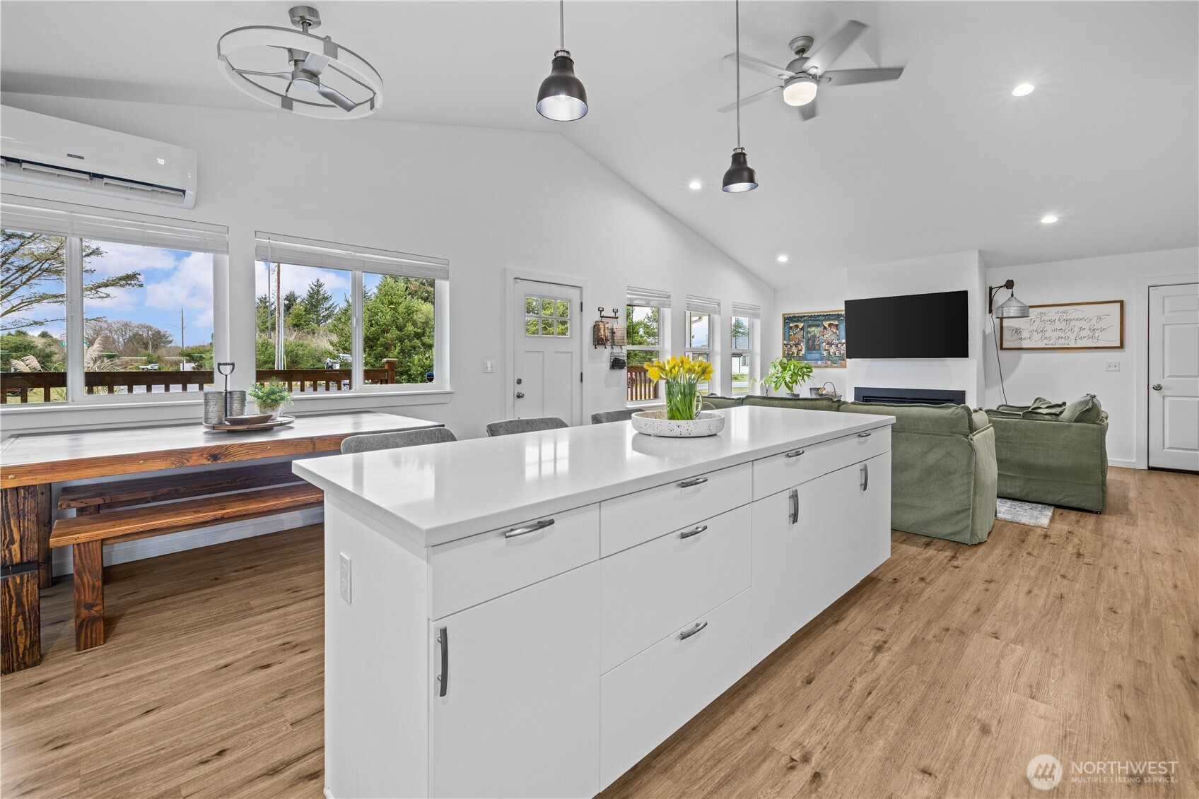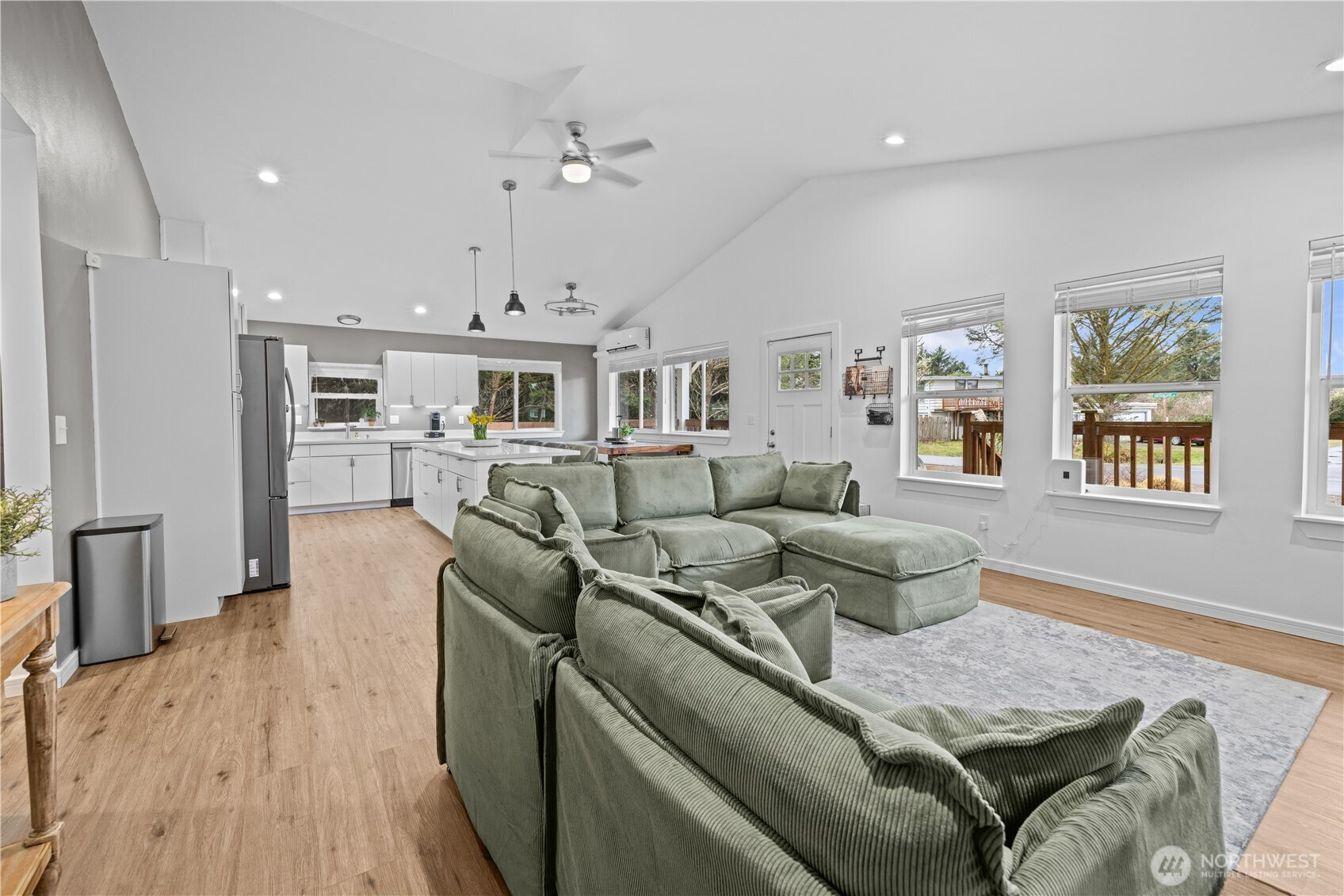 Dreaming of coastal living? This welcoming 1,496 sq ft beach home offers 2 bedrooms and 1.75 baths with a bright, airy layout and vaulted ceilings. The open living space features vinyl plank flooring, stainless steel appliances, and quartz countertops—perfect for everyday comfort or hosting friends. The oversized 20x13 primary bedroom creates a relaxing retreat, while the covered front porch is ideal for soaking in ocean breezes. Out back, enjoy a fully fenced yard with concrete patio, gazebo, and easy-care landscaping. Extras include a propane fireplace, attached one-car garage, RV parking, and a powered shed ready for guests or a creative studio. Just minutes from ocean beaches and downtown Ocean Shores amenities—your perfect beach escape awaits!