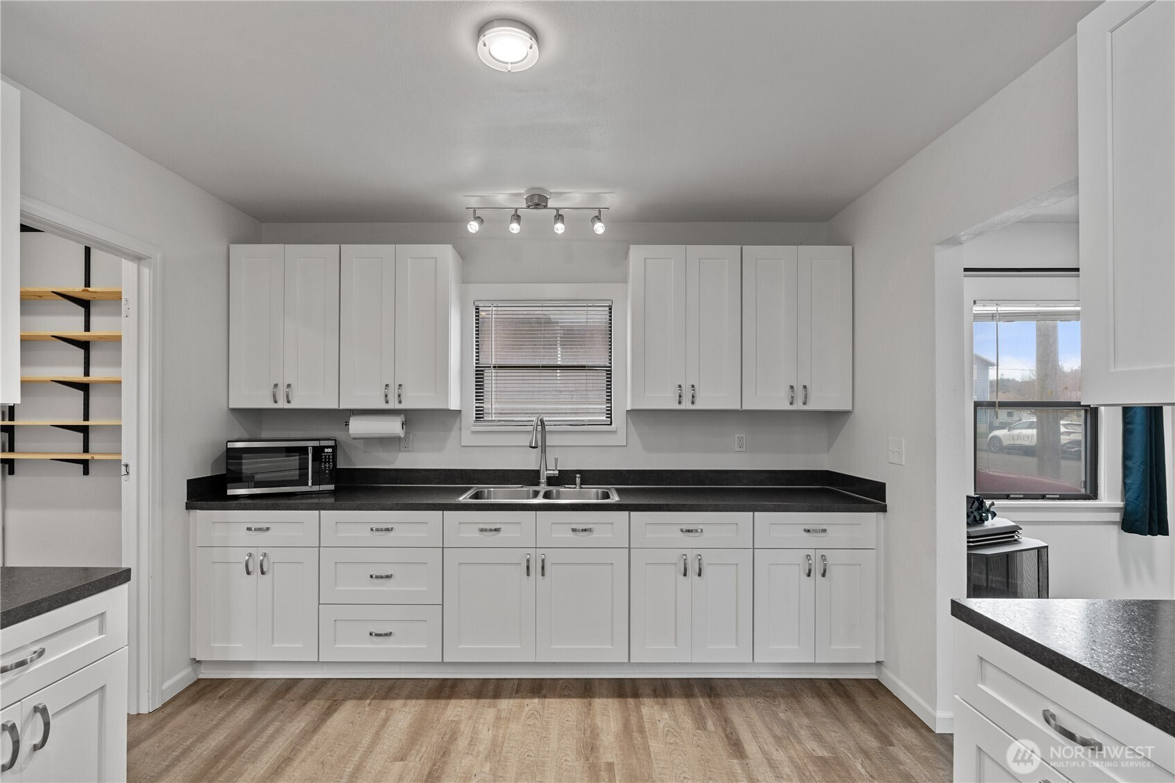 Nicely renovated 4 bedroom home that will check all of the boxes! This home is full of charm, from the bright red exterior to the inviting front entry with built-in storage to the gorgeous remodeled kitchen with tons of counterspace & cupboards. Inside you will find new flooring & fresh paint, remodeled throughout. The home is warm and cozy, heated by both a free-standing propane fireplace & wall heaters in each room. On the main floor is the primary room, full bathroom, kitchen, and spacious laundry room that leads to the attached garage. Never run out of hot water with the on-demand propane hot water heater. The garage can double as a bonus space and has a custom gas fireplace built-in for heat, it also has an automatic doggy door that leads out to the fully fenced-in back yard and freshly poured concrete patio. Ideally located close to town conveniences & also 30 minutes from the beaches. This 1929 gem is turn-key and ready for its next owners!