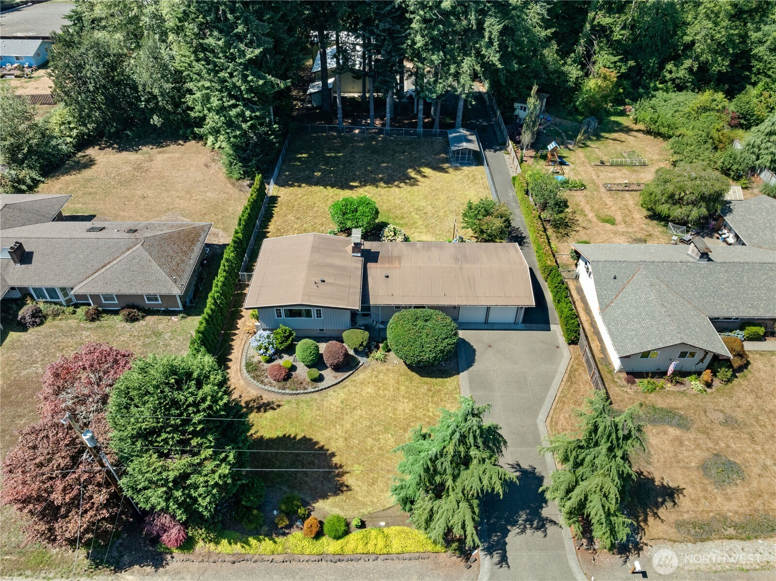 The first impression is the beautiful landscaping, which offers a park- like setting, with a fully fenced backyard that extends the usable outdoor space and creates privacy behind the home. Positioned on a quiet street among similar homes, the environment supports a steady, neighborhood feel without through traffic. Inside, the formal living room fireplace anchors the main level and sets the tone for how the space functions. Vaulted ceilings add dimension, while the layout moves naturally from the formal living room to the dining room, kitchen, and laundry area. An updated kitchen supports daily use without overwhelming the character of the home. Upstairs, three bedrooms are paired with a full guest bath and a 3/4 primary bath, creating separation between shared and private areas. The fully finished basement adds meaningful flexibility with a rec room featuring a wood stove, a 3/4 bath, and an office or fourth bedroom. Two distinct living spaces across levels allow for both gathering and retreat. A major highlight is the oversized three-bay shop, complete with an office, bathroom, and additional storage loft. For buyers needing workspace, storage, or room for equipment, this structure changes how the property can be used. With its landscaped setting, functional multi-level layout, and substantial shop space, this home fits buyers who value room to work, gather, and settle in without sacrificing neighborhood appeal.