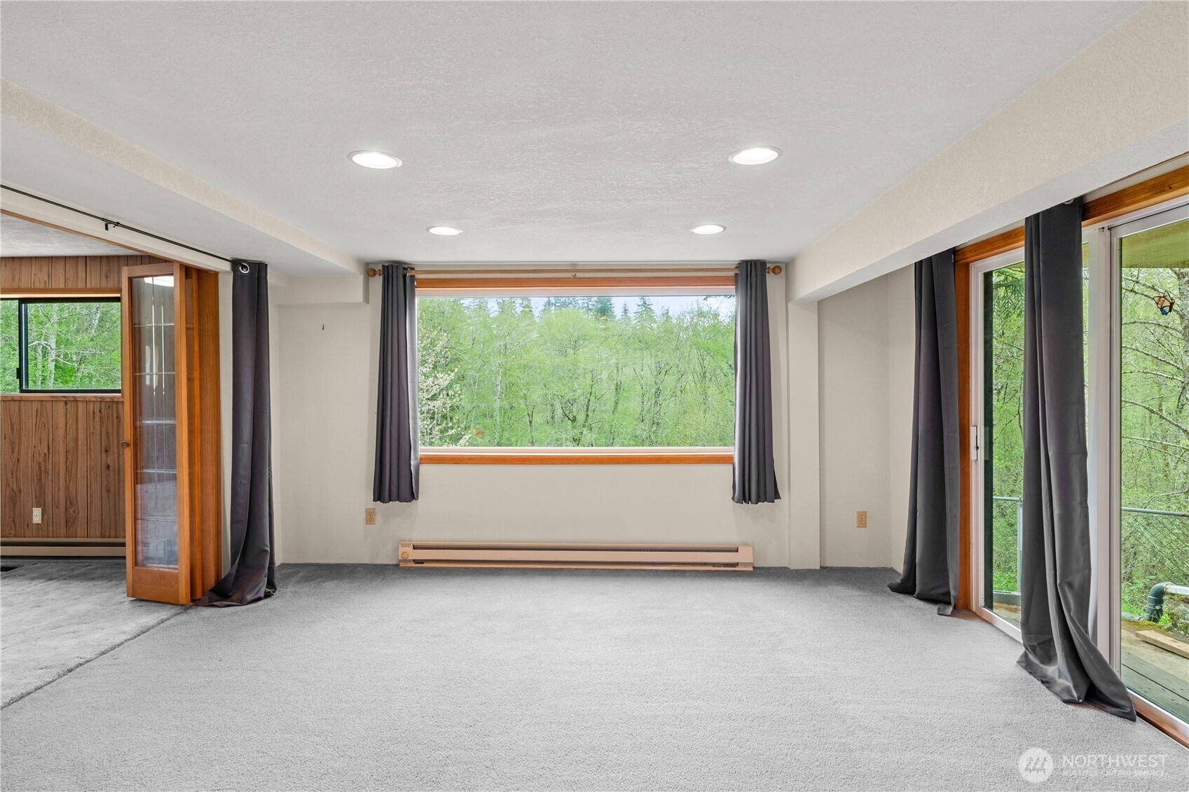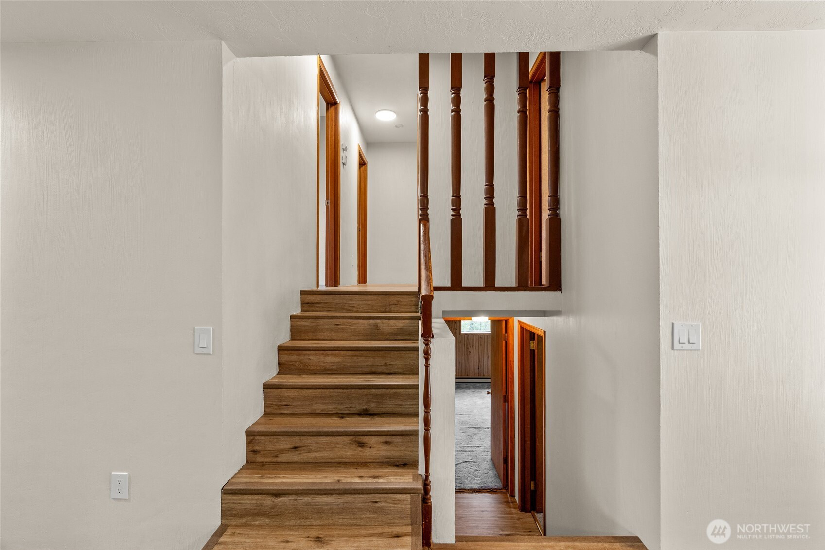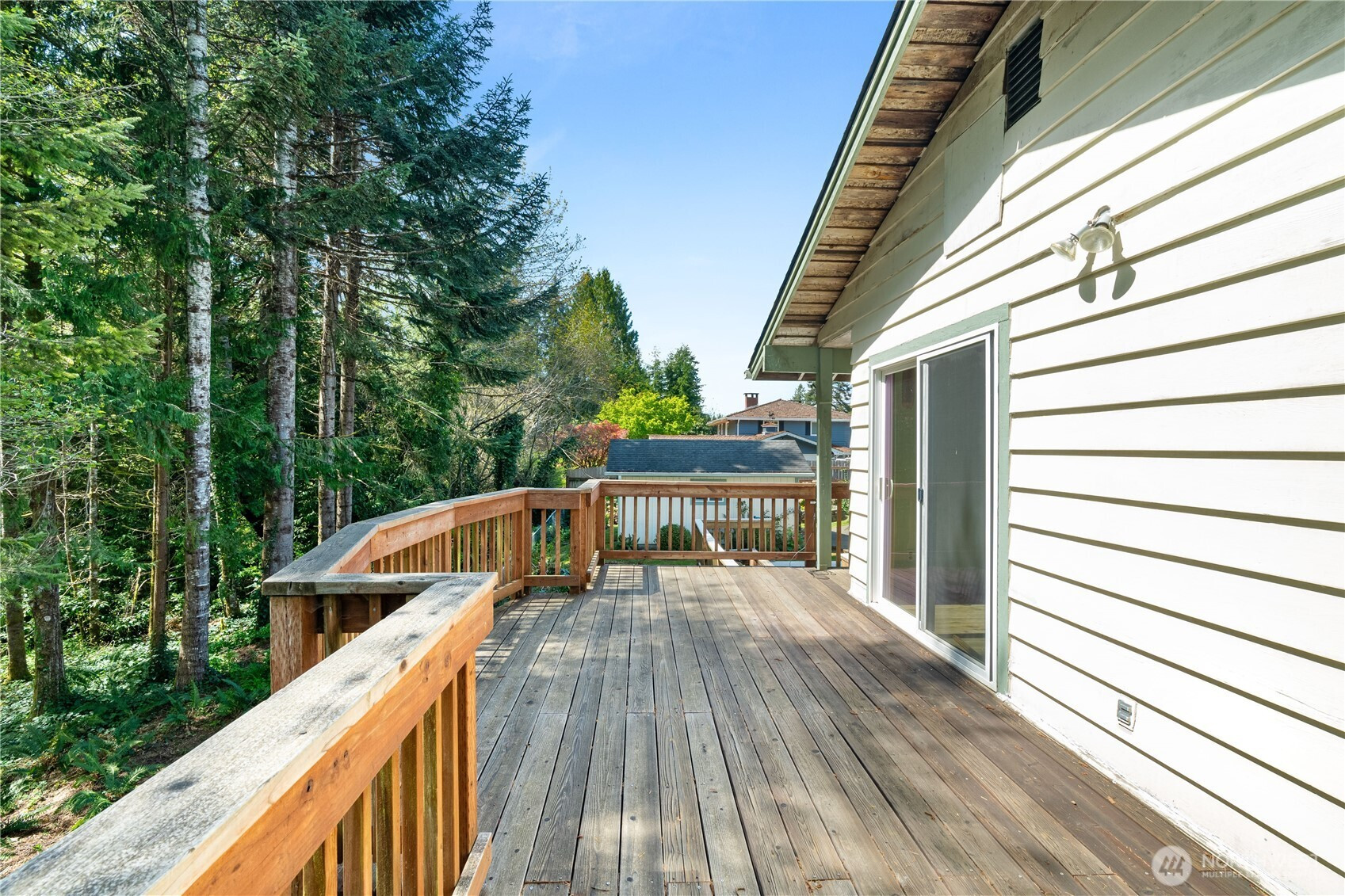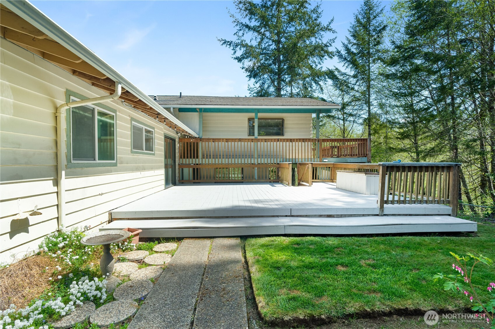 Secluded 3.4+ acres on dead-end, quiet road. 3+ bedroom, 2.25 bath, large family room on lower level. Oversized primary with additional room for office/closet/sitting area, private deck with relaxing views perfect for morning coffee. Spacious kitchen with eat in space. Outside is a large side yard, fenced back yard with large deck, shed and garden space. The back portion of property provides a nice green belt with creek. Lots of parking provided by attached 2 car garage and additional driveway parking.