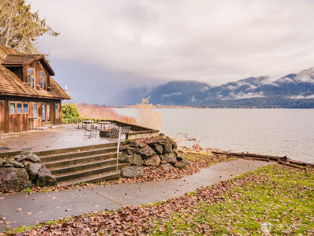 Discover a rare year-round lakefront estate at 52 Lakeview Dr in Lake Quinault. Set on an acre with 144 ft of shoreline, this property includes TWO homes, a third residential space, and a detached garage. Together, the homes offer 5 beds and 3.25 baths, featuring an impressive 1,834 SQFT A-frame with soaring ceilings and warm wood accents, plus a 1,512 SQFT second home built in 1993, ideal for guests or extended living. The detached garage provides great storage, and the third residential space offers endless use options—studio, office, or guest quarters. A standout opportunity on the coveted north shore of Lake Quinault.