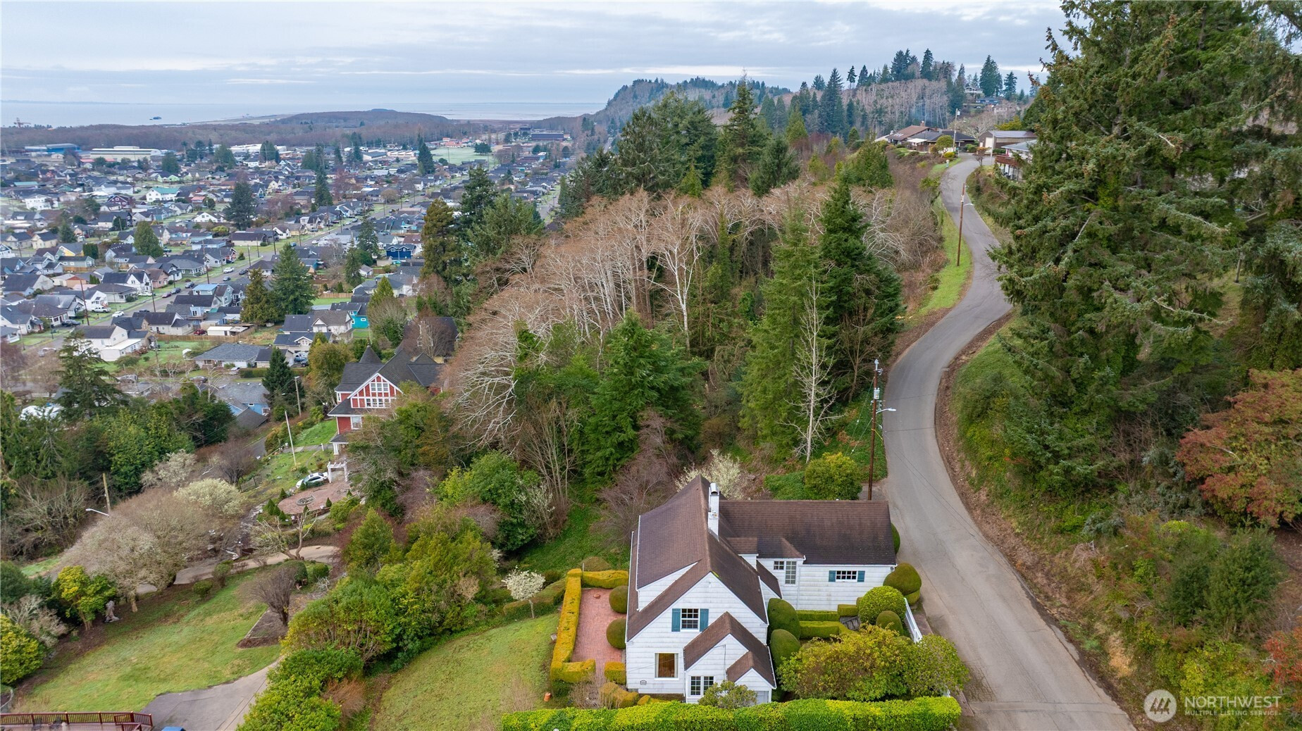 Historic Hoquiam home with a truly special view, lovingly cared for over many years and ready for its next chapter. Warmth and character are felt immediately, from the beautiful hardwood floors to the thoughtful craftsmanship found throughout. All tile work and select stained glass details, including two pieces and a custom chandelier-style stained glass light fixture — were handcrafted by the homeowner, adding a meaningful personal layer to the home’s story.Natural light fills the home, with lovely views of the Chehalis River, Hoquiam River and Bay from nearly every room. In the kitchen, a charming nook offers the perfect place to sit and take in the morning view, an ideal spot to enjoy coffee as the day begins.The home offers four bedrooms (one on the main level and three upstairs), along with several bonus rooms providing flexible space for guests, hobbies, or work-from-home needs. A full bath is located upstairs, a half bath on the main level, and the basement includes a shower and sauna. Cedar-lined closet, built-ins, and original details reflect the care and craftsmanship of the era. Gas furnace.A brick patio sits on the view side of the home, accessible from both the main level and basement — a relaxing place to take in the rivers and bay below. The property includes two parcels (0538005011000 & 053800500900), off-street parking, and a two-car garage.A home that has been well cared for and thoughtfully lived in, now ready for someone new to continue its story.