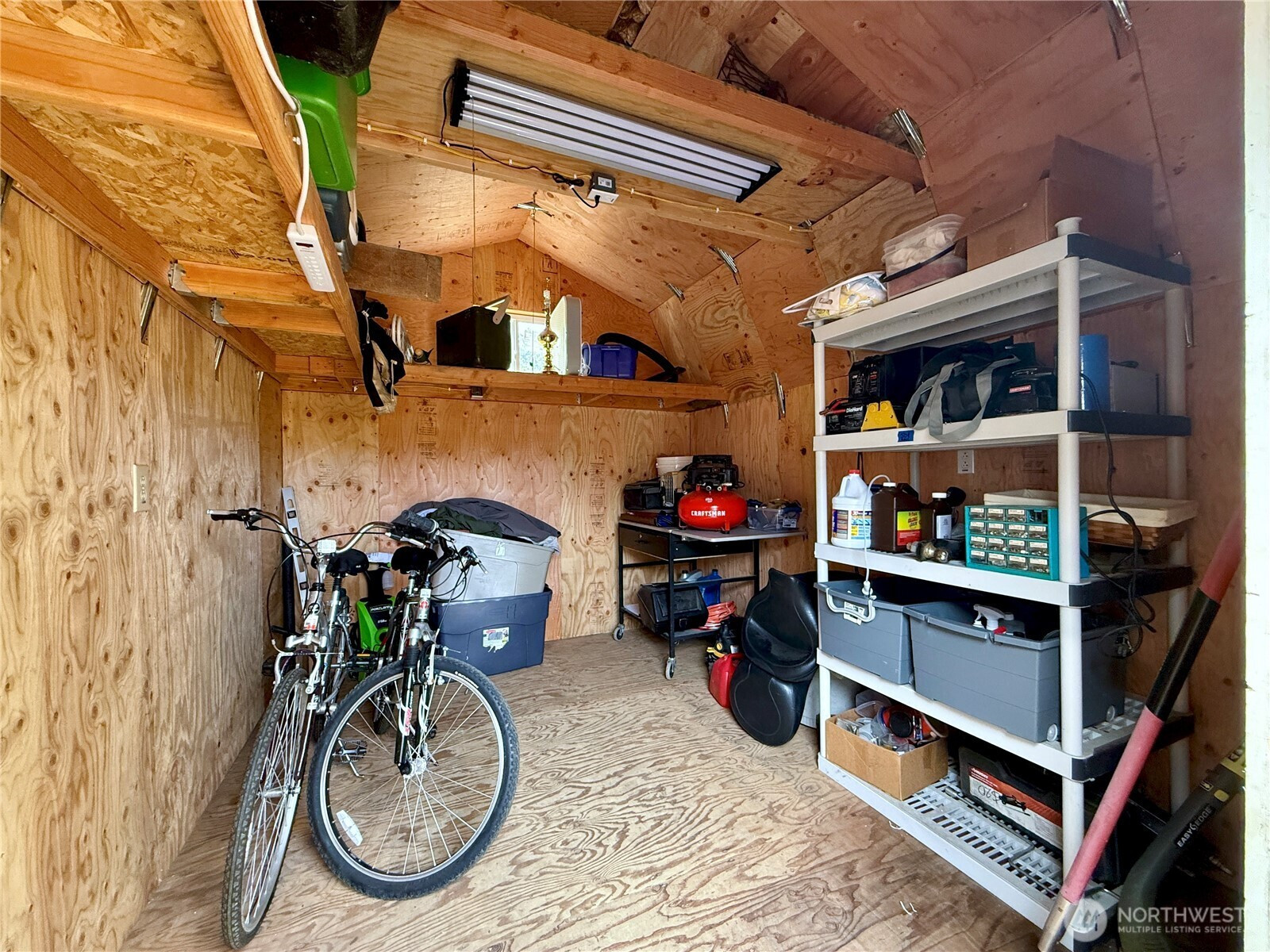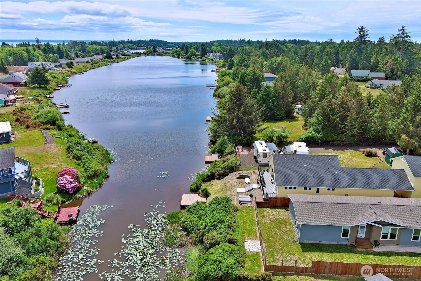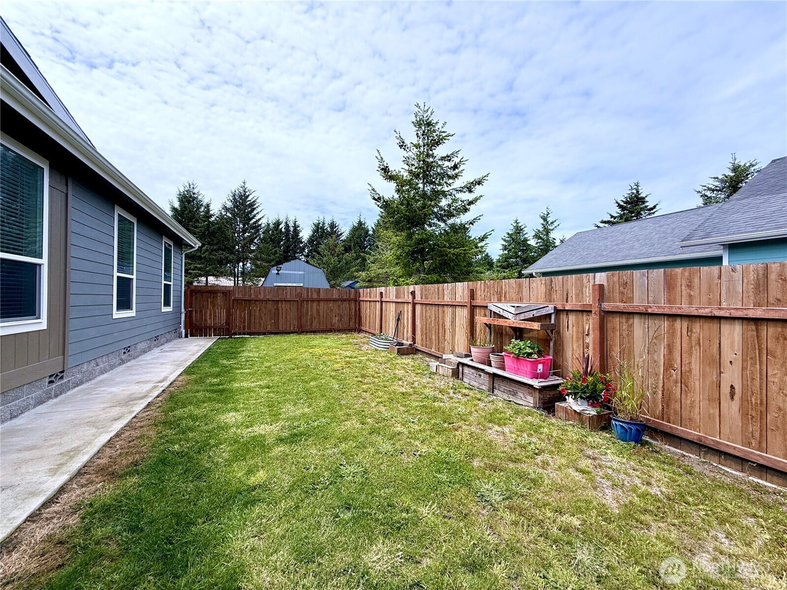 Experience lakefront living in this nearly new, thoughtfully designed 3-bedroom + office home offering just under 1,800 sq ft of comfortable living space. Perfectly sited to capture lake views, the open-concept floor plan features 9’ ceilings and expansive windows that fill the home with natural light. The spacious primary suite is a true retreat with a generous walk-in closet and a beautifully appointed ensuite featuring a walk-in shower and soaking tub looking towards the lake. Two additional bedrooms are positioned on the opposite side of the home for privacy and share a full bath with convenient linen storage. A French-door office provides flexible space for remote work or hobbies, while the large walk-in pantry and mudroom with washer and dryer add everyday functionality. Outdoor amenities include an oversized 20x30 garage/shop with powered loft lift, a finished outbuilding with electricity, RV hookups, and a fully fenced yard. Transferable, seller-paid dock permits are included—offering a rare and valuable opportunity to create your own private waterfront access and fully embrace the lake lifestyle.
