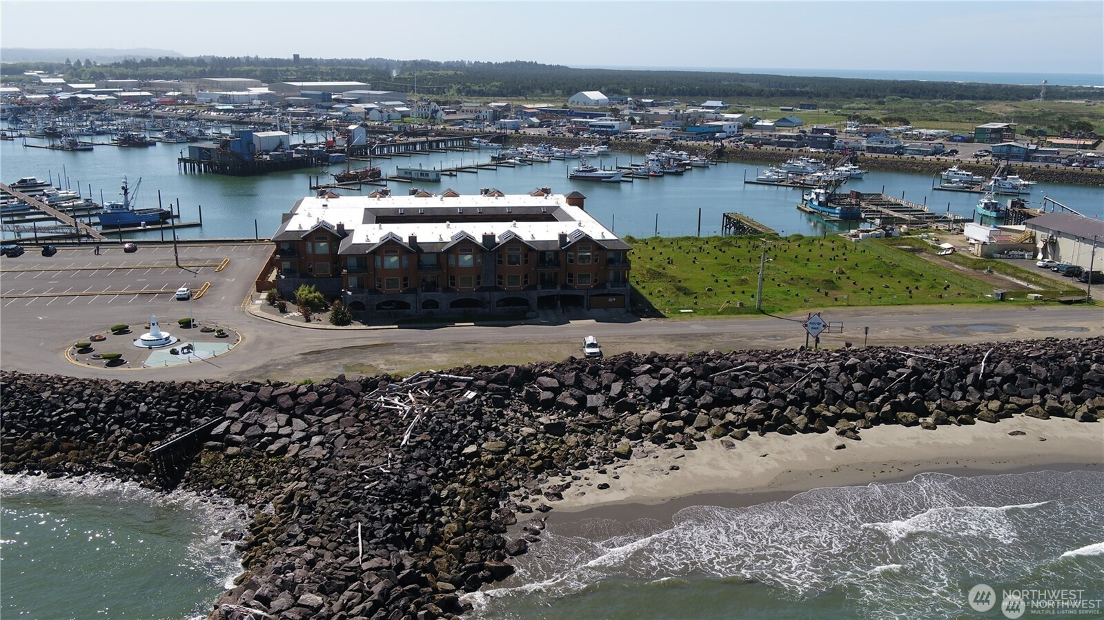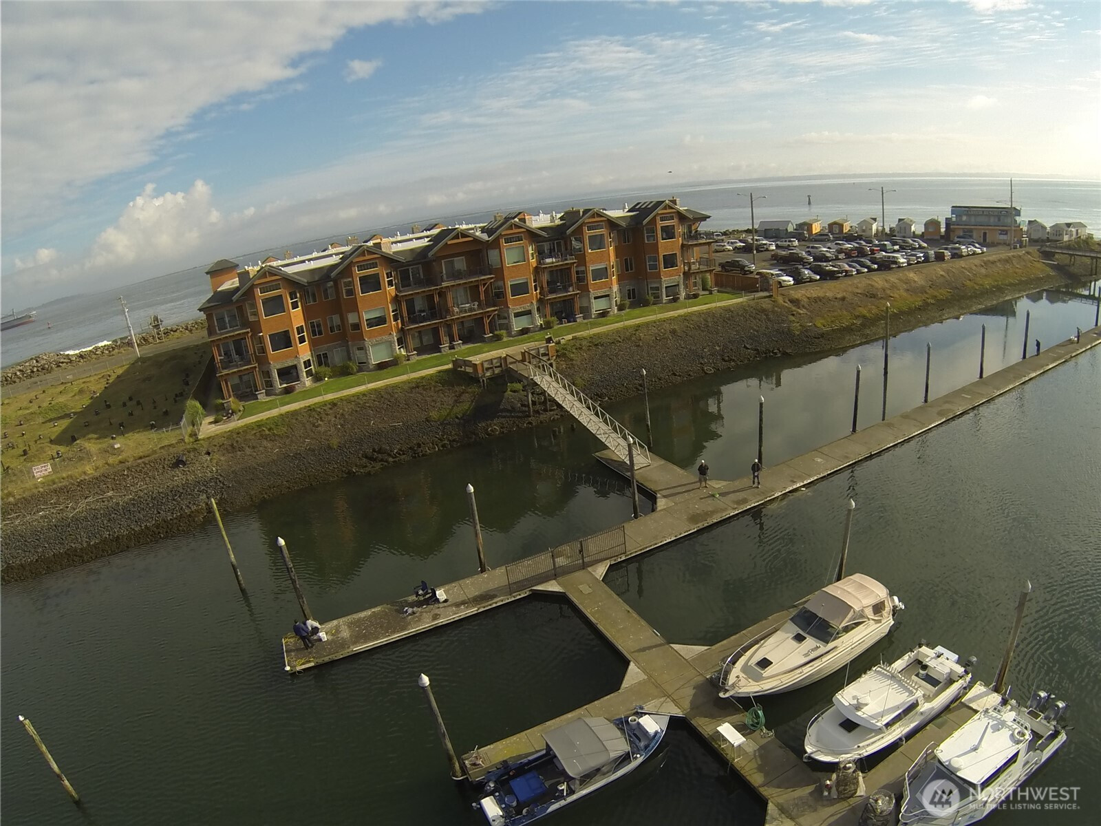 Top floor unit with expansive views of Grays Harbor and the Olympic Mountains. Listen to the calming waves and watch all of the ships going by. This unit faces north. Private moorage is available on the south side of the building which in on the Westport Marina. Well maintained unit with vaulted ceilings, skylights, propane fireplace. Kitchen with slab granite counters, eating bar, under-counter lights. Primary suite with sliding door to deck, great views, walkin closet, soaking tub plus a shower, 2 sinks, heated tile floors and granite counters. 2 additional bedrooms, with one also having a view. In unit washer/dryer. Gated community with covered parking, exercise room, clubhouse with pool table & shuffle board. Hard to find quality construction. Westport offers lots of activities: fishing, clamming, surfing, ocean beaches. Possible Scottish Links Golf Course coming to Westport Light State Park.