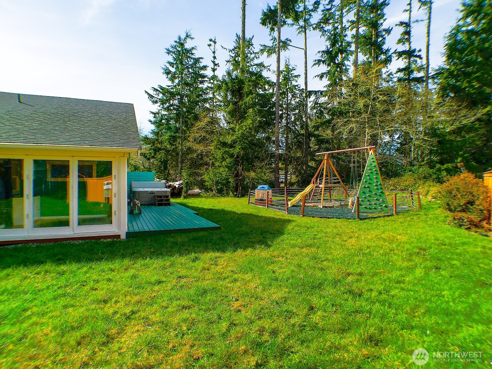 Welcome to this beautifully upgraded 3BD/2BA single-story home in Ocean Shores — thoughtfully designed for easy maintenance and remote management, making it an exceptional primary residence or turnkey vacation home. Step inside to an airy, colorful light-filled living room enhanced with oversized windows and skylights that flood the space with natural light. Both bathrooms feature luxurious heated flooring — a welcome touch on cool Pacific mornings. The kitchen shines with a brand-new oven and whole-house water filtration, and the laundry area comes complete with a new washer and dryer.Stay comfortable year-round with a fully insulated ceiling for superior heat retention, a low-maintenance tankless water heater, a private hot tub with smart scheduling, and an outdoor firepit — perfect for unwinding under the stars.The home is thoughtfully equipped with WiFi-controlled thermostats, smart switches, an optional EV charger, and Starlink backup internet for uninterrupted connectivity — manage everything remotely withease. The detached studio — wired with power and internet — is an ideal retreat for remote work, creative projects, or a quiet craft space. Outside, a custom-built playground with swing set, climbing wall, and sand pit makes this home a dream. Additional highlights: humidity-controlled encapsulated crawlspace, 2-car attached garage, granite counters, vaulted ceilings, and access to Ocean Shores community and amenities.