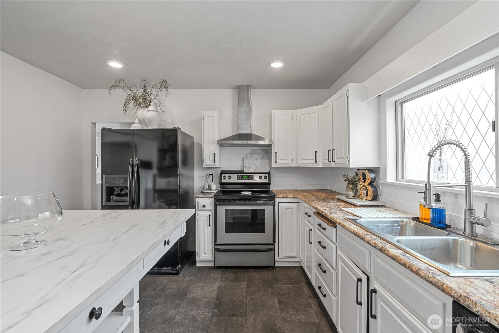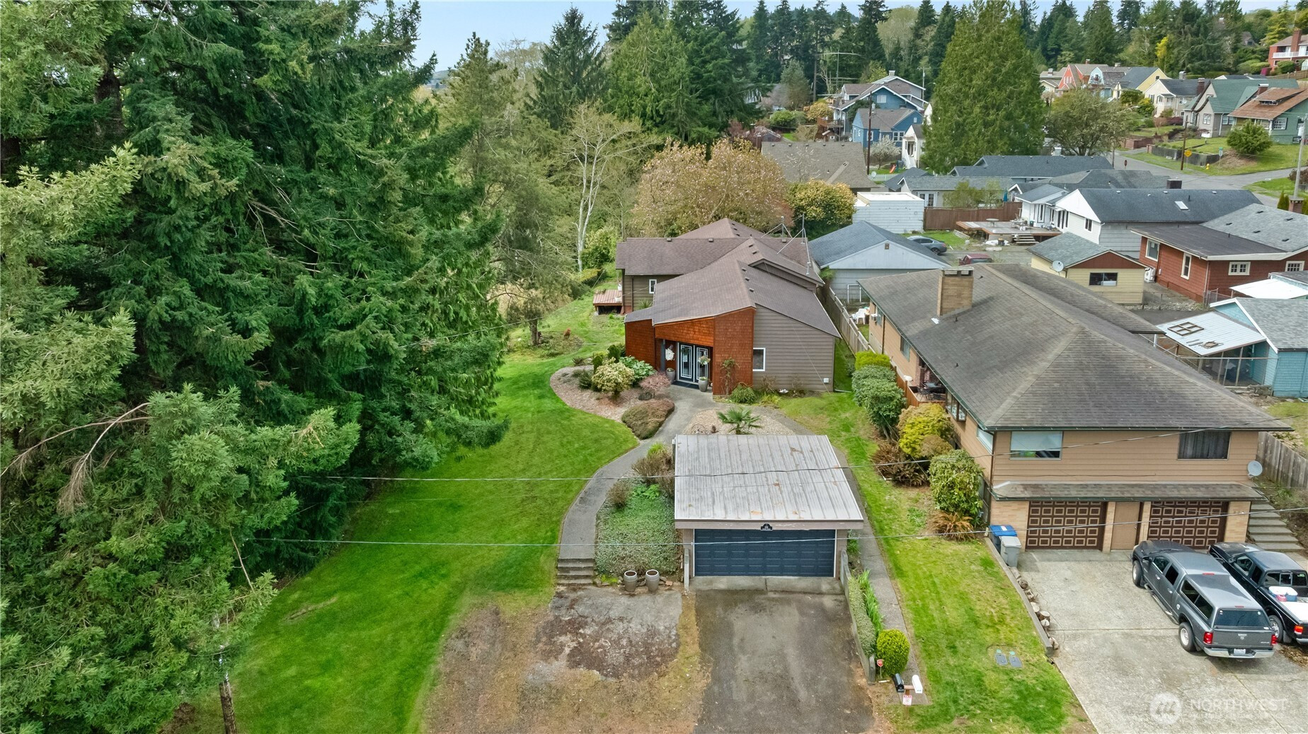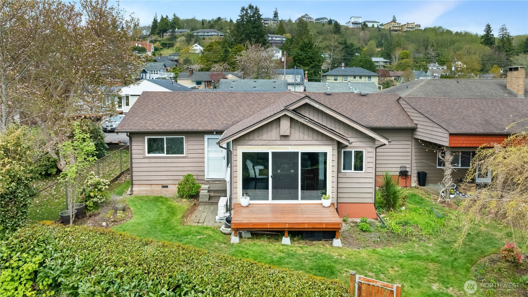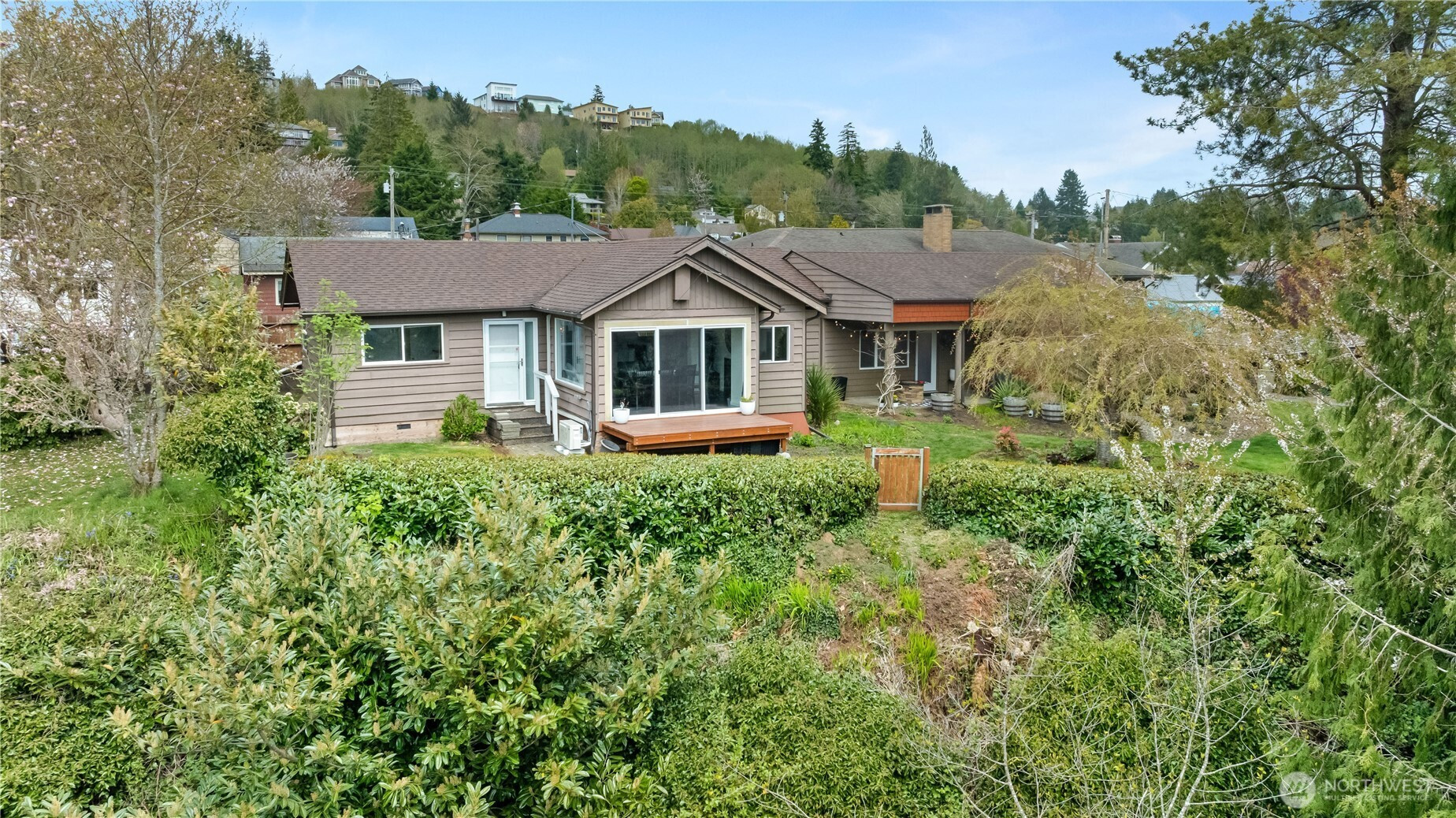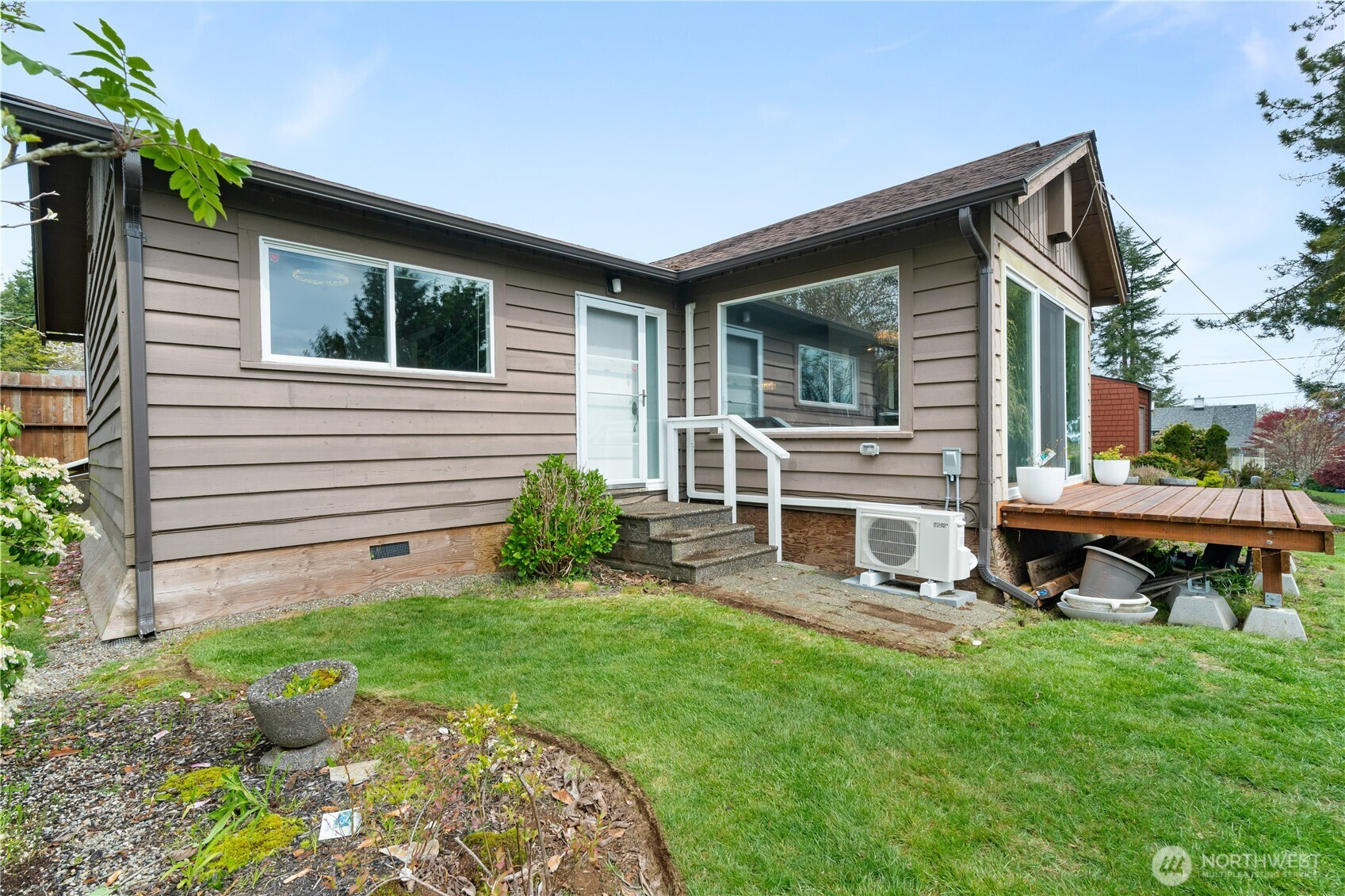819 Conger St in Aberdeen stands out for its city views and a distinct design. The entryway sets the tone right away with a custom-made door leading into the current office, complete with a concrete floor and modern lighting that gives the space a strong first impression. From there, those details carry throughout the home, paired with views from the main living area that extend out to the covered patio and back deck, creating space to spend time outside year-round. Inside, modern wall finishes and thoughtful storage solutions are integrated throughout. A seating area between the kitchen and living room adds flexibility, working just as well as a lounge as it does a workspace depending on how you use it. The home offers four bedrooms and 1.75 bathrooms, allowing for a range of setups. The primary bedroom is set apart for added privacy, creating a quieter space within the overall layout. Set on Aberdeen Hill and out of the flood zone, the location offers both elevation and convenience to town. For buyers looking for space with a different perspective, this home brings together function and design in a way that doesn’t blend in.