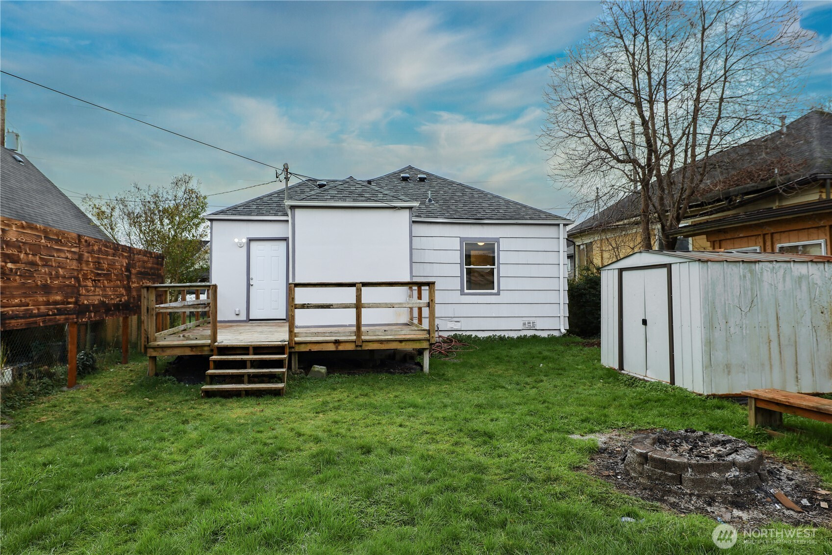 Tucked in a convenient Hoquiam location, this fully remodeled 1 bedroom, 1.5 bath home blends modern updates with timeless character. Fresh flooring and paint set the stage for a beautifully updated kitchen featuring poured concrete countertops, a specialty burnt-wood breakfast counter, and thoughtful design details throughout. Original built-ins add charm while providing generous storage. The living space opens seamlessly to a spacious deck with a privacy fence—ideal for entertaining or relaxing outdoors. Alley access adds convenience, and two versatile outbuildings offer exciting potential for crafting, woodworking, studio space, or additional storage. A unique, move-in-ready home close to local amenities.