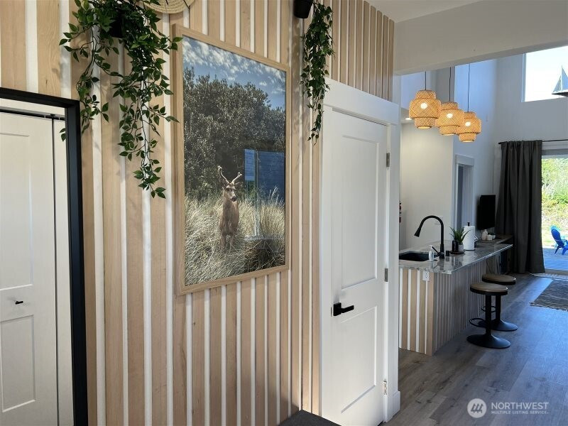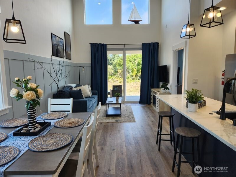 Gorgeous 60' Canal Waterfront Duplex w/special zoning that allows for Nightly Rentals - Located close to beaches, recreation center, trails & boat launch OR bring your paddle boat or kayak & enjoy the 23 miles of Canal & Lakes from your own backyard! Home features fire sprinklers, concrete driveway & backyard patios with fire pit and 2 hot tubs. Partially fenced yard lends to privacy, as well. Home not only comes fully furnished but all decor stays & personal property - 6 TV's, linens, blankets, towels, dishes, wall hangings - everything stays! Totally turnkey-move in ready. All appliances stay - one washer/dryer exists in Unit A only. There are 2 cozy electric fireplaces & heat/air mini split in each room. Units are classy & you'll love the high vaulted ceilings that permit lofts to be built. Beautiful granite countertops & tasteful cabinetry. Ocean Shores features a fun & peaceful escape from the city - check it out & you'll agree - The Ocean is Calling You! Ask about the low and zero down program available for this Duplex~! Can go VA, too~!