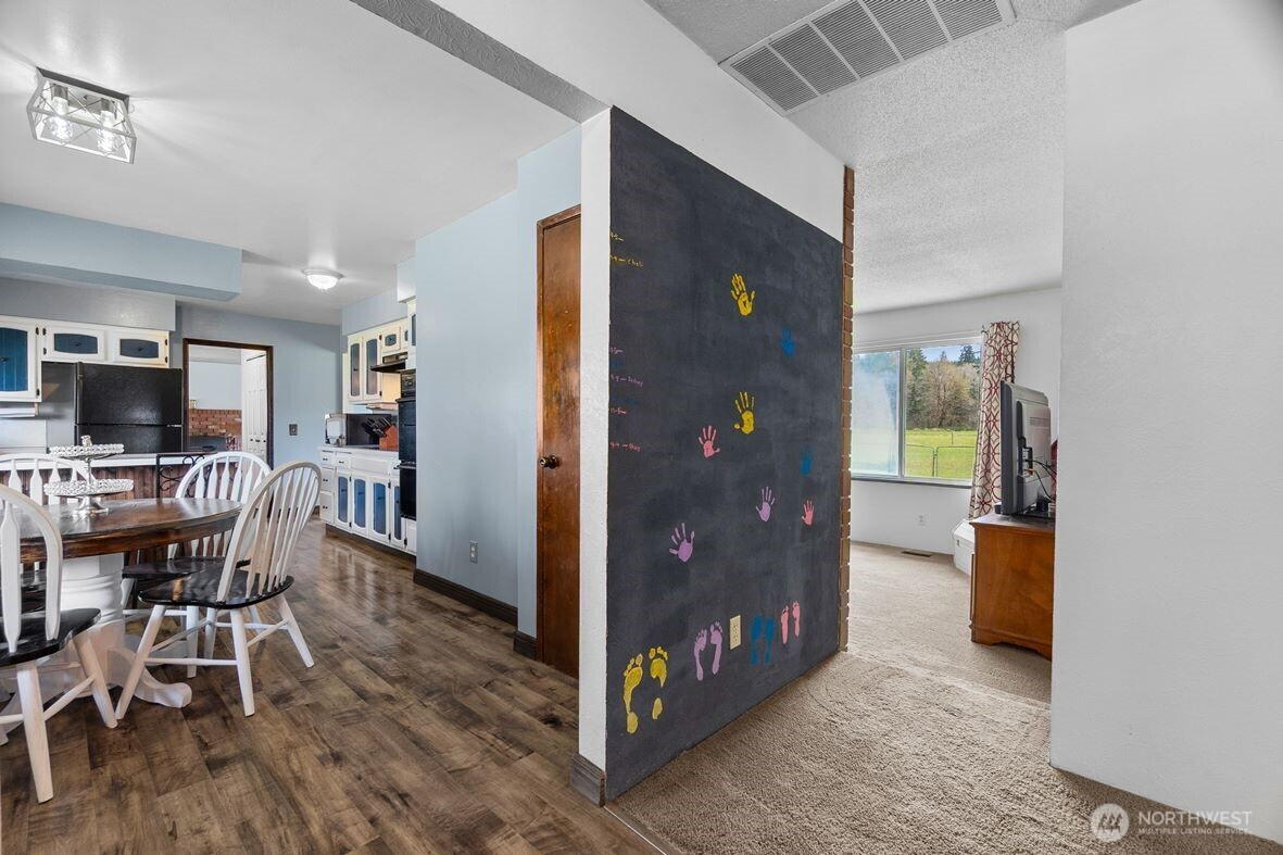 Just 2.5 miles from the McCleary freeway exit, this 2,195-square-foot, west-facing residence sits on 2.2 level acres—nearly 96,000 square feet of open, usable land—with a pastoral view that never tries too hard, yet never disappoints. It is the kind of setting people move for, then wonder why they waited. Inside, the plan is both sensible and generous. A formal living room, anchored by a fireplace and a wide picture window, opens to a dining room designed to frame the landscape. The kitchen is thoughtfully designed with ample cabinetry, a peninsula with eating bar, and a casual dining area with a row of windows that welcomes in natural light. There are four bedrooms and 2.25 baths, including a primary suite with dual closets and its own private bath. A large family room with a wood-burning stove insert offers a second place to gather—or retreat—with easy access to the carport and backyard. Comfort is handled quietly, with a heat pump for efficient heating and cooling and ceiling fans. Outside, the property becomes even more compelling. A detached garage with shop, carport, and covered equipment parking provide flexibility for hobbies, storage, or work. A dog run and partially fenced yard make daily living easy, while a seasonal creek borders the north side of the property, adding a natural sense of place. All of this, with an easy 20-minute commute to Olympia’s Westside, makes the setting as practical as it is peaceful.