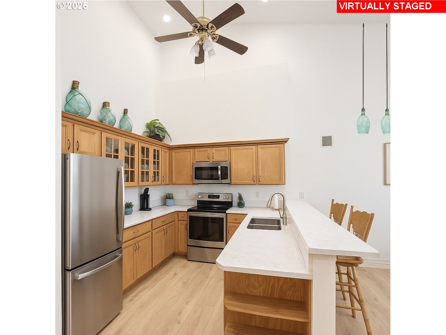 Wow! A furnished top unit with ocean views , Soaring Vaulted ceilings, Open Layout, view of the ocean from your private balcony a few blocks to town & the seller is offering a real estate contract ! Stop the car! Can you imagine this all updated? Plus you can use this full time or your private get away or even as an air B&B. The outside appearance is like out of a magazine w its southern charm. The interior has a lg bedroom w vaulted ceiling. Wide hallway , Bathroom with tile floor and walk-in shower, large open kitchen with large eating bar, double sink, lots of counter space ,tile floor ,Ceiling fan & an area for a dining table. Great room Skylight, Gas fireplace, Ceiling fan, jetted tub & French drs to private balcony w ocean views