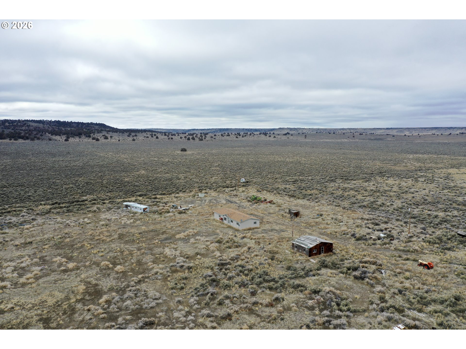 The Dog Mountain farm has historically operated as a productive irrigated farm producing primarily alfalfa and triticale on quality soils consisting mainly of Poujade very fine sandy loam and Ausmus fine sandy loam. OWRD records indicate irrigation rights for approximately 581.50± acres (Priority Dates 1976, 1982, 2014). Irrigation infrastructure includes multiple irrigation wells, series of buried mainline, and 10-Pivots (one inactive). Ranch operations are supported by a stock water well and moderate corral system as well perimeter + cross-fencing. A series of gravel/dirt interior roads provides adequate farm circulation. Primary access is provided via frontage along Highway 205 just a short distance south of the City of Burns. The 2001 double-wide manufactured home (fair condition) with 1,836± SF, 3 bd, 2 ba, is well set overlooking the farm with private setting. The home is served by a domestic well and standard septic (9-10 yrs old). Information package available upon request.