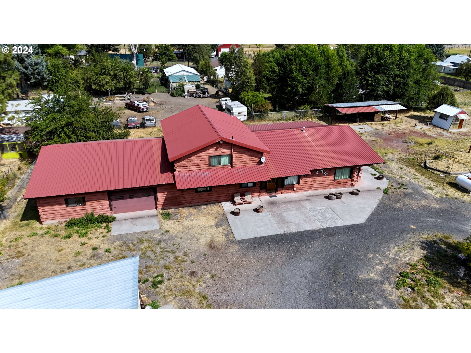 (503) 893-8874REDUCED BY $40,000 FROM THE ORIGINAL LISTED PRICE Nestled in a serene neighborhood, this charming log home features two spacious bedrooms and one and a half bathrooms, spread over an impressive 3,084 square feet. The attached oversized 1,224 sqft garage provides ample space for vehicles and storage. The heart of the home is the open-concept kitchen and dining area, perfect for entertaining guests for hours on end. The Homes appliances and furnace are powered by propane. Upstairs, a roomy 864 sqft loft can be easily transformed into a cozy guest area or an exciting game room. For those who need extra storage, the property includes a 1,080 square foot shop and a 720 square foot machine shed, perfect for keeping your gear and toys safe. The mature landscape boasts Apple, Pear, and Apricot trees, creating a picturesque and fruitful environment. Situated on a generous 1.39+/- acre city lot this home offers both space and convenience for a delightful lifestyle.