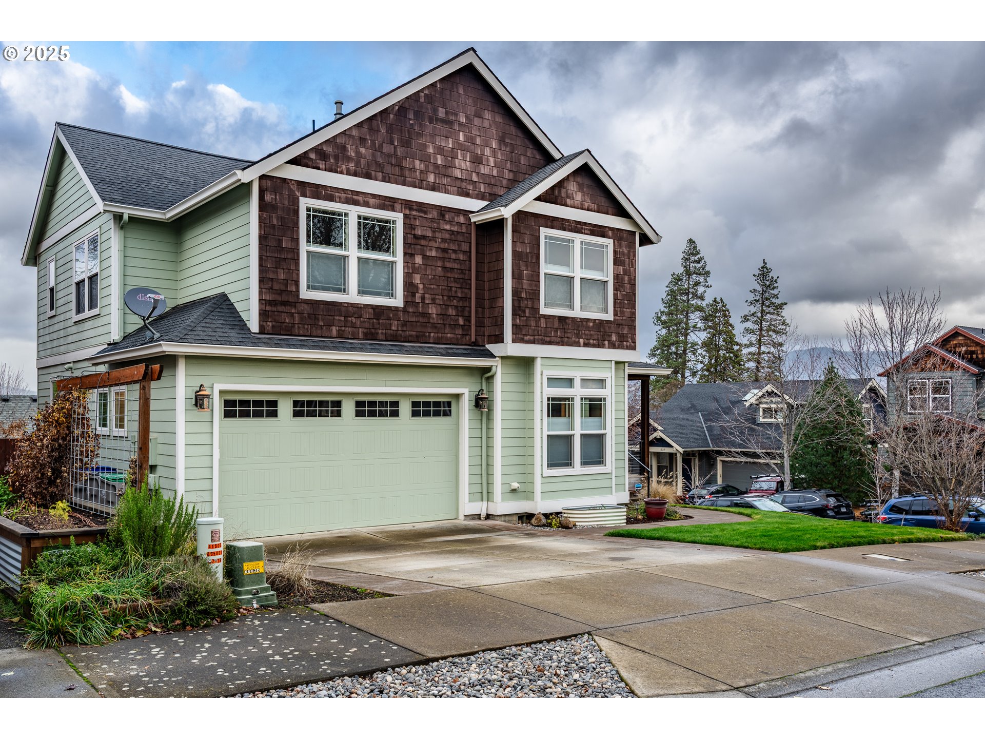 Welcome to this stunning 5-bedroom, 2.5-bathroom home positioned on a desirable corner lot in Hood River's sought-after neighborhood. This well-maintained 2,550 square foot residence showcases quality construction throughout and offers an exceptional living experience.The home features an open floor plan on the main level, creating seamless flow between living spaces. The large kitchen serves as the heart of the home, complete with granite counters, a butcher block island, and stainless steel appliances. Beautiful wood floors and abundant natural light create a warm, inviting atmosphere throughout.The primary bedroom is a true retreat, offering breathtaking Mt. Adams views and access to a private balcony where you can enjoy Underwood Hill's vistas. The spacious primary suite includes a large bathroom with soaking tub, walk-in shower, and generous walk-in closet. A convenient main level bedroom provides flexibility as a home office.Additional highlights include a cozy gas fireplace and a brand new HVAC system installed in 2025, ensuring year-round comfort and efficiency.This prime location offers easy access to parks, schools, and the popular Westside Trail. You will appreciate the proximity to daily conveniences such as nearby Safeway for shopping. Outdoor enthusiasts can ride to Post Canyon for recreation.The corner lot positioning provides extra privacy and space, making this property stand out in Hood River's competitive market. This home perfectly combines modern amenities with the natural beauty that makes Hood River such a desirable place to live. Given Hood River's appeal as an outdoor recreation destination and this corner lot location, emphasizing proximity to Columbia River activities and mountain access will really resonate with buyers seeking that Pacific Northwest lifestyle.