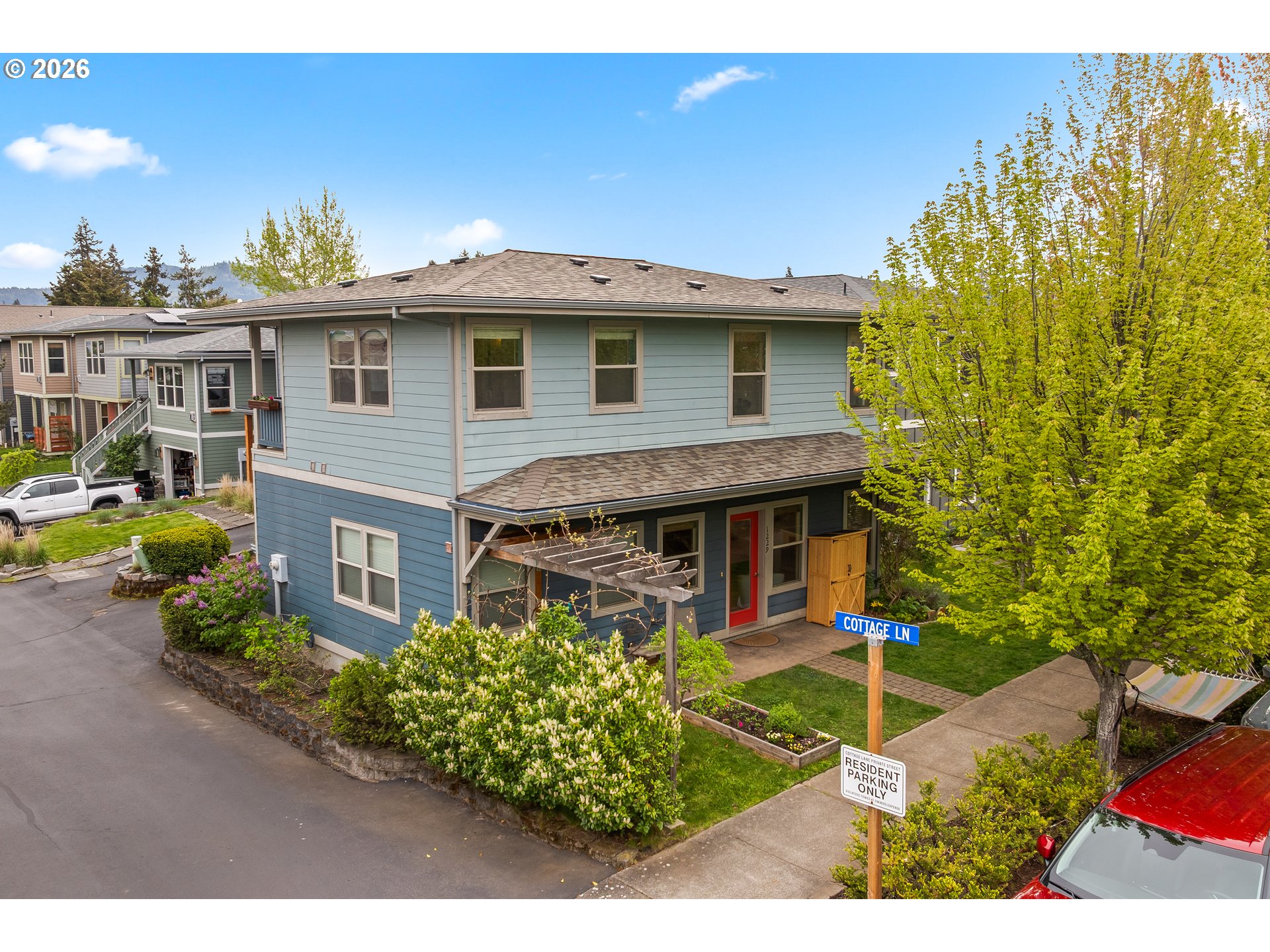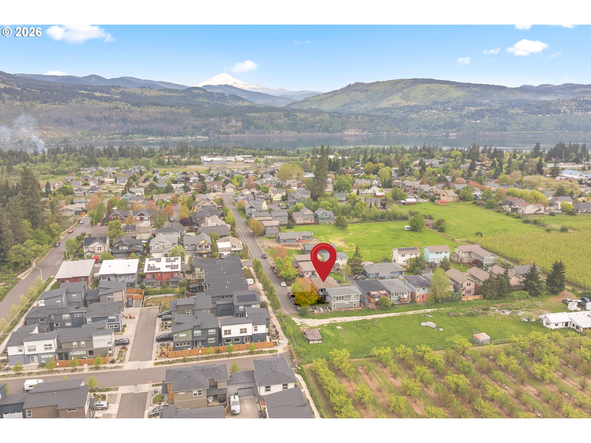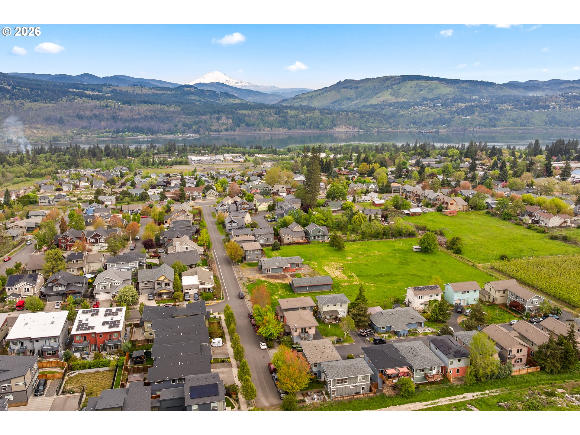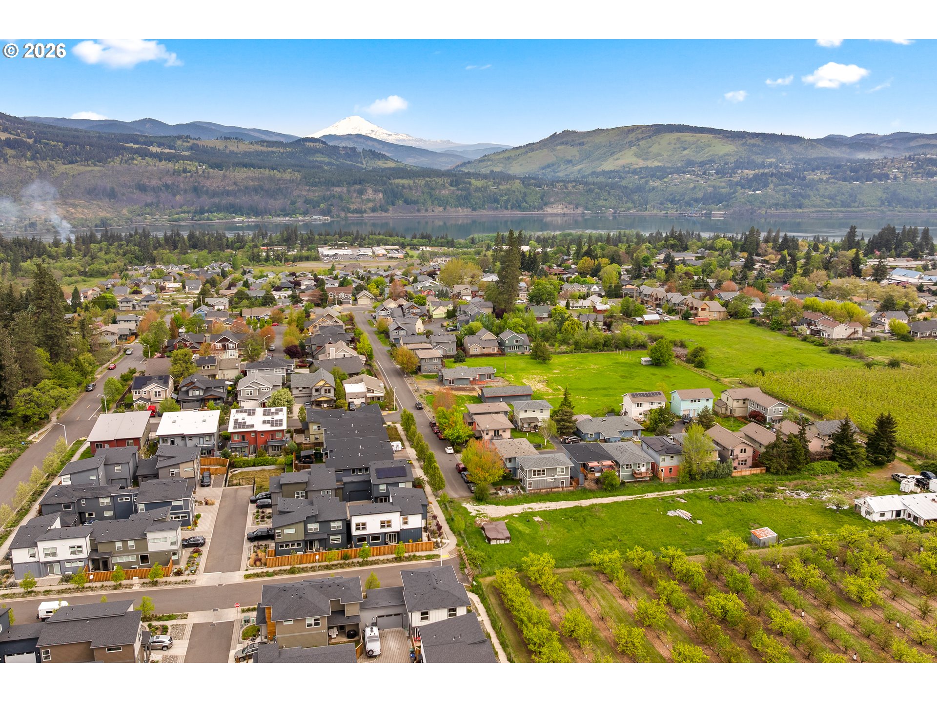 Nestled in the charming Cottage Lane Development off May St, this delightful 3-bedroom, 1.5-bath home is the affordable gem you've been waiting for in the Hood River market. With 1,176 sq ft spread across two inviting levels, this home strikes the perfect balance of cozy character and comfortable living. Step inside and feel instantly at home. The cottage's warm aesthetic and thoughtful layout make every corner feel welcoming. The galley-style kitchen is both efficient and stylish, featuring sleek stainless steel appliances that make cooking a pleasure. And with ample storage throughout, there's a place for everything — keeping your home as tidy and serene as the surroundings outside.After a day of adventure, head up to your private upper balcony and soak in sweeping views of majestic Mt. Adams — the perfect spot to watch the evening sun paint the sky over the Columbia River Gorge.Peace of mind comes easy here too, with a brand-new roof (2025) and a one-car garage already taken care of. As a unique corner unit, this home enjoys extra privacy, beautiful evening sun exposure, and an open, airy feel that sets it apart from the rest of the development. Outside your door, the community green space invites neighbors to gather, relax, and connect. And for those who love to explore, the Westside Trail is just two blocks away — one of the gateways to Hood River's incredible outdoor lifestyle. Located within the sought-after Westside School District and just minutes from local shopping, dining, and endless recreational opportunities, this home offers a lifestyle as beautiful as its surroundings.