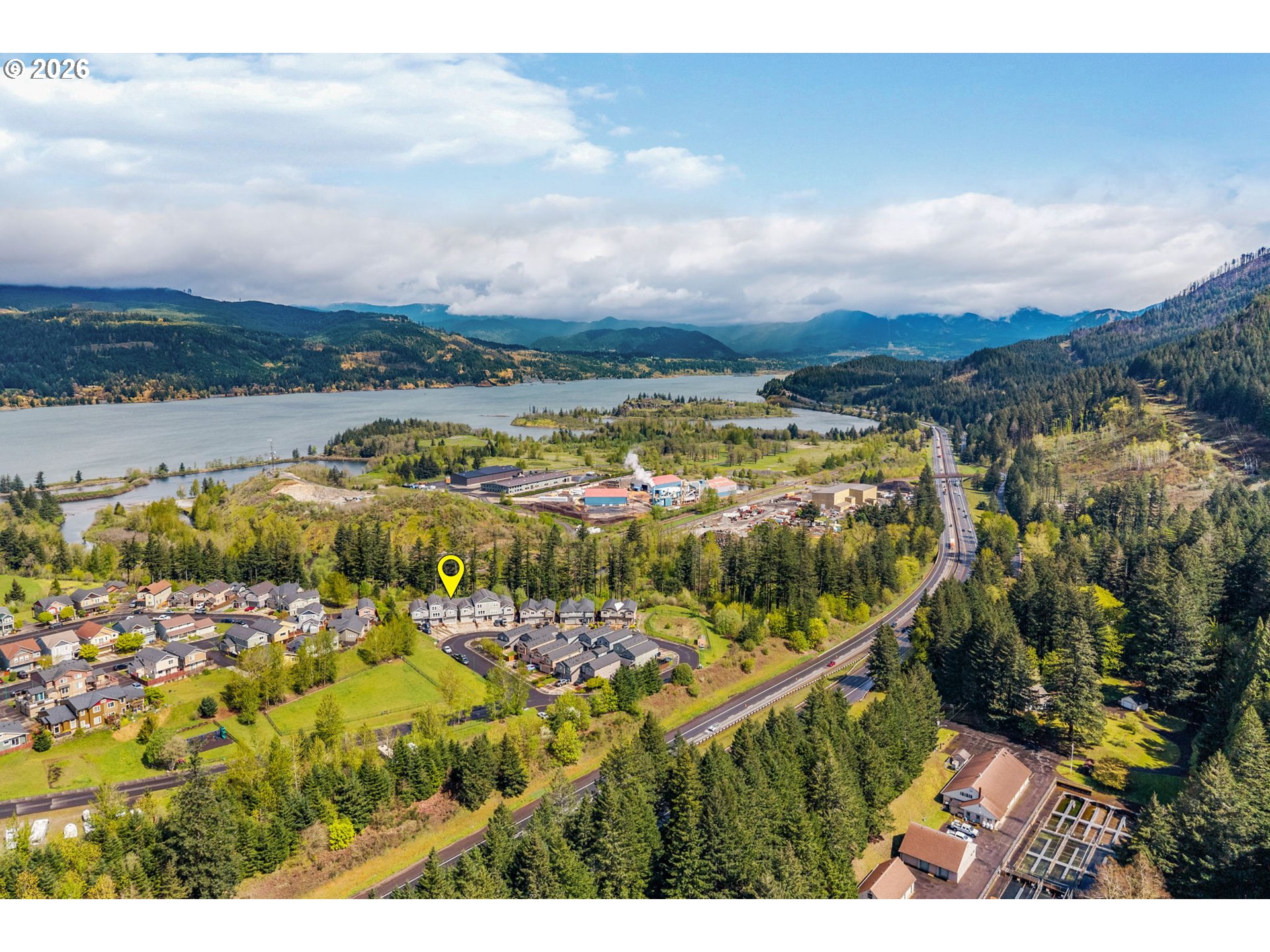 Located in the desirable Shahala community of Cascade Locks, this well-maintained 3-bedroom, 2.5-bath townhouse offers 1,789 sq ft of comfortable, modern living. Owned since 2019 and consistently used as a rental, this property presents a strong opportunity for investors or those seeking a low-maintenance home in the heart of the Columbia River Gorge. The main level features durable LVP flooring throughout the open-concept living and dining areas, highlighted by high ceilings and abundant natural light. The kitchen is thoughtfully designed with custom cabinetry, stainless steel appliances, and quartz countertops—ideal for both everyday living and entertaining. The main floor includes a convenient half bath and sliding door which leads to a covered patio and fully fenced yard, perfect for relaxing or accommodating pets. Upstairs, the vaulted primary suite offers a peaceful retreat with plush carpeting, a walk-in closet, and a private ensuite bath featuring a walk-in shower. Two additional bedrooms, a full bathroom, and a dedicated laundry area complete the upper level.Enjoy beautiful views from every room, including surrounding mountain hillsides and Columbia River views from the north-facing spaces. The Shahala community enhances the lifestyle with a dog park and children’s play area. Just minutes from downtown Cascade Locks, you’ll have easy access to local dining, wineries, brewpubs, and shops, along with endless outdoor recreation in the scenic Columbia River Gorge.