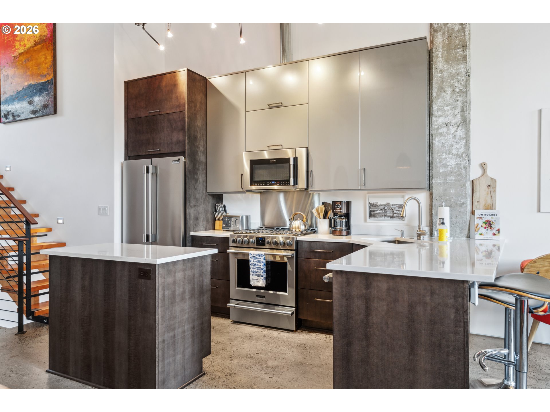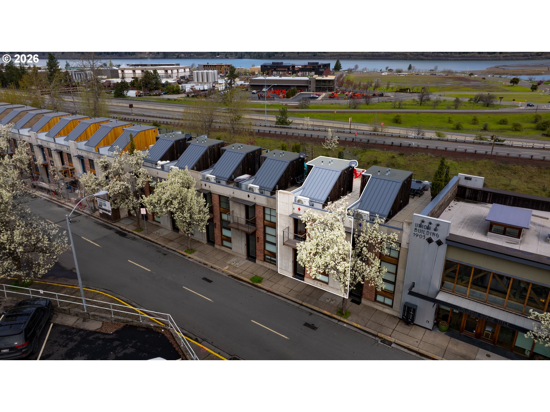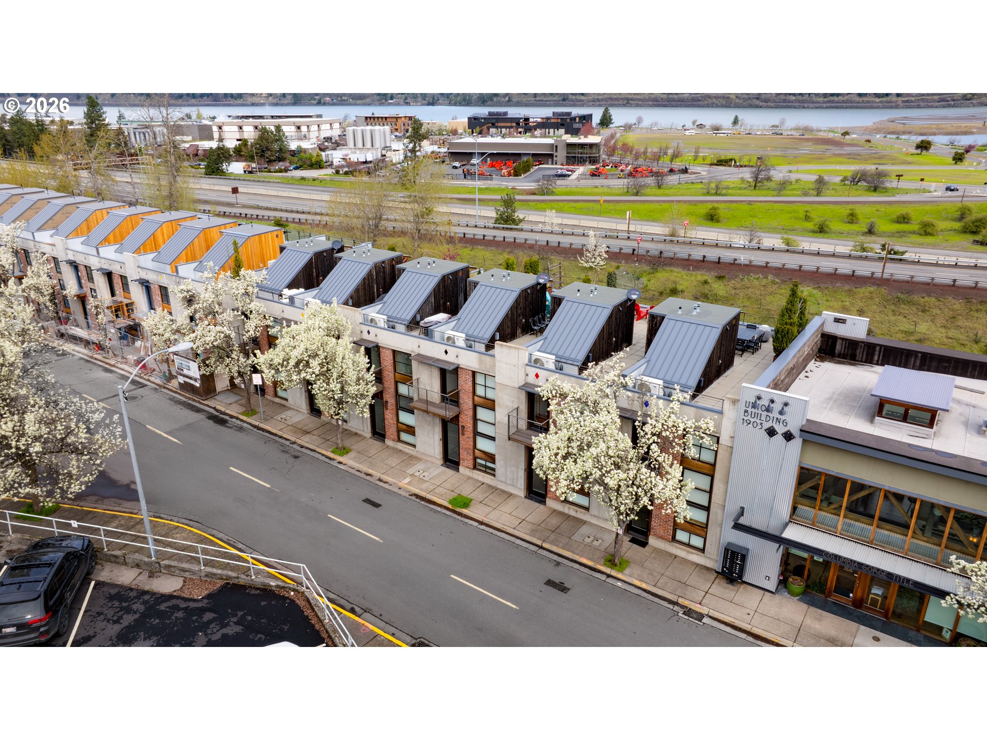 Modern design meets small-town charm in this stunning townhome located in the coveted Union Building Lofts. With floor-to-ceiling windows that frame sweeping views of the Columbia River, this home brings the wow factor from the moment you walk in. Featuring two bedrooms, a flexible bonus space, and an open-concept living area, the layout is as functional as it is beautiful. The finishes are crisp and contemporary, and natural light pours in from every angle. The garage can be used traditionally or reimagined as a rec room, gear haven, or creative studio. Situated in the heart of downtown Hood River, this property offers direct access to shops, restaurants, and the waterfront. Even better? It's commercially zoned, which means short-term rentals are allowed. Currently operating as a successful vacation rental and furnishings are negotiable. Whether you're looking for a full-time residence, weekend getaway, or income-producing investment, 306 Columbia is a rare opportunity to own one of Hood River’s most stylish and versatile spaces.