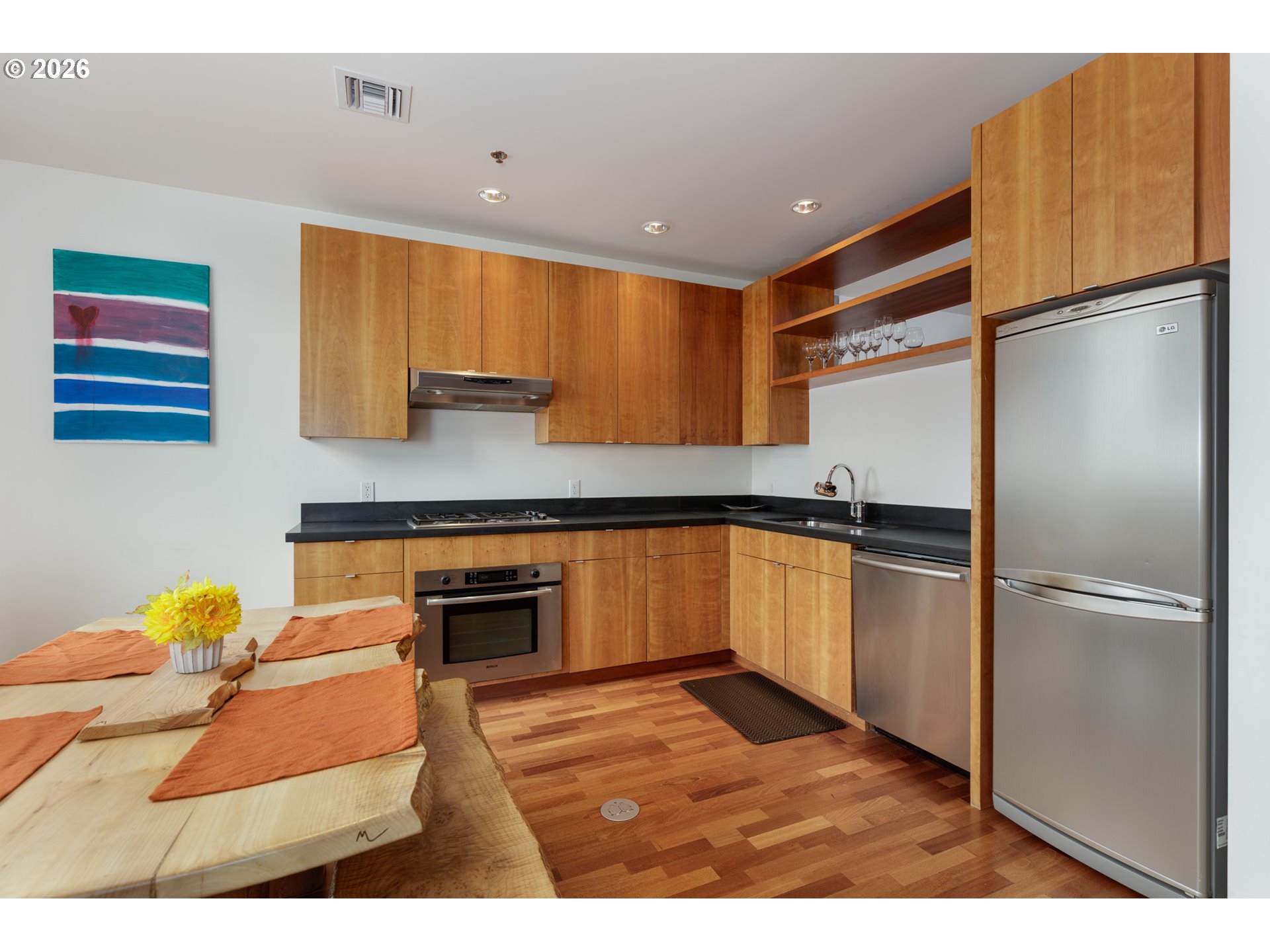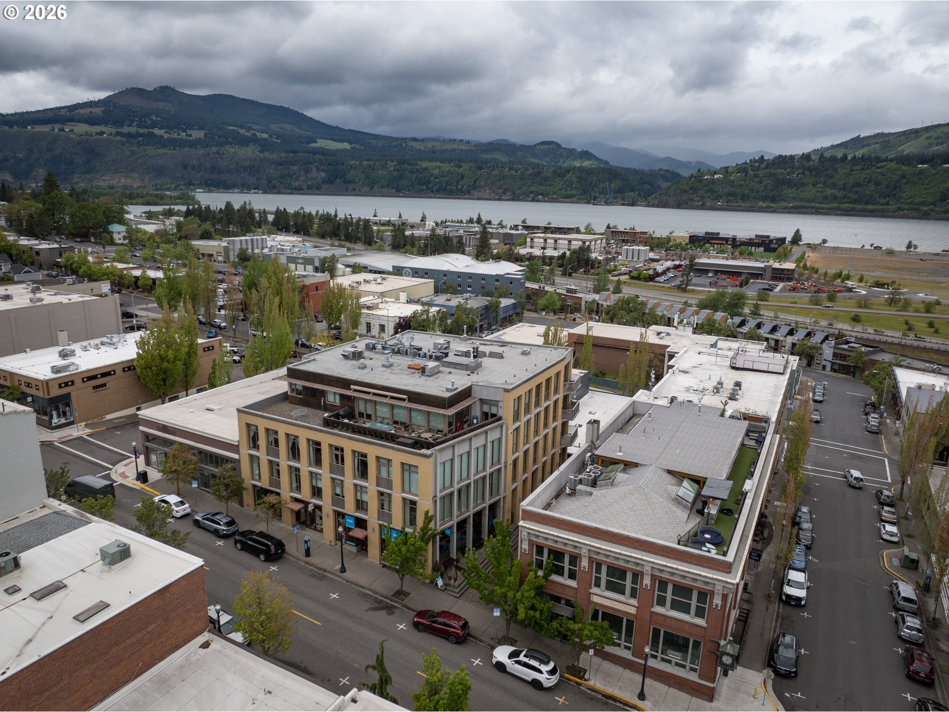 Urban vibes meet small-town charm in this stylish condo. Enjoy single level living, three stories above the city, then descend directly into the buzz of Downtown Hood River. Thoughtful design delivers a modern aesthetic with exposed concrete accent walls and full-height, south-facing windows. Clean lines, contemporary finishes, and an open layout create a comfortable, loft-like feel that’s both stylish and efficient. Central AC and radiant floor heat offer year round comfort with a touch of luxury. Step outside to cafés, restaurants, shops, and riverfront access just blocks away. You’ll love the uniquely urban vibe! Trails, parks and the wider Gorge lie just beyond. Home base is easy here, with the condo association handling many of the ownership tasks. Short-term rentals are allowed within the parameters established by the Condo Rules, and the unit has a proven rental history. It’s your personal property with perks. Amenities include underground parking, elevator access, and a dedicated storage unit—everything you need for a lock-and-leave Gorge lifestyle!
