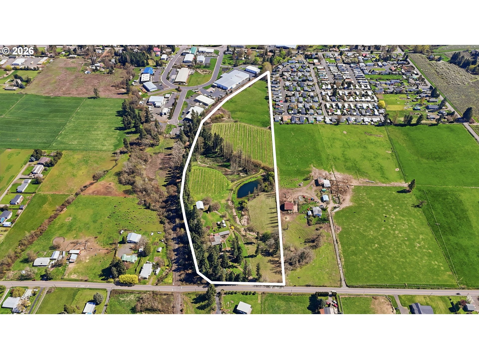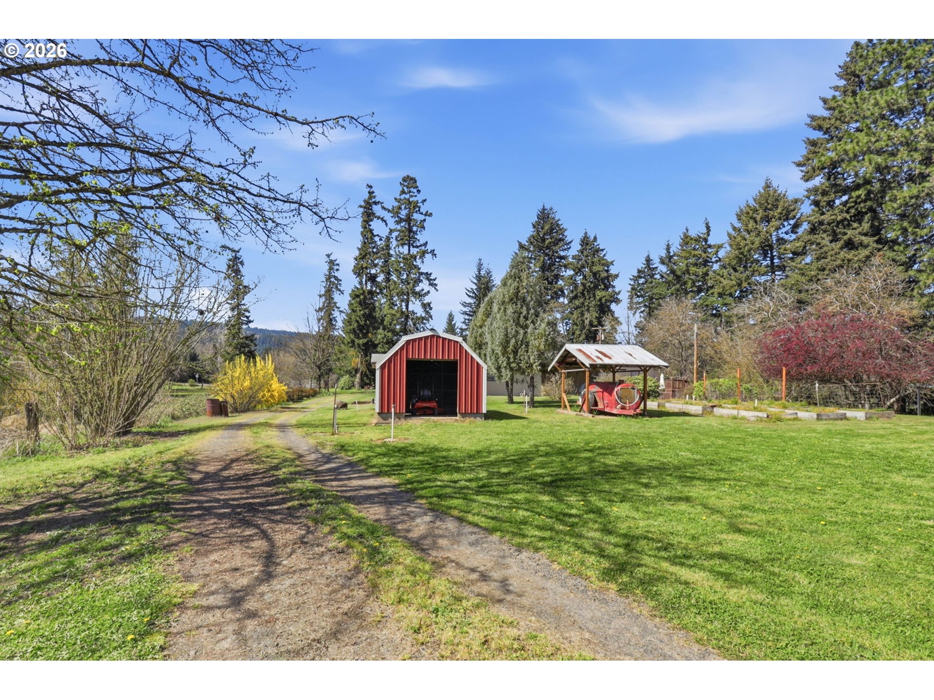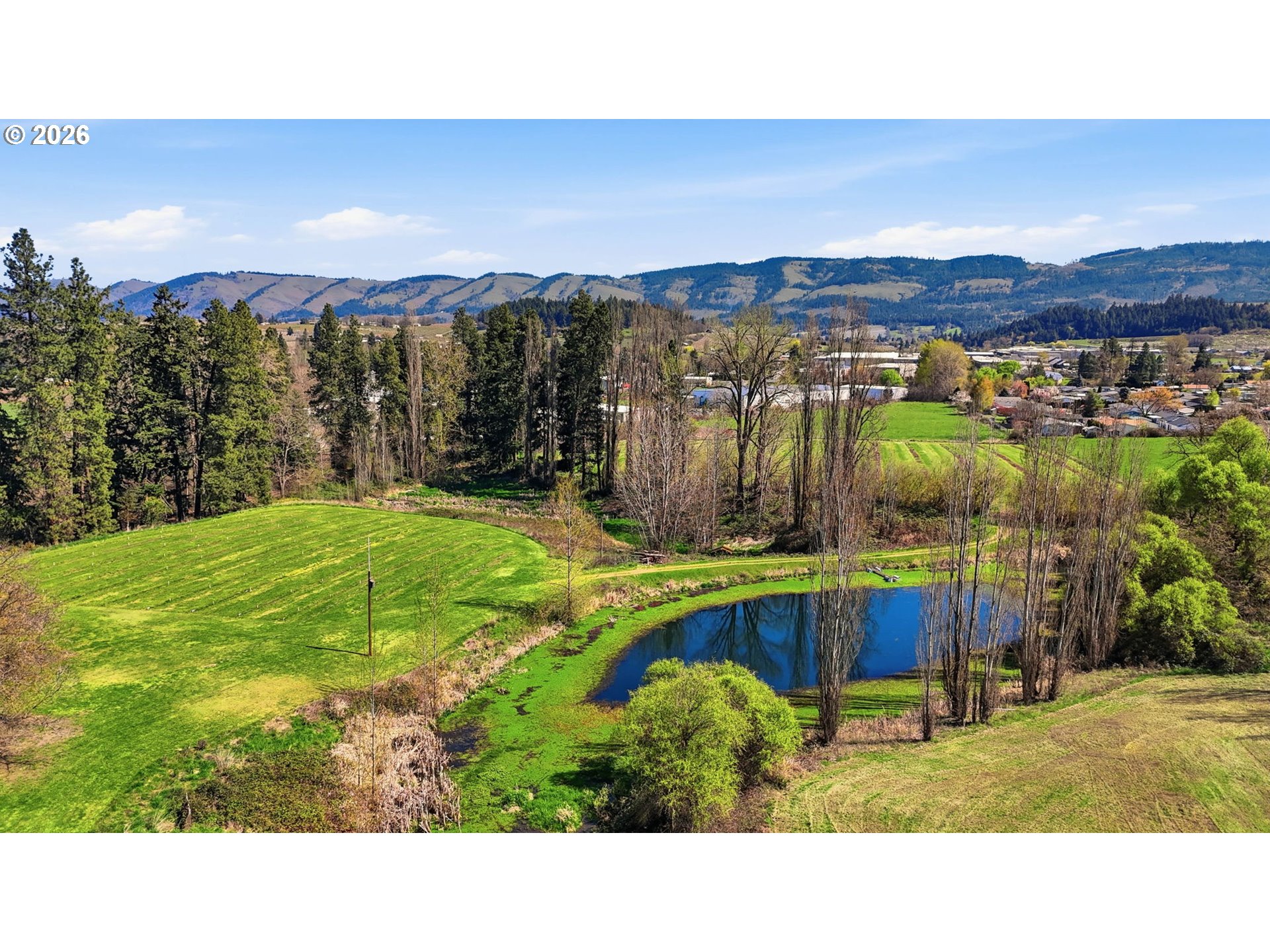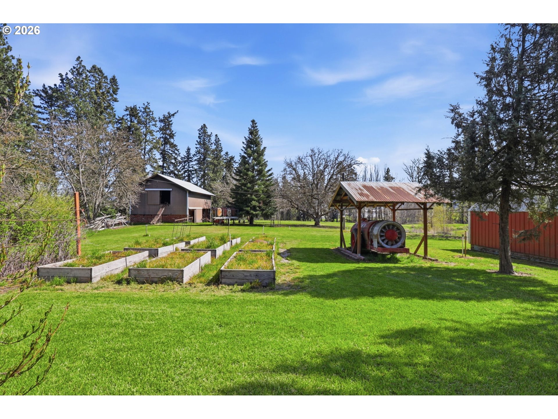 Nearly 20 usable acres in Hood River with a shop, outbuildings, and mountain views. The single-level home is filled with natural light and features a comfortable layout with a wood-burning fireplace, skylights, and easy flow between the living, dining, and kitchen spaces. Step outside, and it all opens up. The covered front patio is made for gatherings, whether it’s summer barbecues or relaxed evenings with friends, while the back deck overlooks the garden area and the surrounding landscape. Eight raised garden beds and mature grounds create an ideal setup for growing or hobby farming, with most of the flat areas already equipped with full irrigation piping. The property benefits from irrigation rights through Hood River County, along with additional water rights supported by an on-site pond and a creek. The property is well-equipped with multiple outbuildings, including a very large two-story shop with cooling storage for fruit, two 12x16 red barn-style storage sheds, and an adorable she-shed that’s perfect for crafting, reading, or a quiet retreat. A separate cabin adds even more flexibility and could be transformed into a guest house, farm store, or expanded living space. Gently sloping land with a mix of pasture, orchard potential, and open space is complemented by a pond and sweeping territorial and mountain views. This is the kind of property that supports both lifestyle and long-term versatility, all just a short drive from the heart of Hood River.