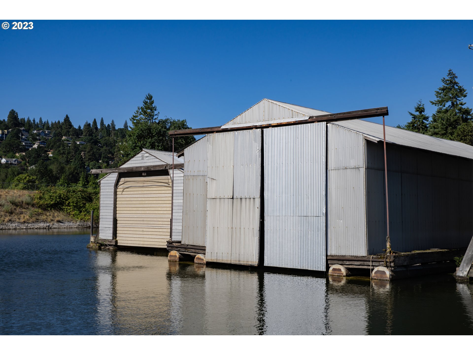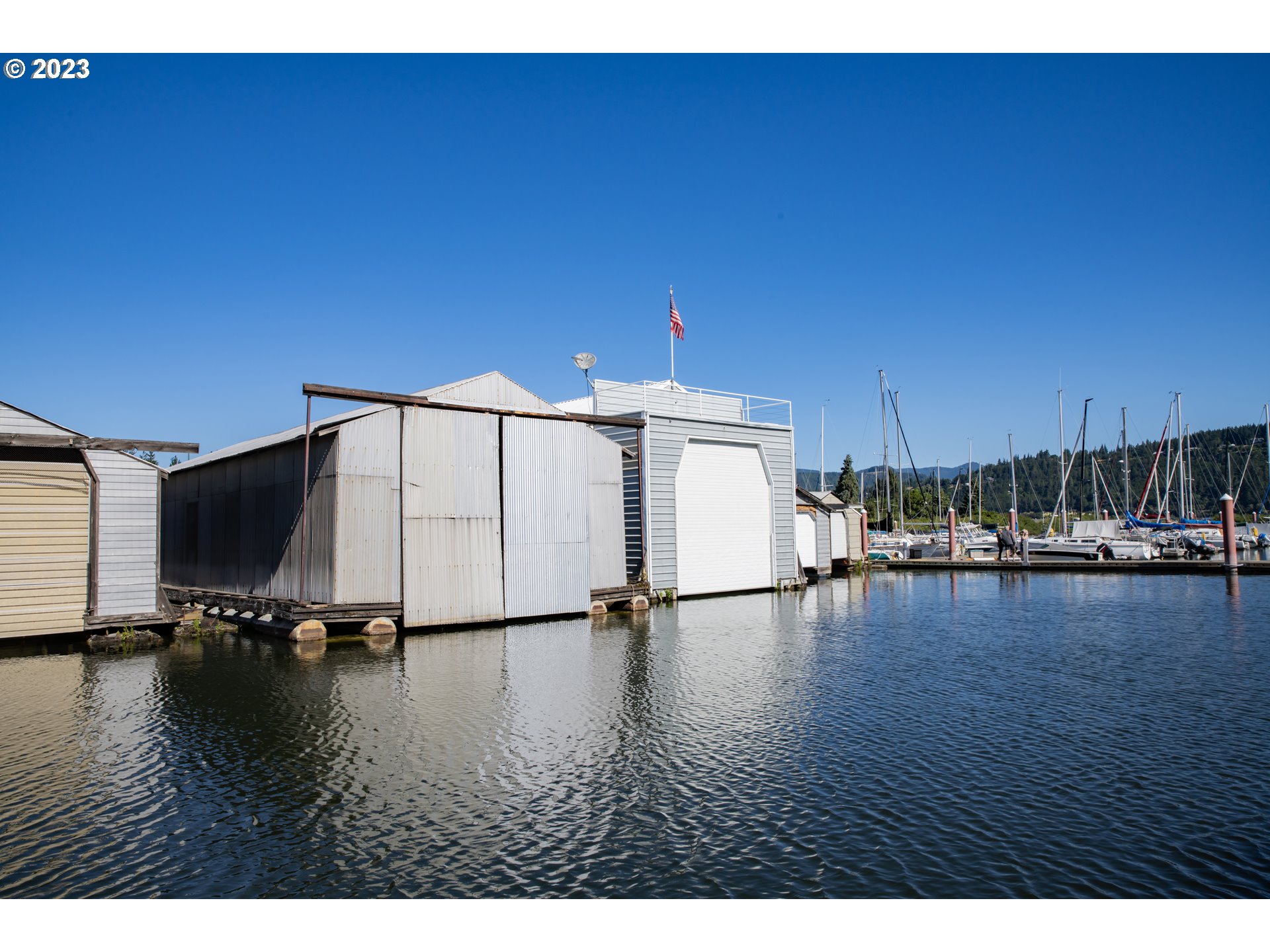 Metal boat house with large covered & lockable boat well. Kitchen & dining area and a generous loft, each of 375 sqft. Additional 1000 sqft of enclosed boat barn, with a 36 x 13 boat well. Bathroom and shower available in parking lot. 3 overnights are allowed in the marina in any 7-day period. Port rules do not allow bathrooms, porta-potties, functional plumbing or sinks in boat houses. Self-contained toilets like incinerator toilets are ok. Amenities can also be provided on a boat in the boat house. Current lease runs through December 2026. Port of HR has given notice of non-renewal of leases, at which time boat houses would have to be removed. There is an ongoing effort by owners to renegotiate renewal of the leases. Enjoy the summer on the water! 2023 annual morage fee was $3293.45, annual insurance is about $800, and property tax was $1405.00.