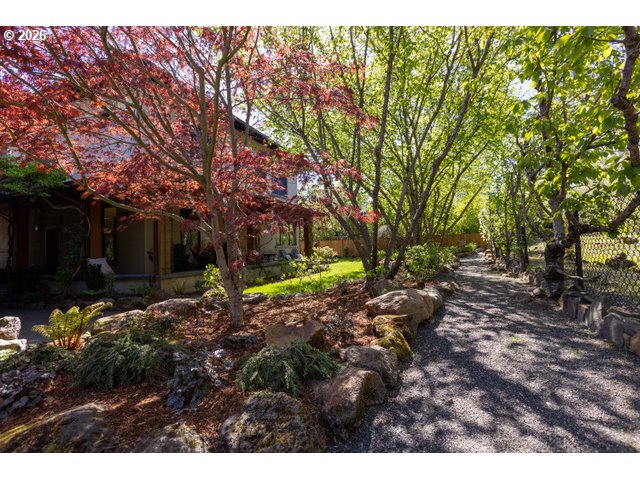 (503) 893-8874Experience the pinnacle of Hood River living in this meticulously renovated modern-organic retreat. Set within the Columbia Gorge, a National Scenic Area, this wind-sheltered estate borders a protected wildlife habitat, offering rare privacy and true ride-in/ride-out access to Post Canyon trails. Ideally positioned in the heart of the Gorge, you’re minutes to world-class kiteboarding, iconic hikes, and acclaimed AVA wineries, all just 40 mins from Mt. Hood and 60 mins to PDX. Reimagined with a refined "casual luxury" aesthetic, the home centers on a chef’s kitchen with an oversized custom island, butler’s pantry, and a dramatic picture window framing nature as living art. Salvaged timber beams, an artisan metal staircase, and polished concrete floors establish a warm and architecturally rich character. A soaring stone fireplace and seamless flow to wrap-around porches and vine-covered breezeways create unforgettable alfresco evenings with Mt. Adams views. A standout feature: the 308 +/- sq-ft detached studio. Heated and pre-plumbed for water/mini-split, it's ideal for a luxury office, guest retreat, wellness space, or income potential. The grounds unfold as a private ecosystem with curated landscaping, wooded paths, and automated irrigation. Tucked within a coveted wind-protected pocket, the property enjoys a peaceful micro-climate. Located in the top-ranked Hood River School District and a Firewise USA Recognized Community, this is a rare blend of privacy, access, and elevated design in one of the nation's most celebrated outdoor towns. A legacy property for adventure, gathering, and renewal.
