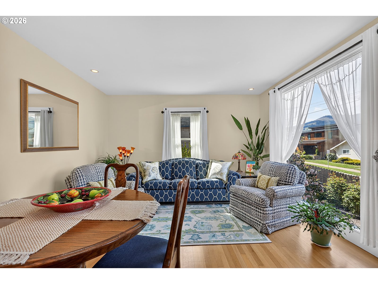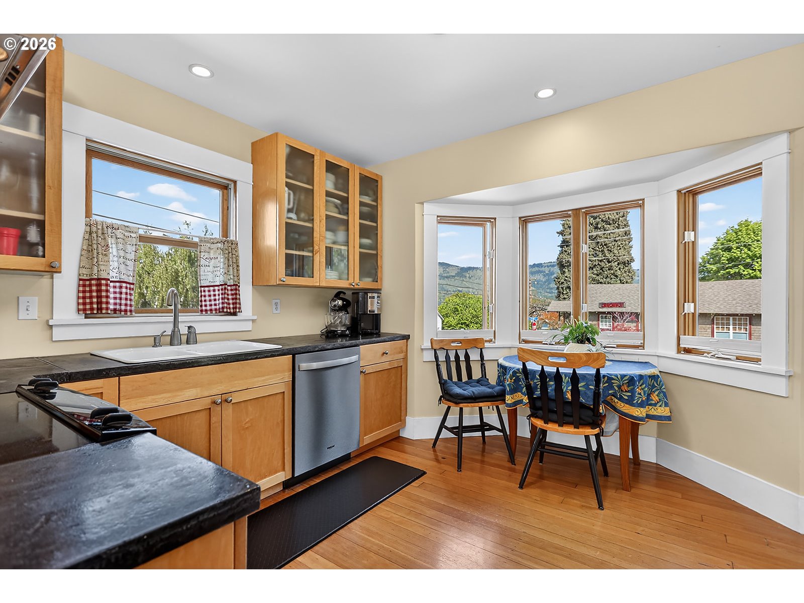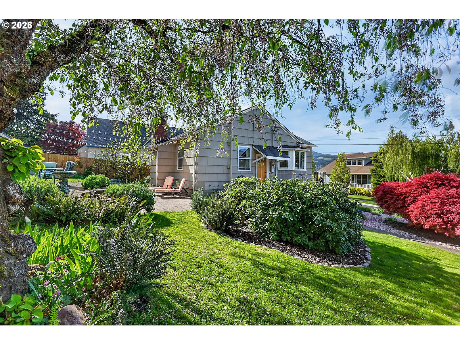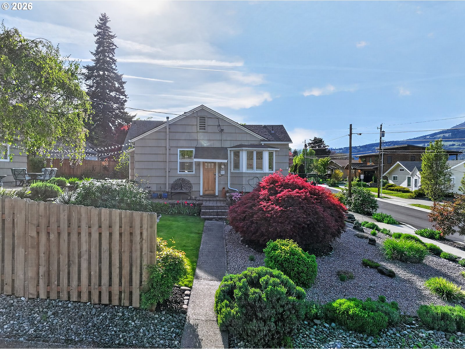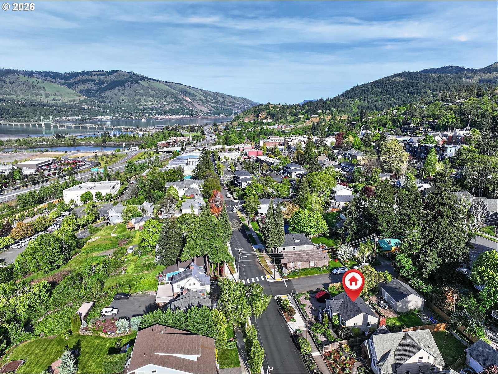 (503) 893-8874Location, Location, Location!! With peeks of Mt. Adams and the Columbia River, this classic meticulously maintained home is on one of the most desirable streets in the heart of Hood River. This large oversized .16 acre corner lot has established plantings and an irrigation system to keep it lush and green. Main level features hardwood floors throughout the updated kitchen/nook with stainless steel appliances, 2 bedrooms, bath and living room with views of the river and mountain. Lower level offers hardwood flooring in primary bedroom with large walk-in closet, slate floor family room with built in wood bookcase and French doors to Columbia Street, full bathroom has radiant heated floors and utility room with tankless water heater. Exterior features a detached 2 car garage, fun paver patio and fenced backyard lawn entertainment area. Short walk to downtown or stay in your own private space. Best of both worlds!