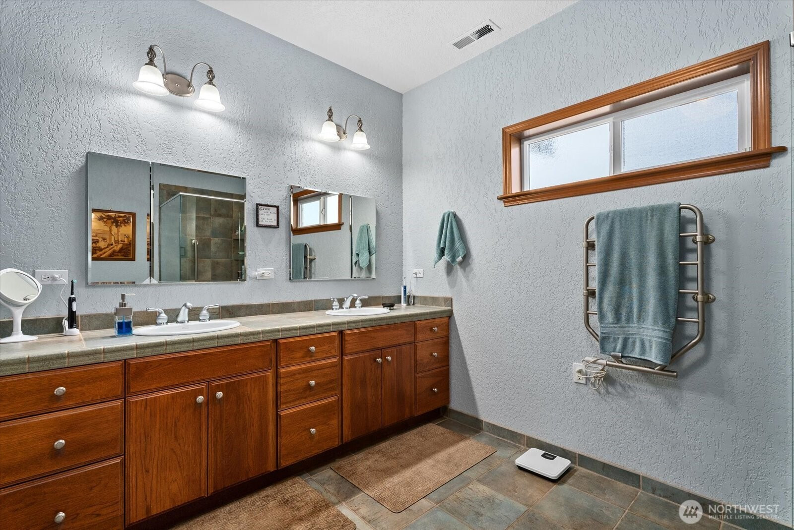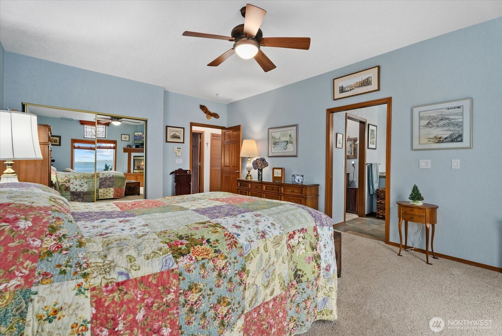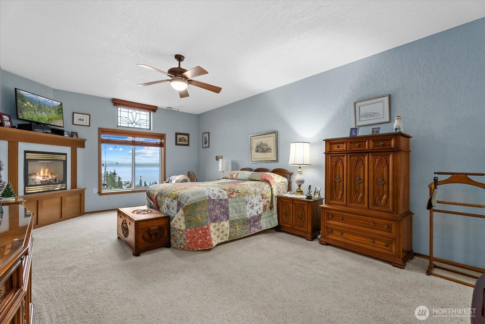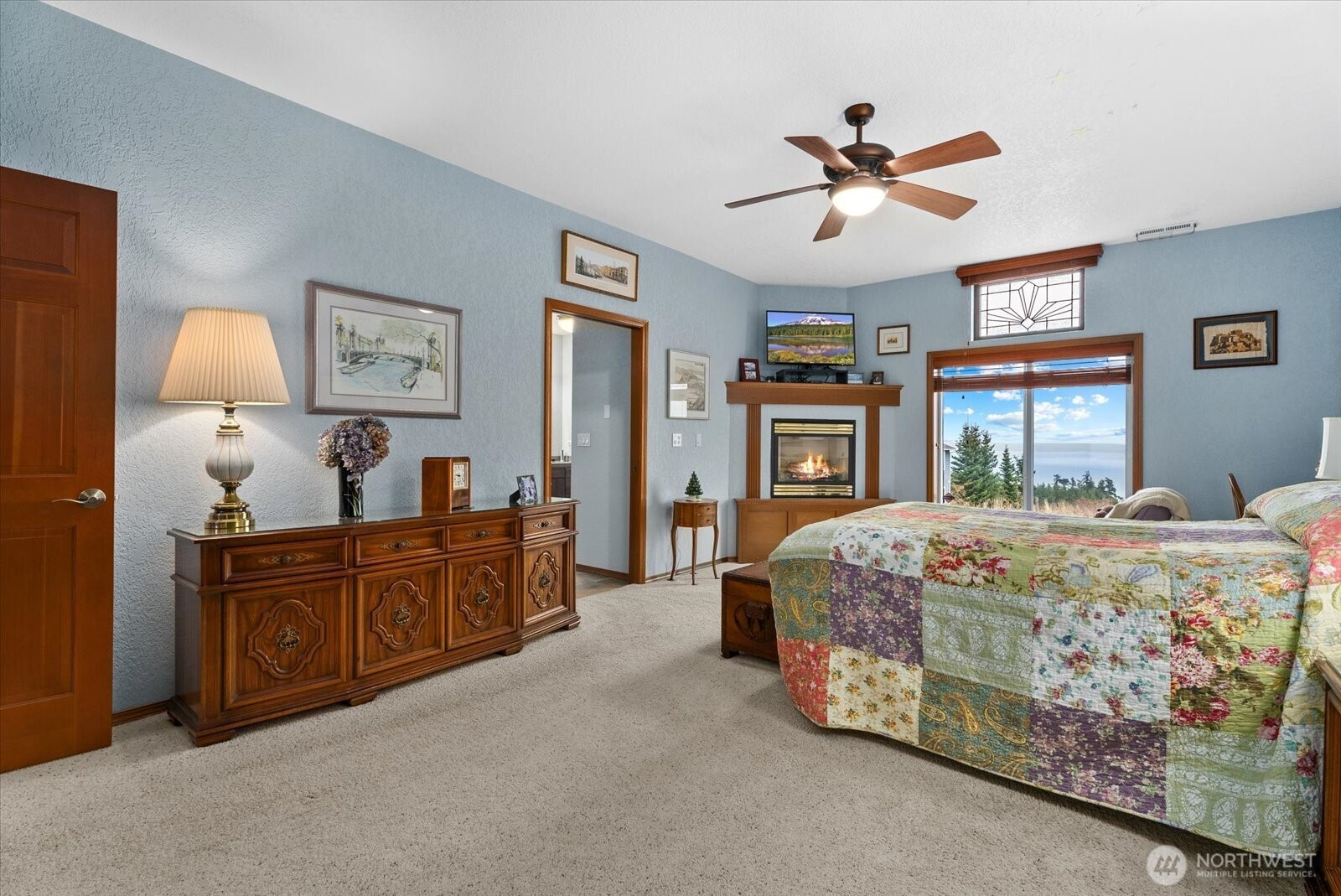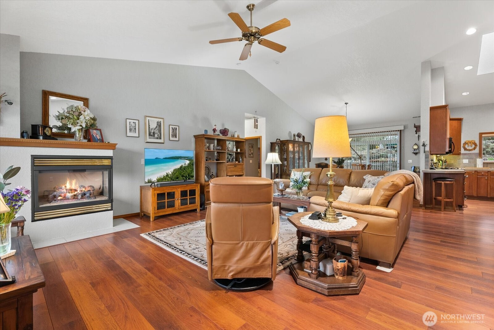 Sweeping views of Port Susan and the Cascade Mountains can be enjoyed from this meticulously maintained, well-appointed custom one-story home on Camano Island, offered for the first time. Tucked into a quiet cul-de-sac, this 3-bedroom, 1.75-bath rambler provides privacy, comfort, and effortless single-level living. Spanning 2,080 sq ft, the home features vaulted ceilings, skylights, and expansive windows that fill the interior with natural light while framing stunning water and mountain vistas. The open-concept layout is designed for easy living, with spacious rooms, wide hallways and doorways, and thoughtful accessibility (including for mobility devices) throughout. Gleaming laminate wood flooring and solid maple cabinetry highlight the home’s quality and craftsmanship. The great room is anchored by an inviting fireplace, while a second fireplace in the primary suite creates a private retreat complete with a luxurious 5-piece en-suite bath featuring a soaking tub. Year-round comfort is ensured with a heat pump and A/C, a brand-new roof, and an auto-start generator for peace of mind. Outdoor living is enhanced by covered front and rear porches, mature landscaping, and a dedicated garden area ideal for relaxing or entertaining. The oversized, extra-wide 895 sq ft three-car garage offers ample space for storage, hobbies, recreational gear, and a functional workspace. A rare opportunity to own a home that blends quality, comfort, and a peaceful setting.