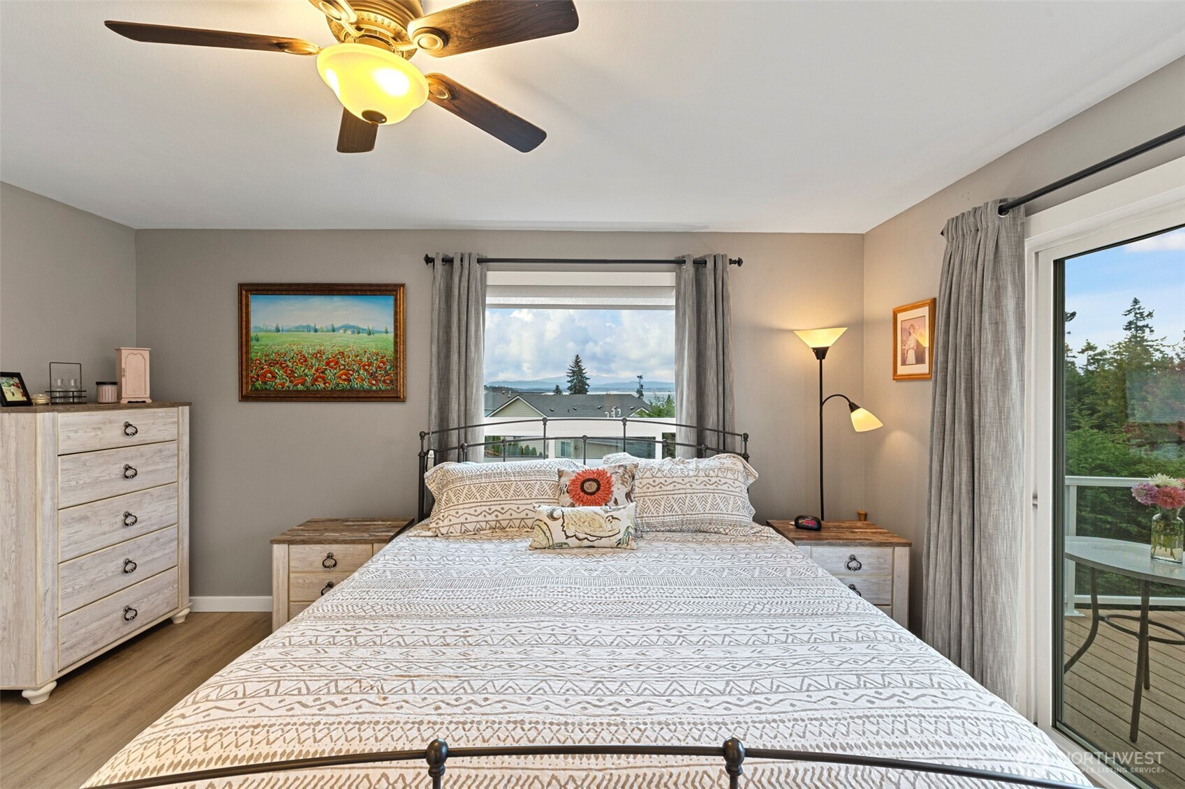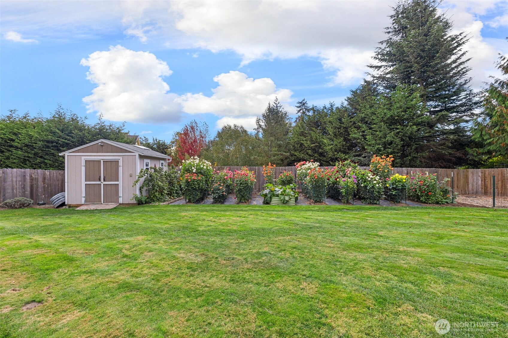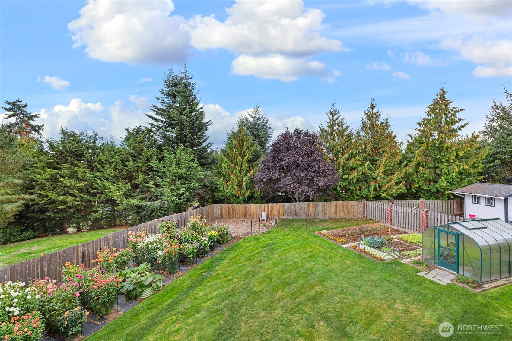 Welcome to this impeccably maintained 2,090 sqft 3 bdrm home located within Thunder Ridge community. The main level boasts beautiful brazilian cherry flooring. The kitchen is equipped with granite countertops, under cabinet lighting, opening into a bright family room with a gas fireplace. Primary bed offers a private deck that looks out to sound, Mount Baker, sunrises. Newer features include: LPV flooring upstairs,remodeled laundry,updated primary bath w/heated floors,paint,hot water tank,furnace,heat pump,water softener,landscaping,shed,greenhouse,wired for generator! Bonus room can be used for workout,office,craft room, etc. Gardener's Delight!Owner has planted 650 tulip bulbs that will be so beautiful in spring. Garden includes dahlias,raspberry,blueberry,rhubarb,grapes,raised beds and more. RV parking and close to beaches,golf,groceries,restaurants and more!