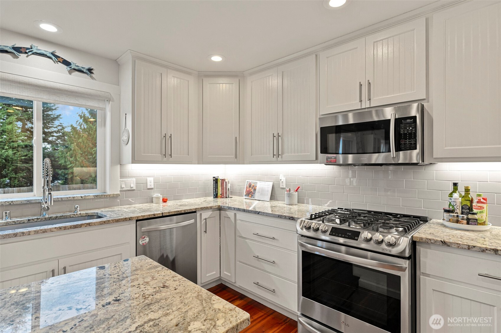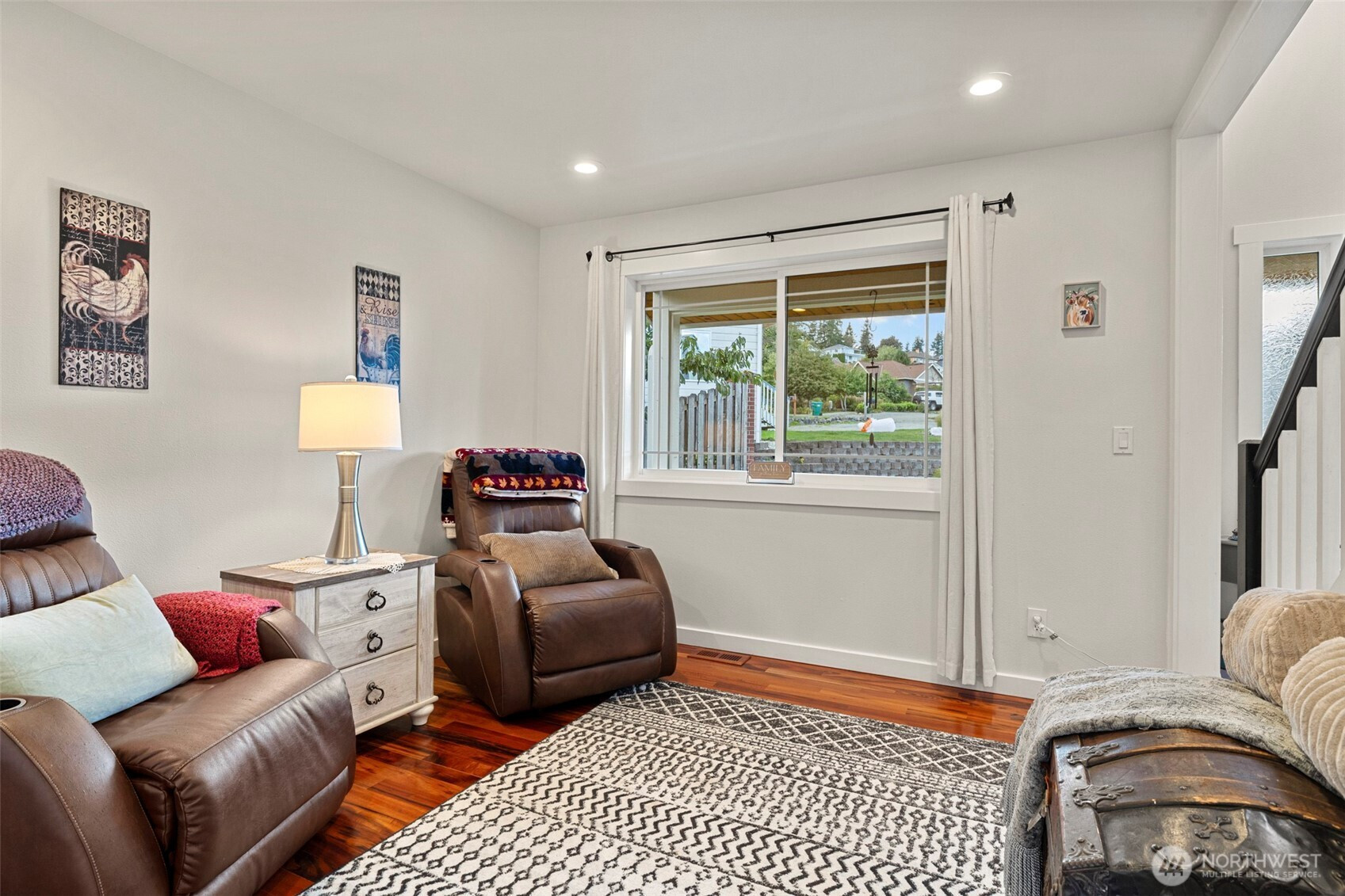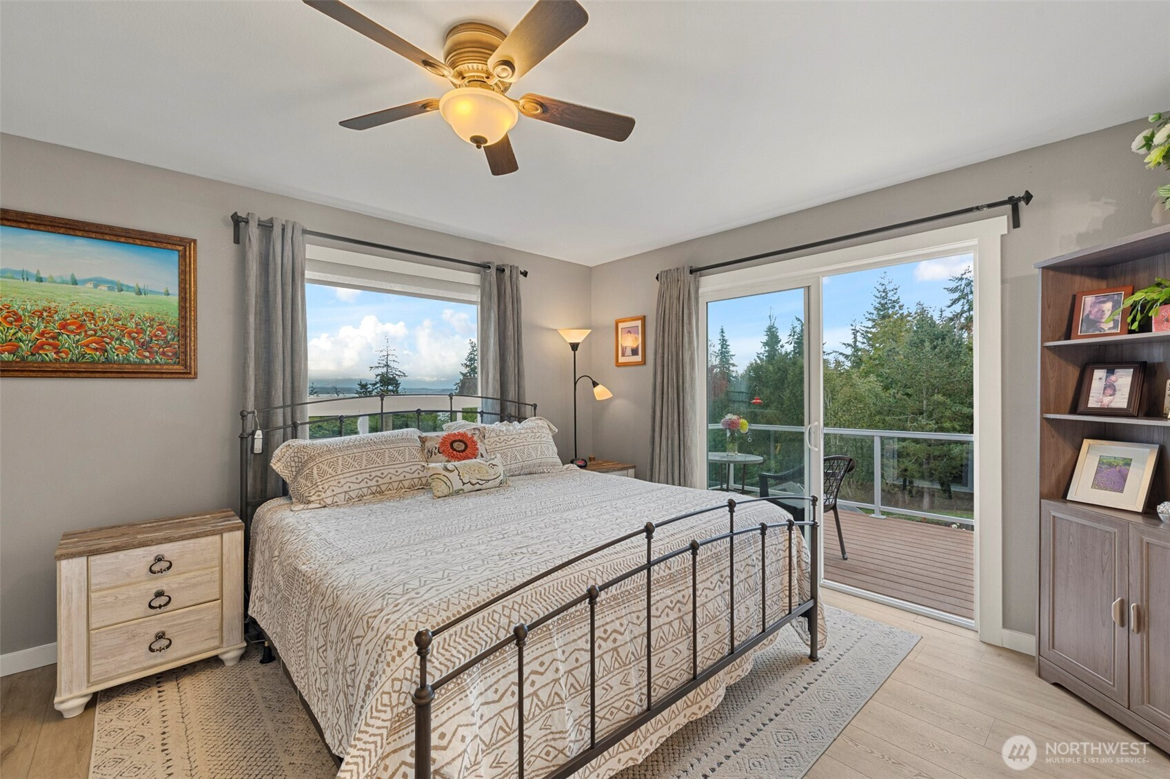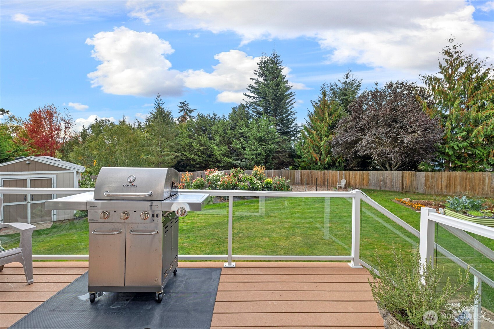 Welcome to this impeccably maintained 2,090 sqft 3 bdrm home located within Thunder Ridge community. The main level boasts beautiful brazilian cherry flooring. The kitchen is equipped with granite countertops, under cabinet lighting, opening into a bright family room with a gas fireplace. Primary bed offers a private deck that looks out to sound, Mount Baker, sunrises. Newer features include: LPV flooring upstairs,remodeled laundry,updated primary bath w/heated floors,paint,hot water tank,furnace,heat pump,water softener,landscaping,shed,greenhouse,wired for generator! Bonus room can be used for workout,office,craft room, etc. Gardener's Delight!Owner has planted 650 tulip bulbs that will be so beautiful in spring. Garden includes dahlias,raspberry,blueberry,rhubarb,grapes,raised beds and more. RV parking and close to beaches,golf,groceries,restaurants and more!