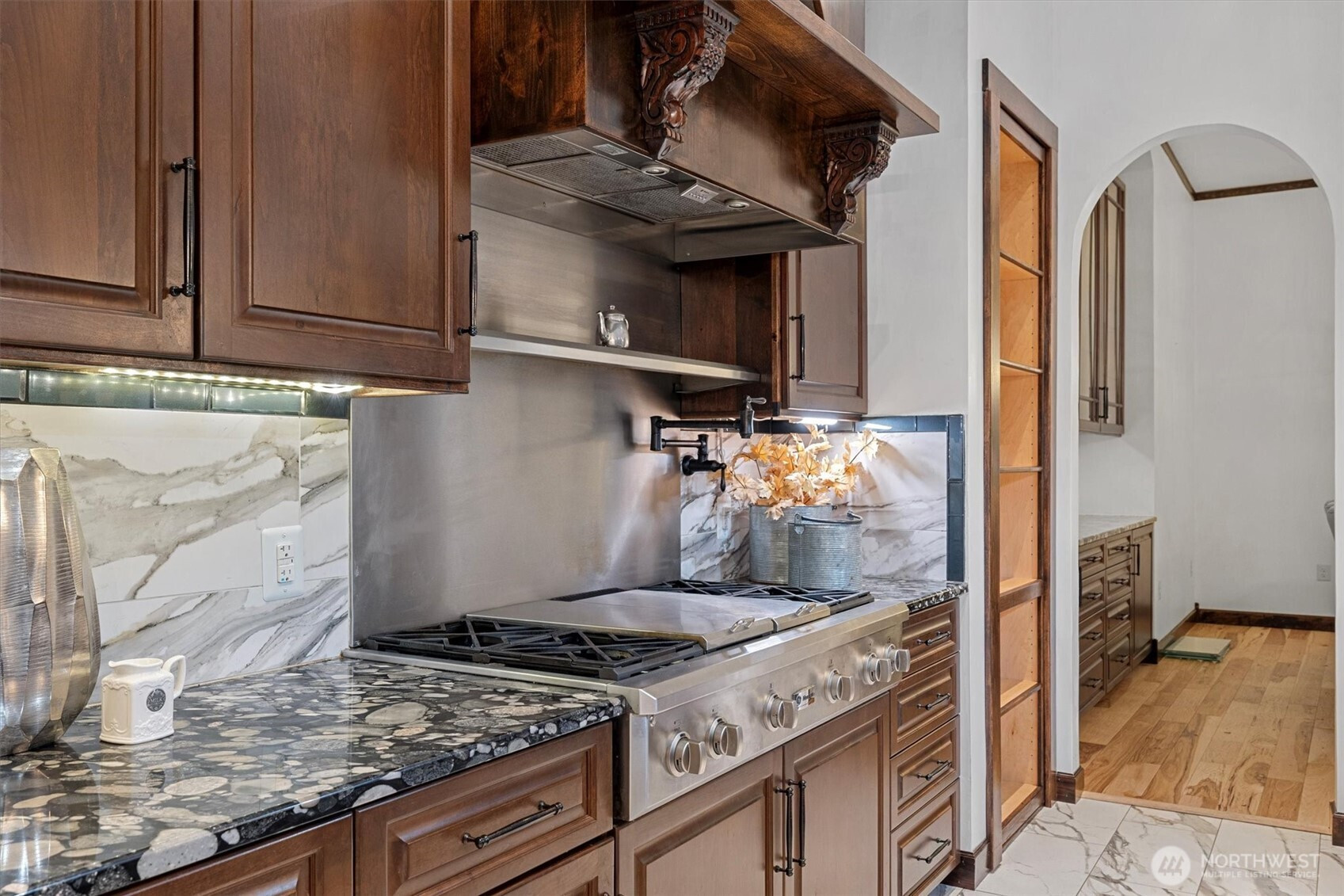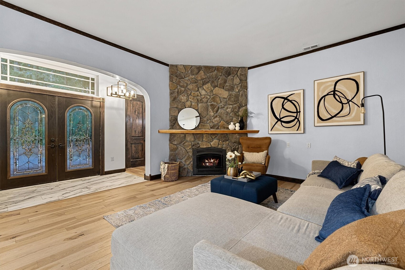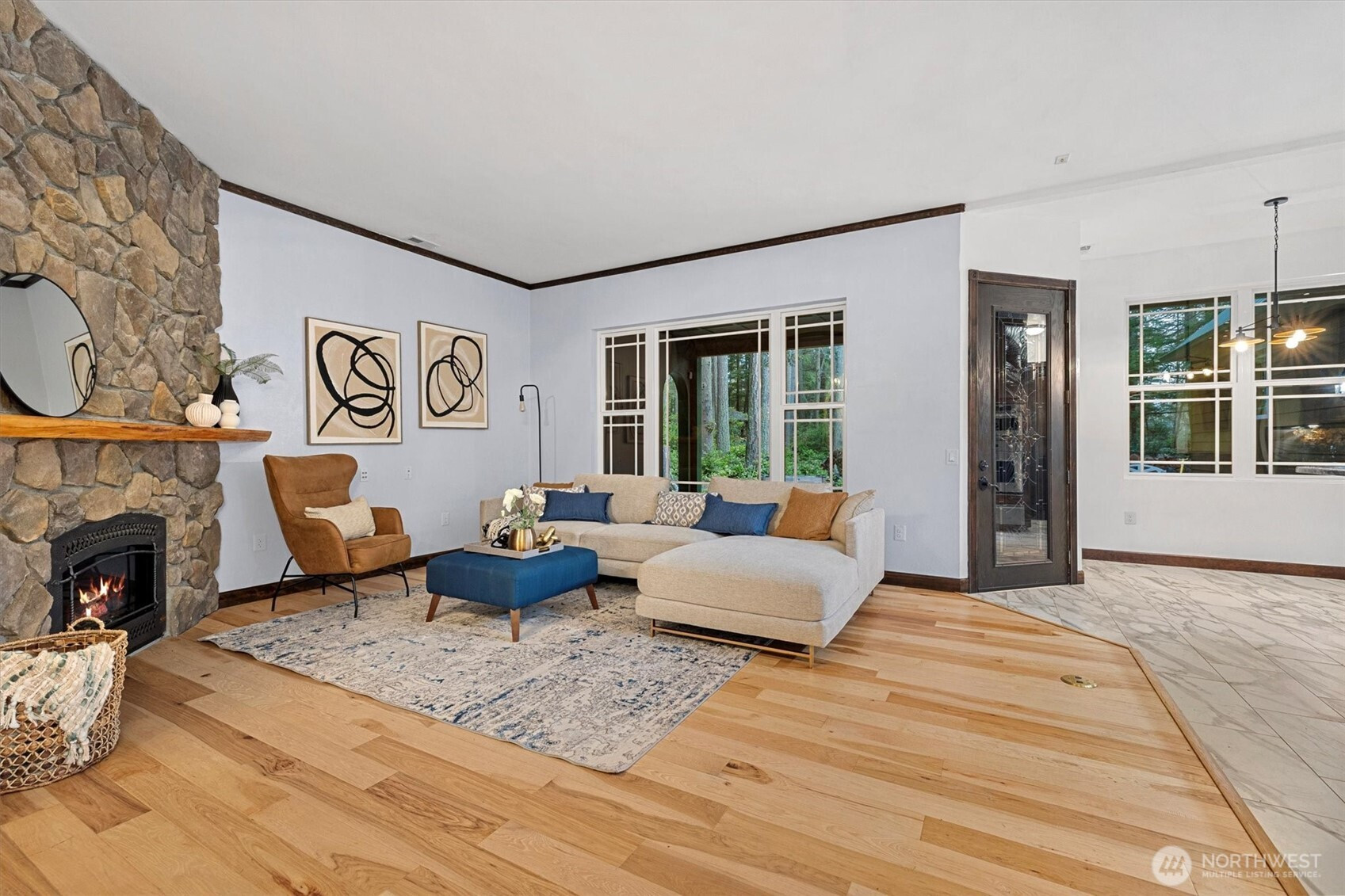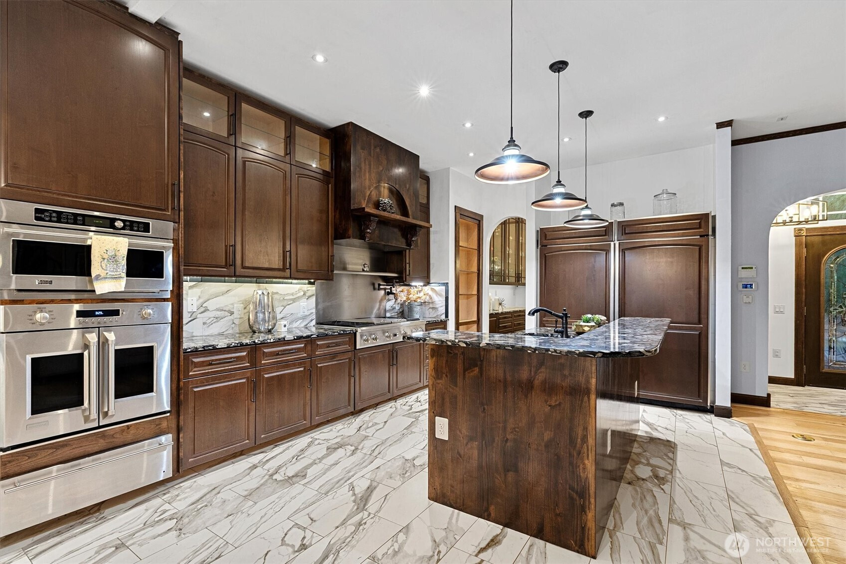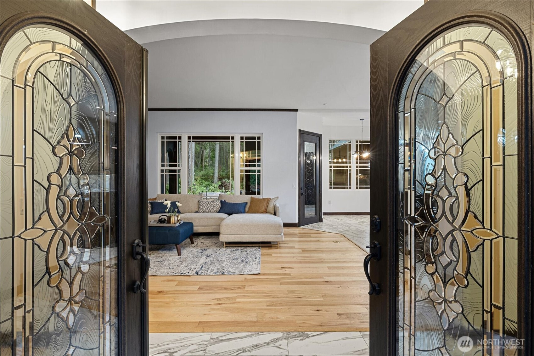 Tucked away in the evergreens of Whidbey, this 4-bed, 4-bath luxury estate is a secluded sanctuary of "private park" tranquility. Step onto the illuminated plank path into a home where technical excellence meets soulful retreat. The kitchen is a culinary centerpiece with state-of-the-art appliances, a professional gas cooktop, and hidden walk-in pantry. Relax in the primary suite with its jetted tub, impressive closet, all wrapped in insulated walls for total silence. This smart home features a workshop with 240v circuits and a reinforced RV pad. Outside, enjoy a gazebo, potting shed, and propane-plumbed deck. With a guest mini-suite and massive attic storage, this is a poetic masterpiece of privacy and effortless beauty.