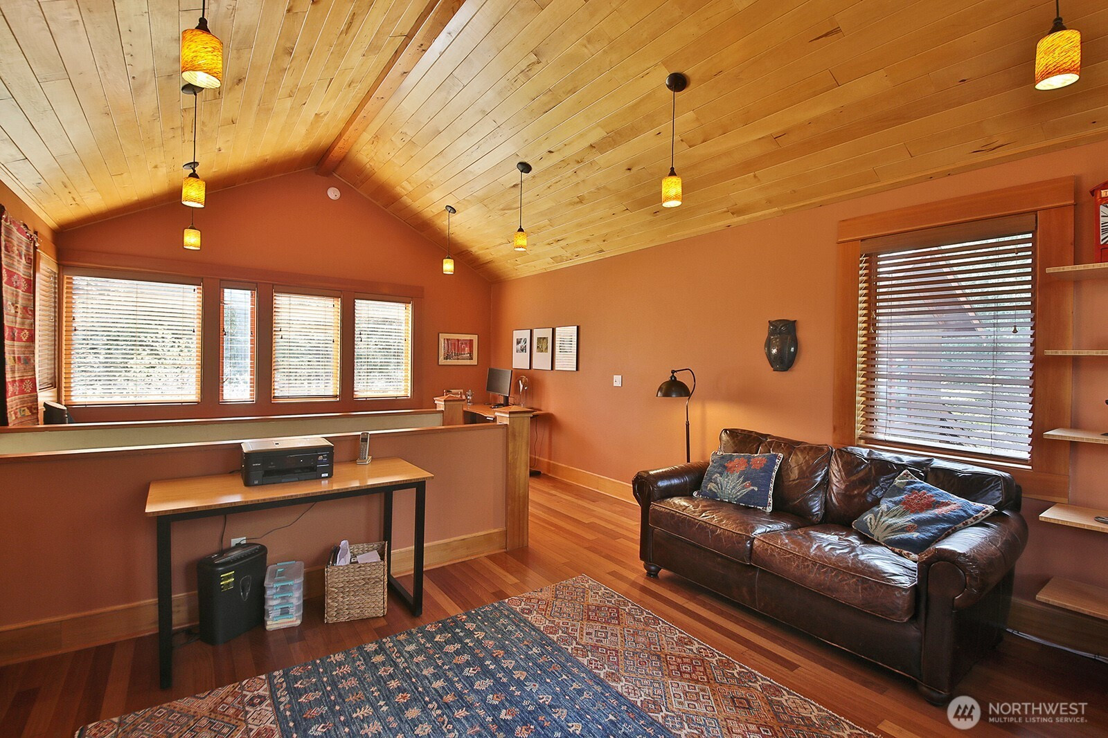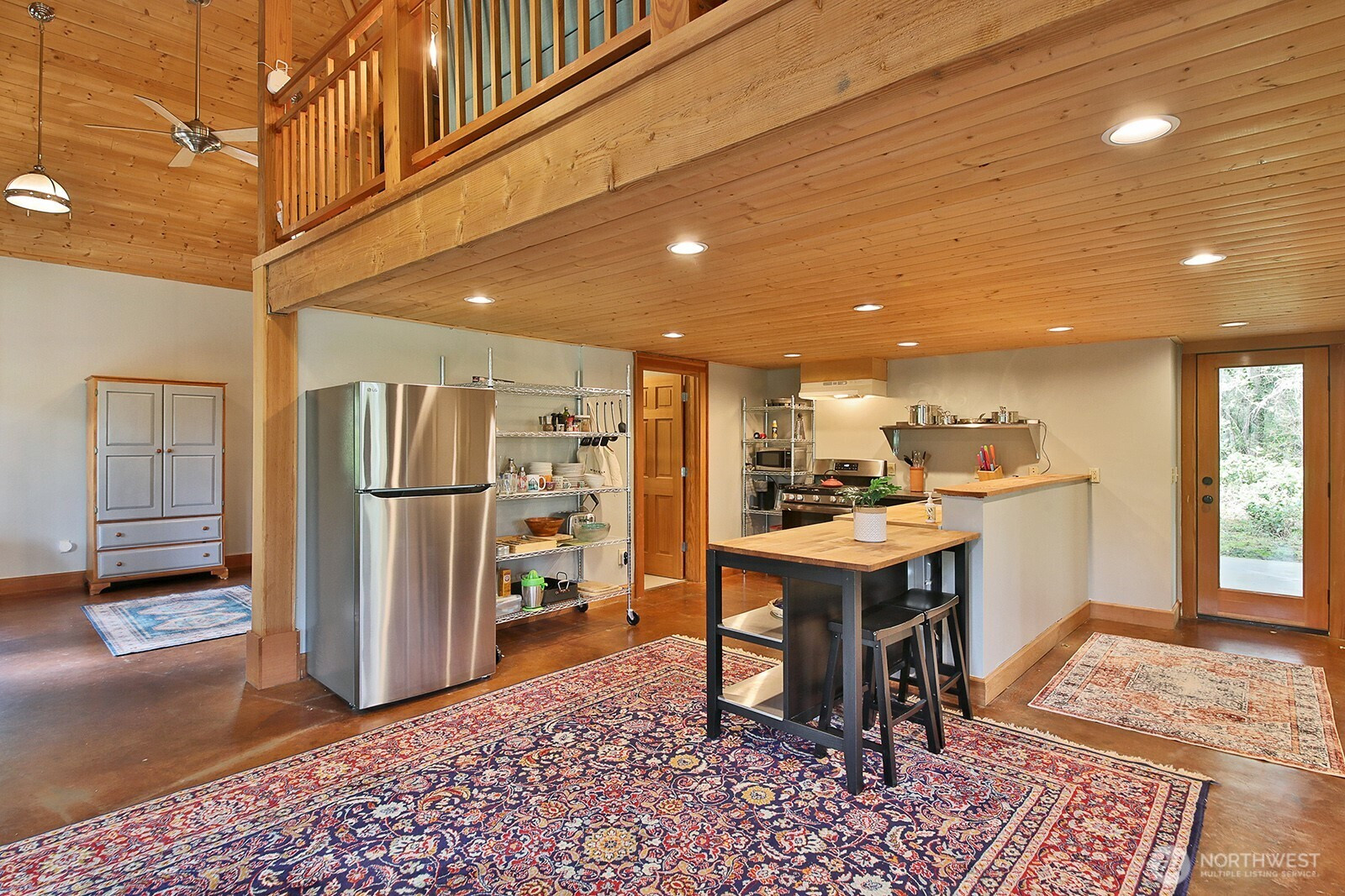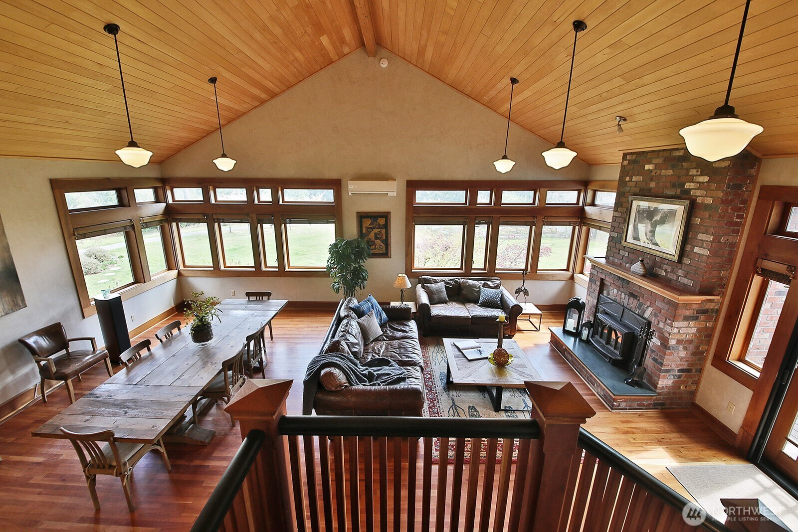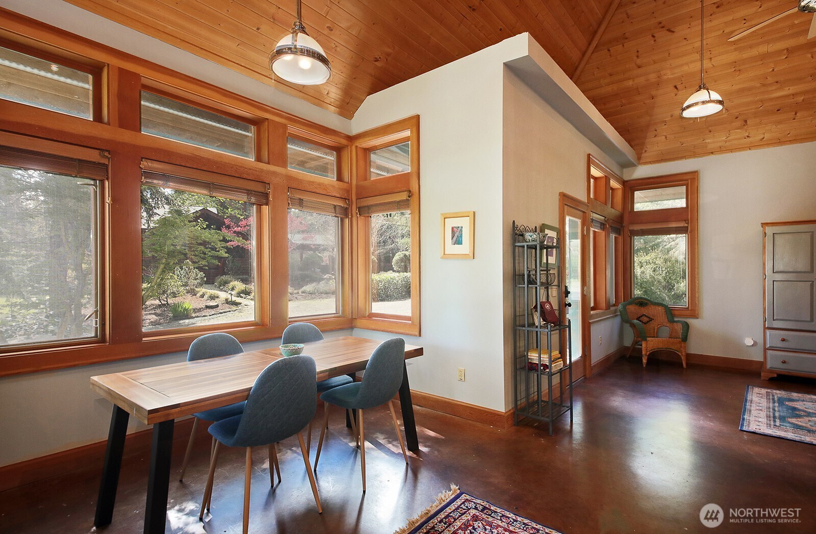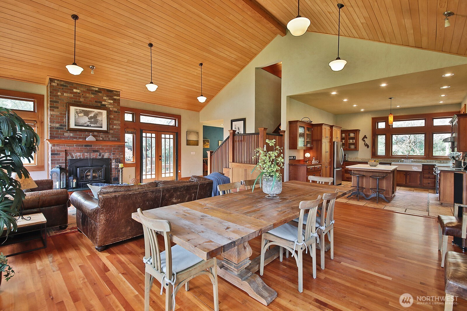 The Tanager House -- Set just shy of 10-acres and built by the nationally recognized artist, Kent Lovelace, the home blends artistry, craftsmanship, and intentional living. Inspired by Frank Lloyd Wright, it was created to dissolve boundaries between indoors and out. Local fir, island stone, and American clay walls root the home to the land while enhancing wellness and comfort. Hydronic radiant heat, mini-splits and smart home systems bring modern ease to natural materials. The landscape is a painter’s canvas; seasonally shifting in color and texture. Summer unfolds on the expansive deck overlooking a pond and evergreens; in winter, the trees and stonework create a serene backdrop. The quiet is profound, protected by the forest behind the home and framed by territorial garden, and pastoral views. Flexible multi-level living allows single level ease or expansion. Entertainment flows from deck and lawn to bar, pool table, and media area, with wellness supported by a sauna, gym, and a fenced quarter-acre garden with greenhouse and automated irrigation. The self-sufficient ADU adds an additional 1231 (+/-) sq.ft. and offers a full kitchen, new bathroom, and private outdoor space; ideal for guests or added revenue. A private, idyllic blend of town and country, The Tanager House is a living work of art for those who value nature inspired design and quiet beauty.