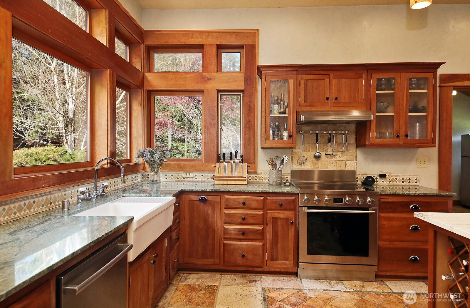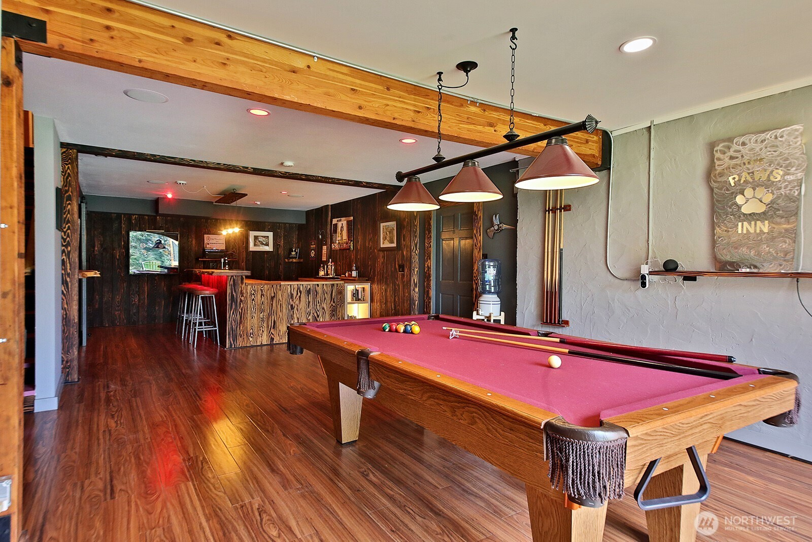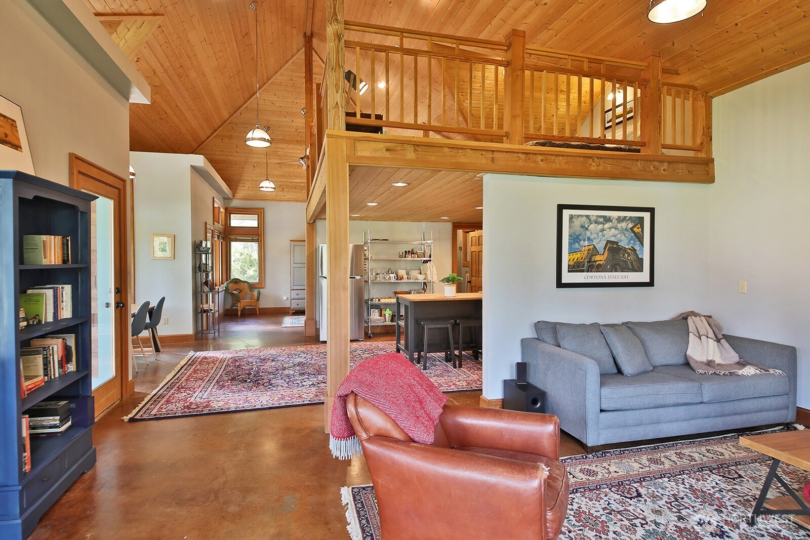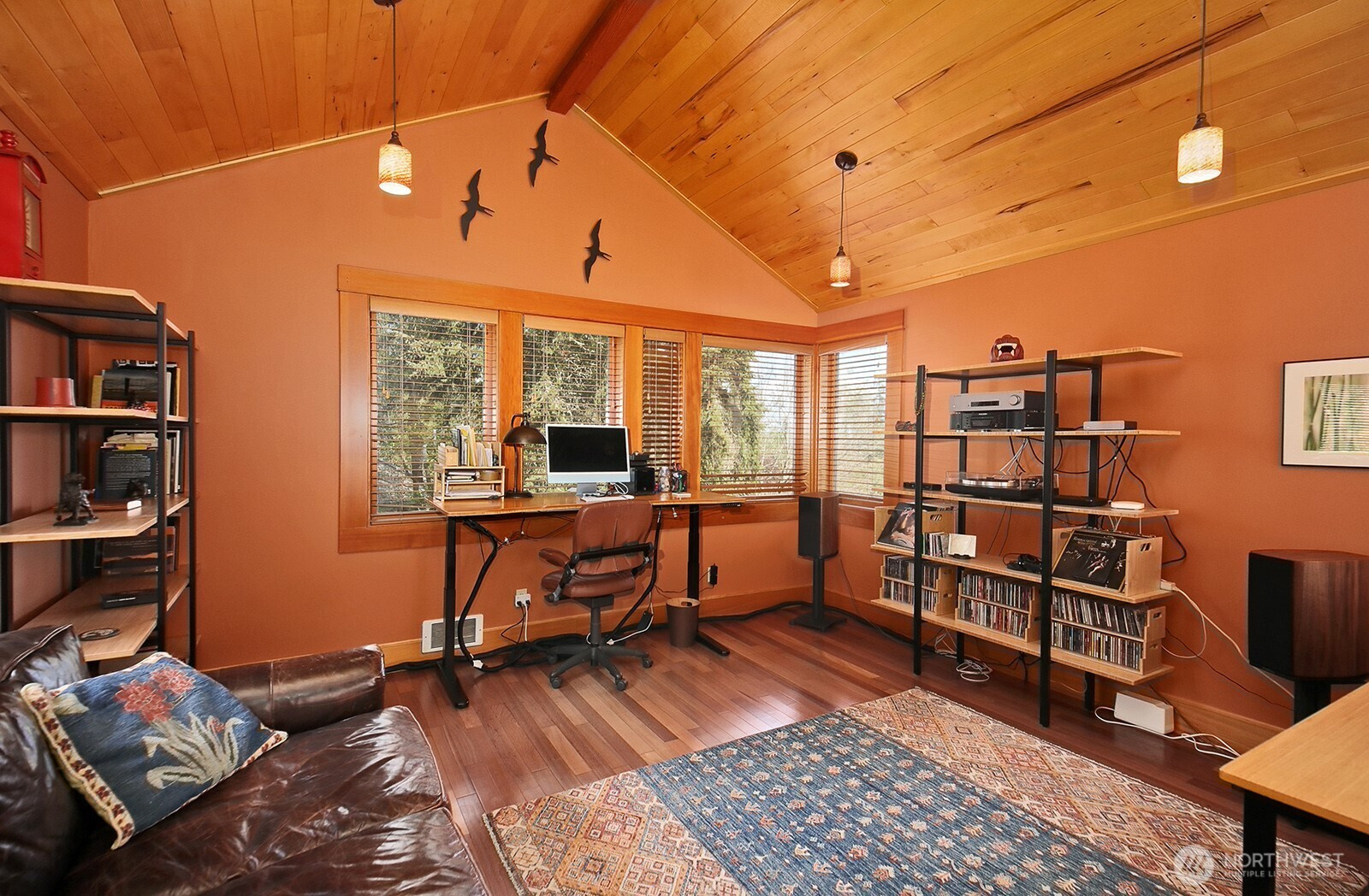 The Tanager House -- Set just shy of 10-acres and built by the nationally recognized artist, Kent Lovelace, the home blends artistry, craftsmanship, and intentional living. Inspired by Frank Lloyd Wright, it was created to dissolve boundaries between indoors and out. Local fir, island stone, and American clay walls root the home to the land while enhancing wellness and comfort. Hydronic radiant heat, mini-splits and smart home systems bring modern ease to natural materials. The landscape is a painter’s canvas; seasonally shifting in color and texture. Summer unfolds on the expansive deck overlooking a pond and evergreens; in winter, the trees and stonework create a serene backdrop. The quiet is profound, protected by the forest behind the home and framed by territorial garden, and pastoral views. Flexible multi-level living allows single level ease or expansion. Entertainment flows from deck and lawn to bar, pool table, and media area, with wellness supported by a sauna, gym, and a fenced quarter-acre garden with greenhouse and automated irrigation. The self-sufficient ADU adds an additional 1231 (+/-) sq.ft. and offers a full kitchen, new bathroom, and private outdoor space; ideal for guests or added revenue. A private, idyllic blend of town and country, The Tanager House is a living work of art for those who value nature inspired design and quiet beauty.