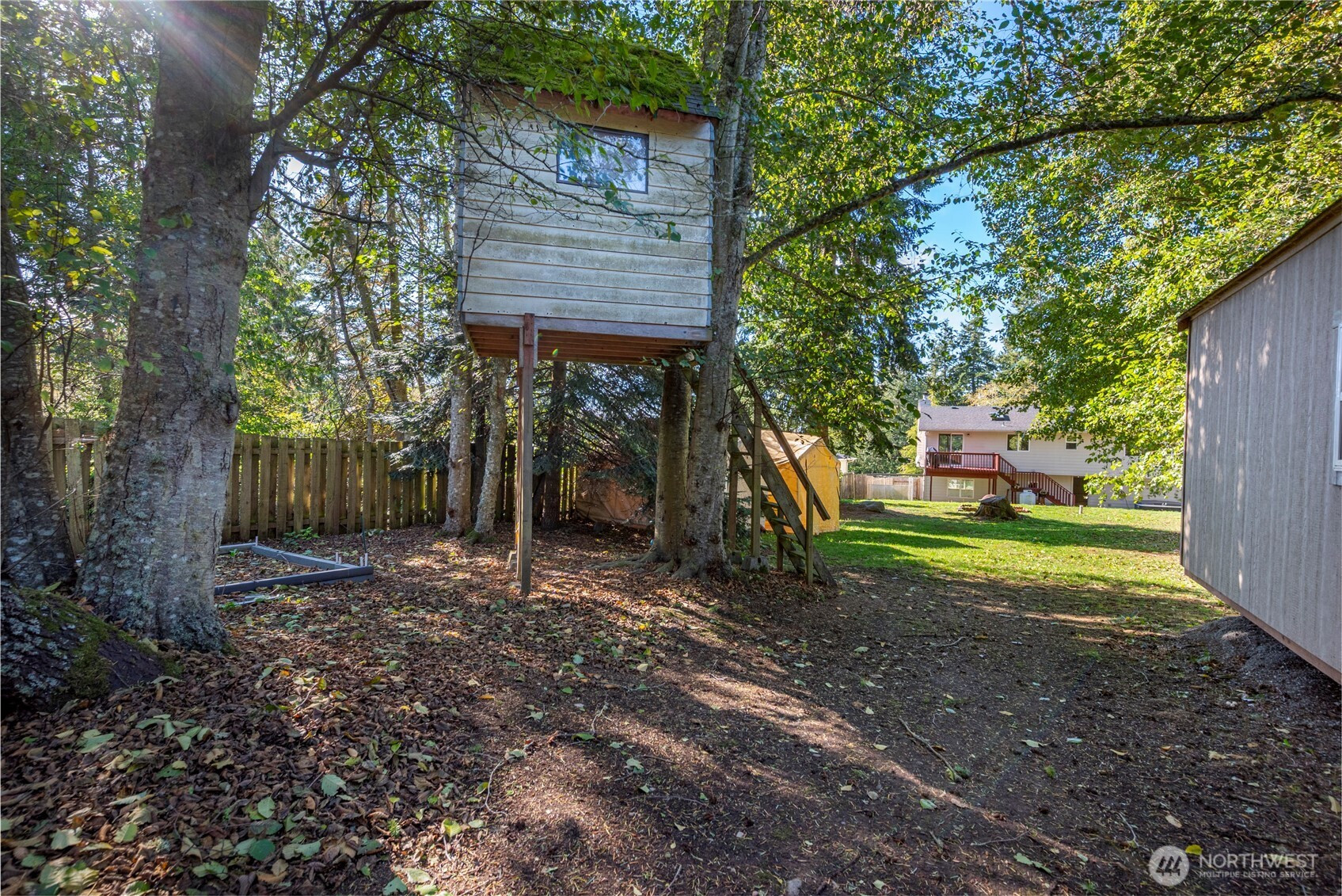 Well maintained split-entry home in beautiful Admirals Cove, featuring 3 spacious bedrooms and 3 bathrooms plus an extra office/room and living space downstairs. Enjoy an open, inviting layout w/ plenty of natural light thanks to skylights & large picturesque windows. The large back deck is perfect for entertaining & overlooks a double lot w/ mature trees and an access gate to back of double lot property for RV parking. Outdoor enthusiasts will love the two sizable wooden sheds—ideal for storage or hobbies—and a charming tree house for fun. This move-in-ready property offers comfort, space, & endless possibilities both inside & out! New stain resist carpet in master/bedroom/stairway! Roof new in 2018. Instant equity in this property!