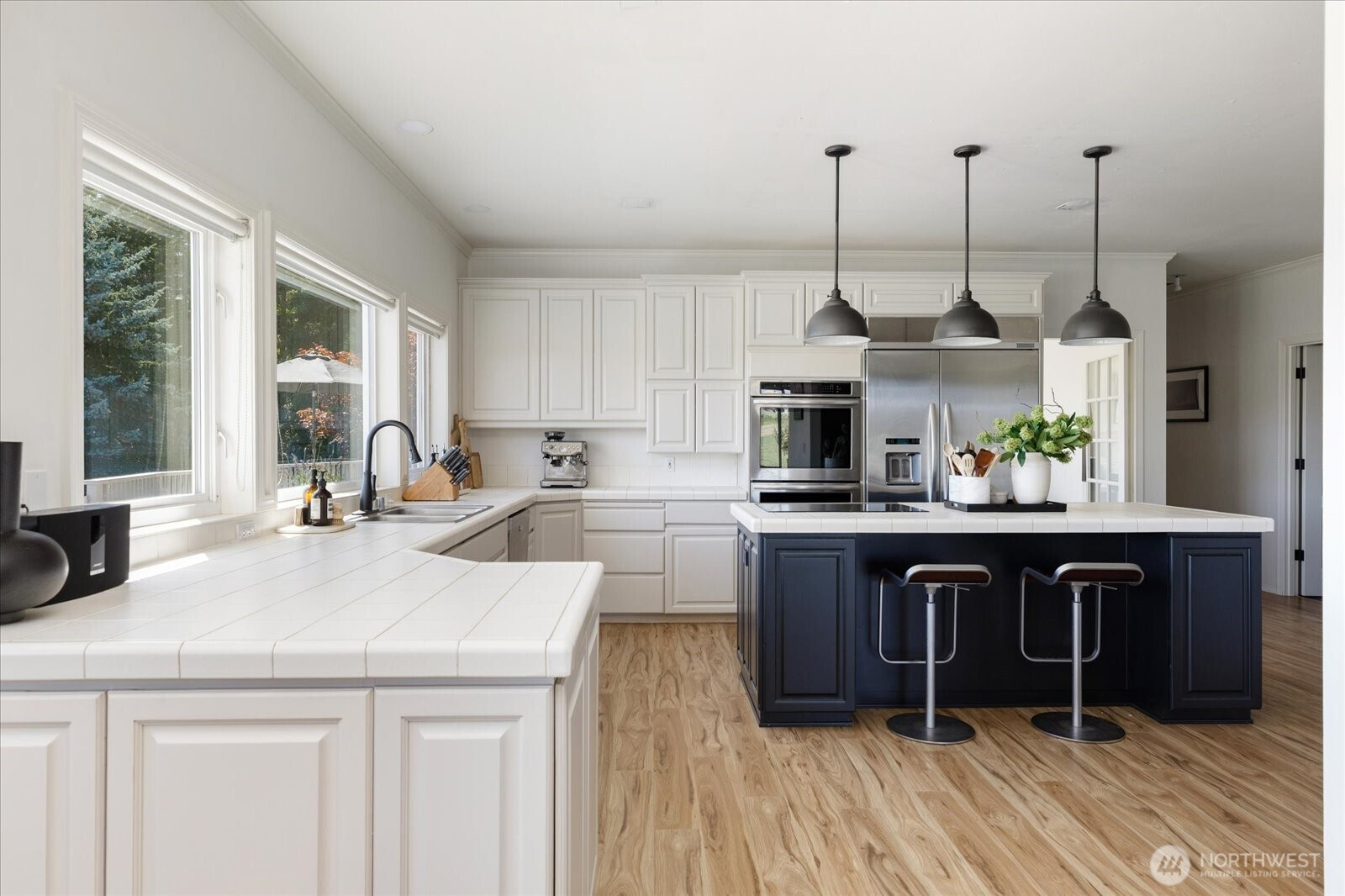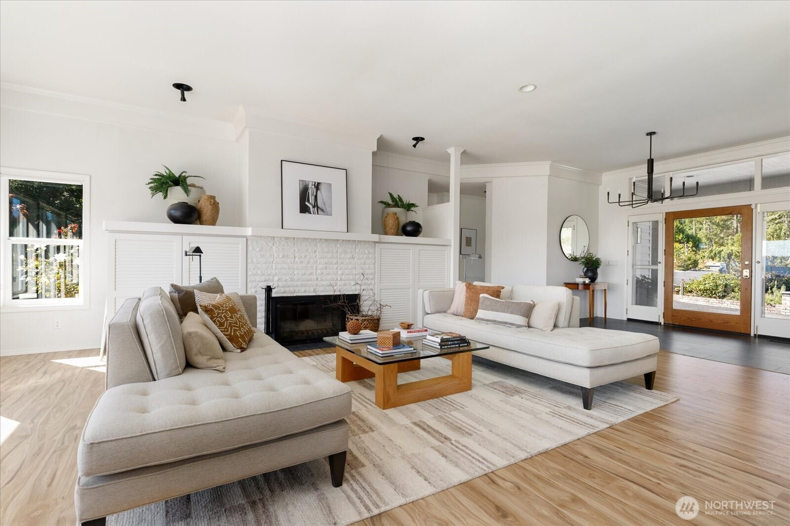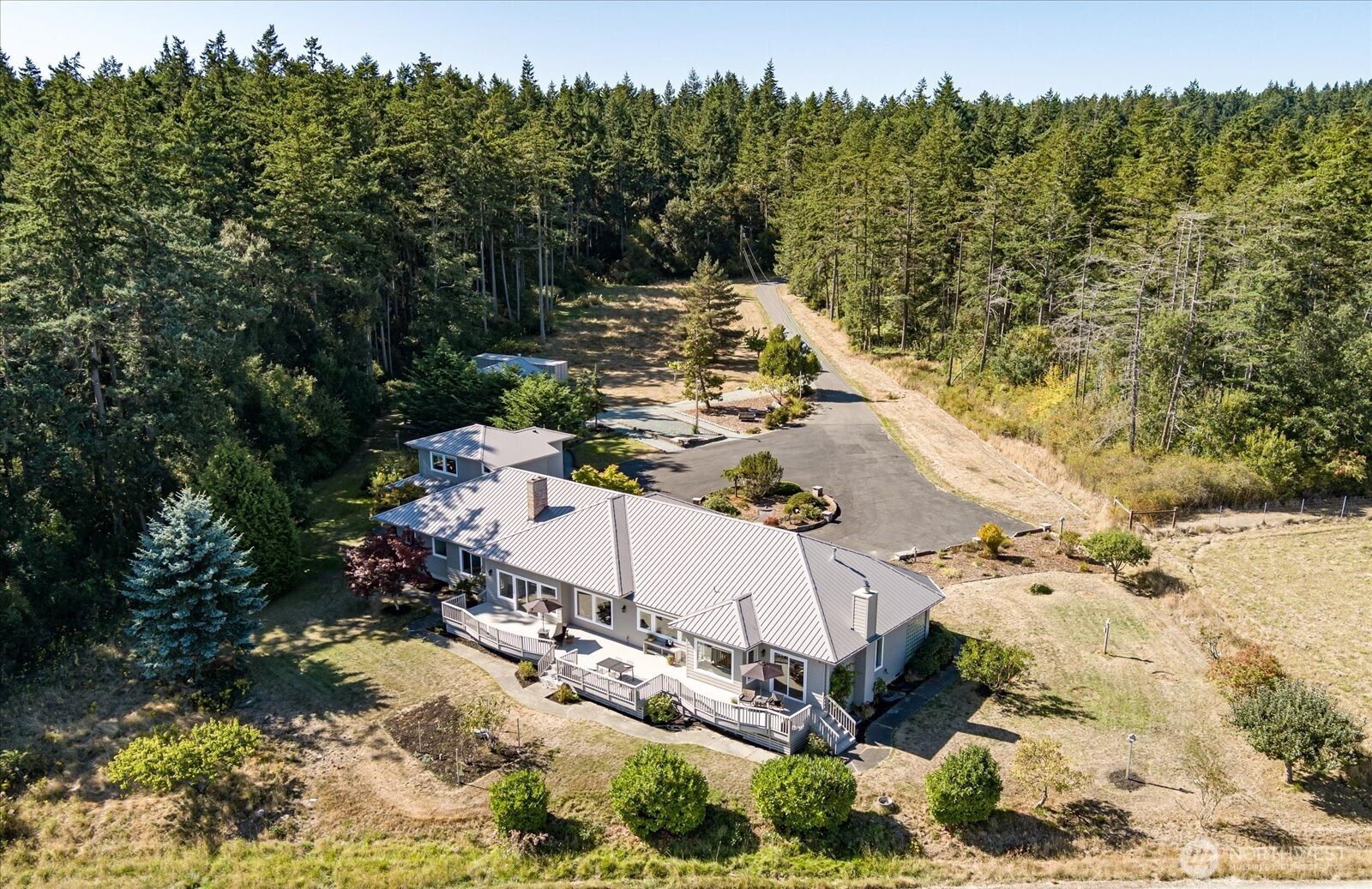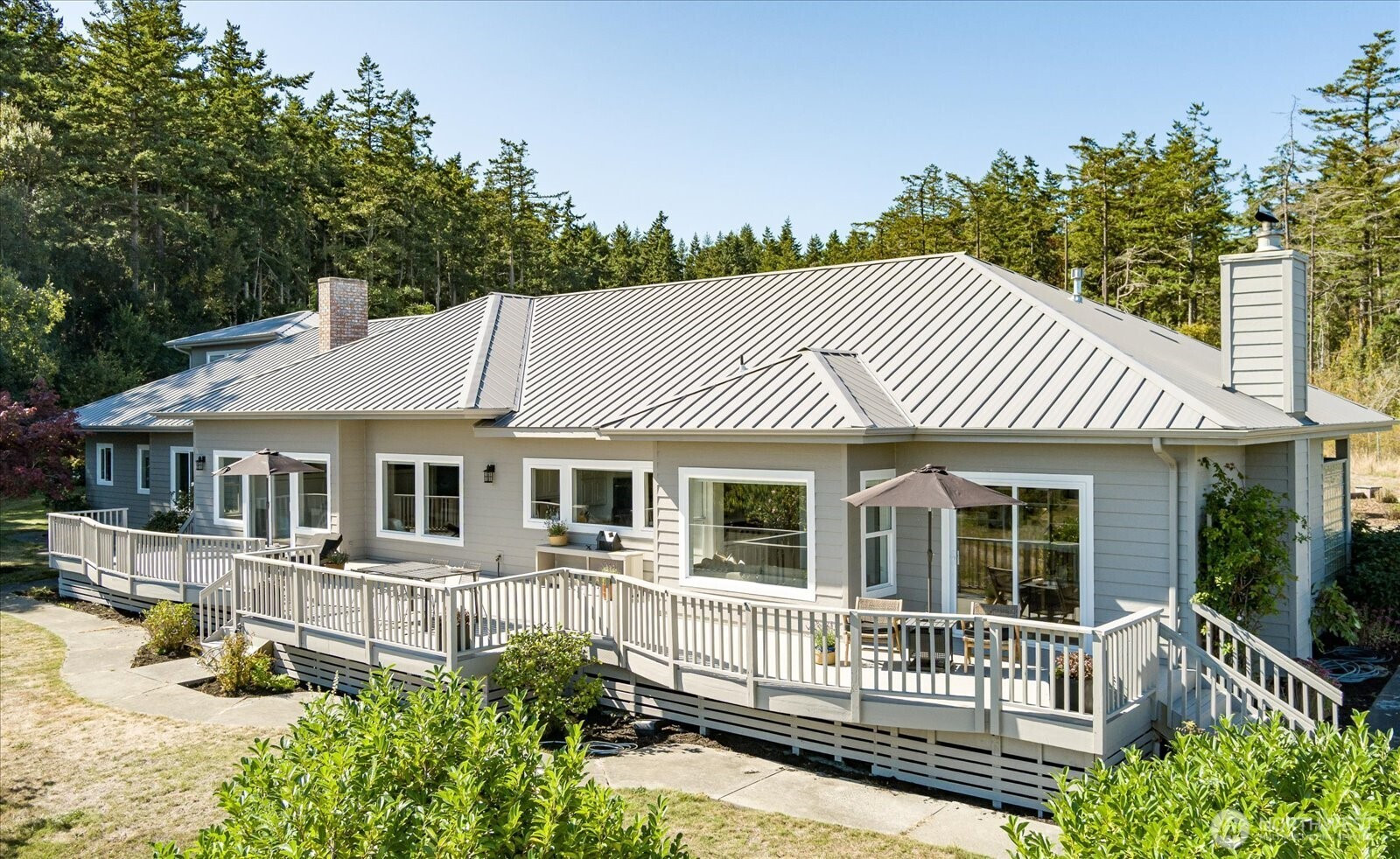 Stunning estate offers expansive water views of Penn Cove & breathtaking vistas of the Cascade Mountains. Nestled on 5+/- of serene, wooded acres. Luxurious main-floor living makes this a perfect home, featuring 3 suite style bedrooms & plus a gorgeous primary suite. Large living room boasts soaring ceilings, an inviting fireplace, & dining area that opens to a 70-foot deck—perfect for entertaining. Designer-inspired kitchen offers endless counter space, stainless steel appliances, center island, breakfast nook, & a butler’s pantry. The great room provides a cozy fireplace, wet bar, & walls of built-in bookcases. Additional highlights: 2 utility/hobby areas, dual furnace. 2-car garage, 3 bay shop, gardening room. RV parking w water & power.