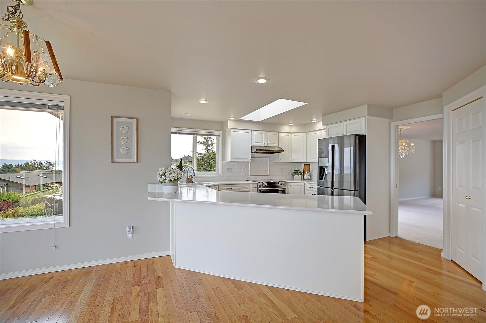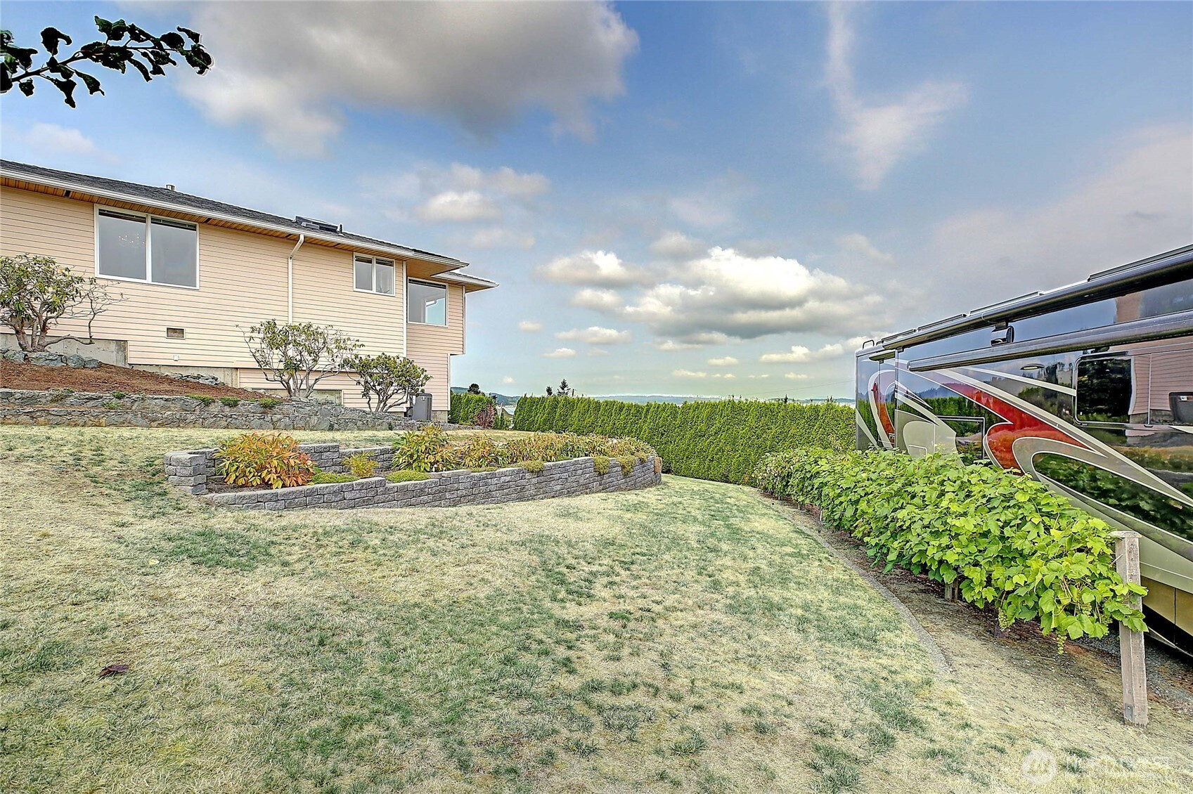 Wake up to breathtaking mountain and water views in this inviting 3-bedroom home. The spacious primary suite features a relaxing 5-piece bath, while the upgraded kitchen with stainless steel appliances makes everyday living a joy. Step onto the back deck to sip your morning coffee or gather with friends as the sun sets. The yard is filled with fruit trees and grape vines, plus RV parking for all your adventures. A roughed-in basement is ready for your ideas, and modern comforts include a heat pump for year-round efficiency and a generator for peace of mind. As part of the country club, enjoy access to three private beaches—perfect for swimming, strolling, or simply unwinding.