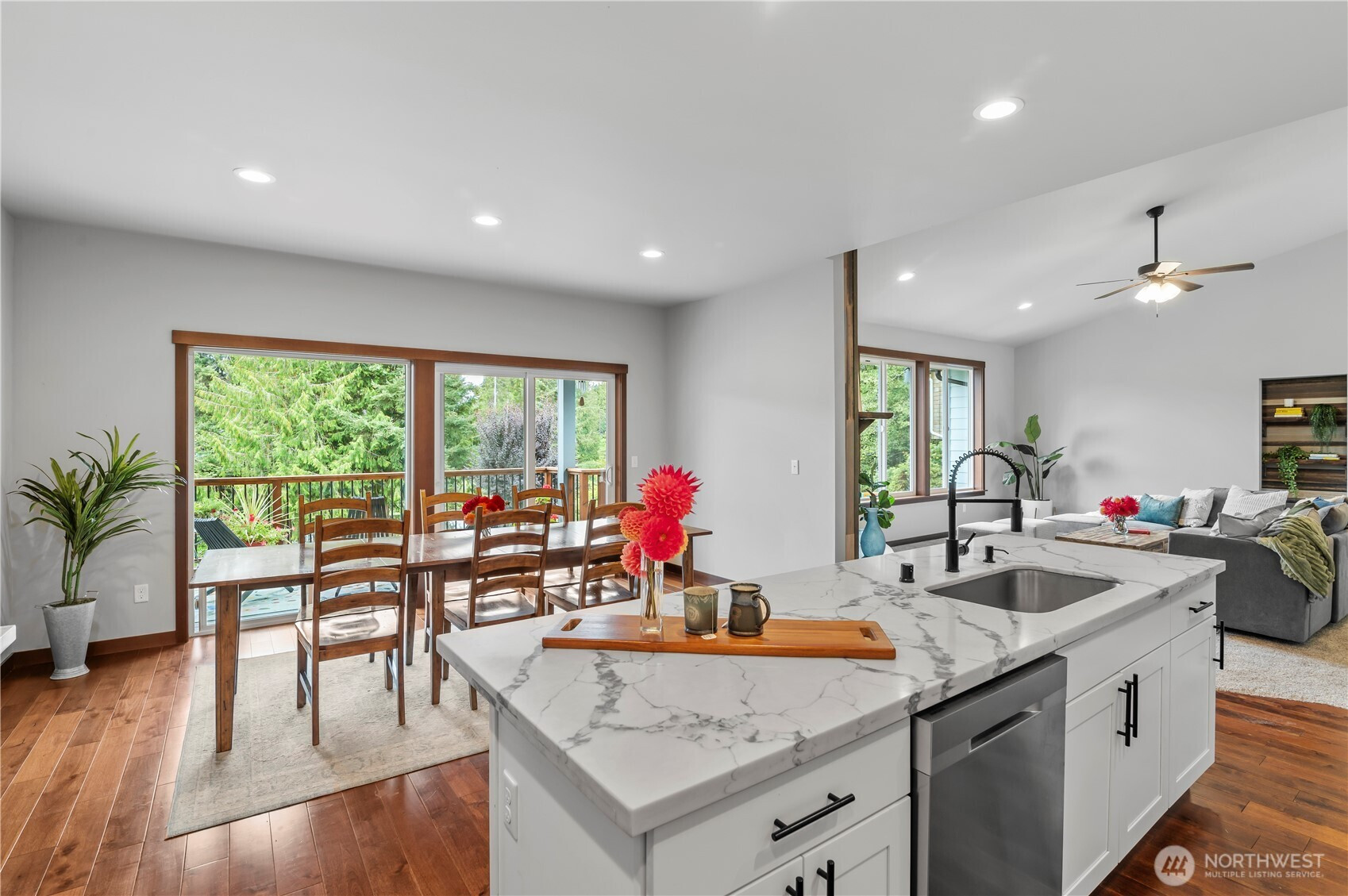 Experience waterfront living redefined in this lakefront rambler—a modern, light-filled home built in 2020, combining style, serenity, and private lake access. Step through expansive covered deck to panoramic water views; stroll through your own garden path to the private dock (boat included). Inside, soaring ceilings, quartz counters, and an open layout create seamless indoor-outdoor flow then cozy up by the fireplace overlooking lake reflections. With low HOA, efficient systems, and a home office, this home offers a rare turnkey lake retreat that lives like a 3 bedroom. Whether paddling at dawn or entertaining at sunset, this is waterfront living! Call for your private tour to experience the lifestyle you’re looking for.