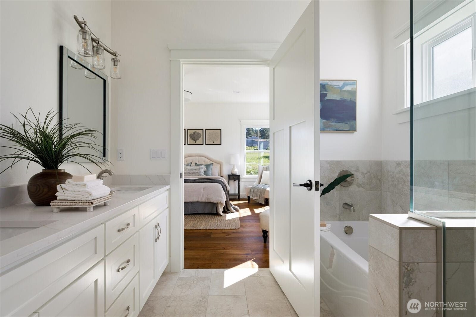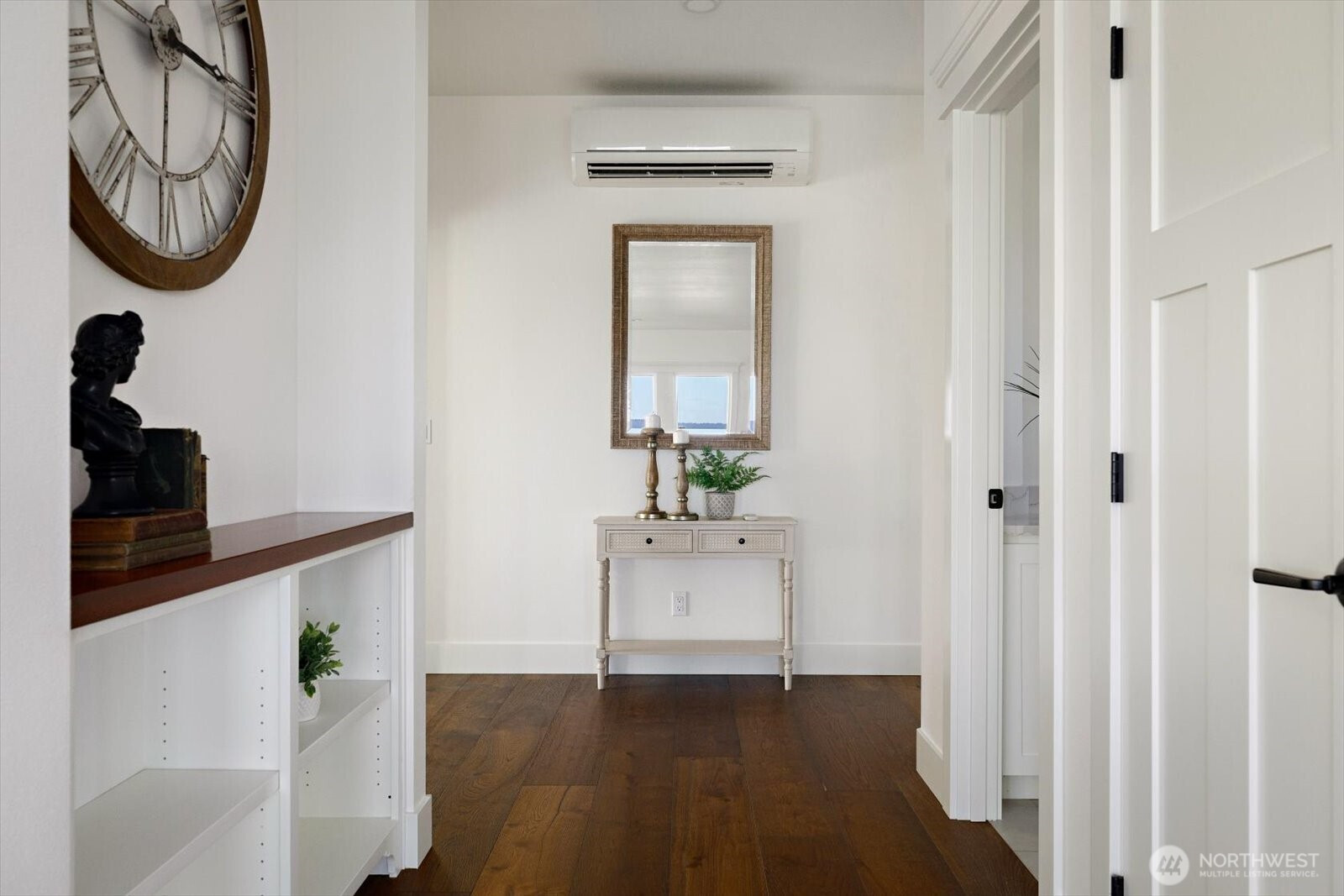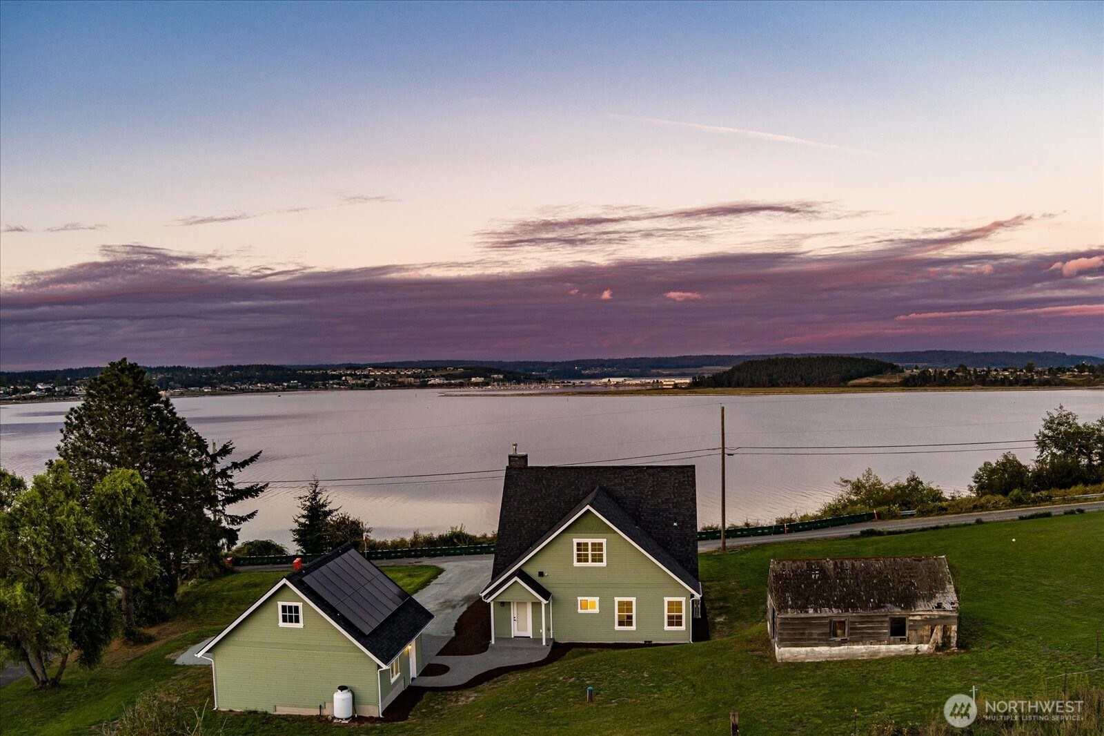 This custom-built, coastal home exudes warmth and timeless appeal. Thoughtfully designed with attention to detail, and perfectly situated just across the street from the water, it boasts great views of the Oak Harbor Marina and the Cascade Mountains with Mt. Baker appearing to say hello on clear days. Step inside to find delightful surprises like a cleverly hidden pantry, roll-out bookshelves with concealed storage, a beautifully handcrafted staircase, and hand-milled trim—all showcasing exceptional craftsmanship and character. Every corner of this home has been designed to feel special. This is not a builder grade home!! The floor-plan is tailored for main floor living w/ a spacious primary suite; upstairs three versatile rooms accommodate guests, a home office, and media or hobby spaces. Modern conveniences abound including a brand-new septic system, solar power to keep utility costs low, and a large garage equipped with EV charging. Enjoy the spectacular water views with a morning coffee on the front deck or while relaxing in the living and dining rooms looking over the county-maintained, dead end road where the community's dog walkers and bikers pass by. This property is filled with the kind of quality that lasts for years to come.
