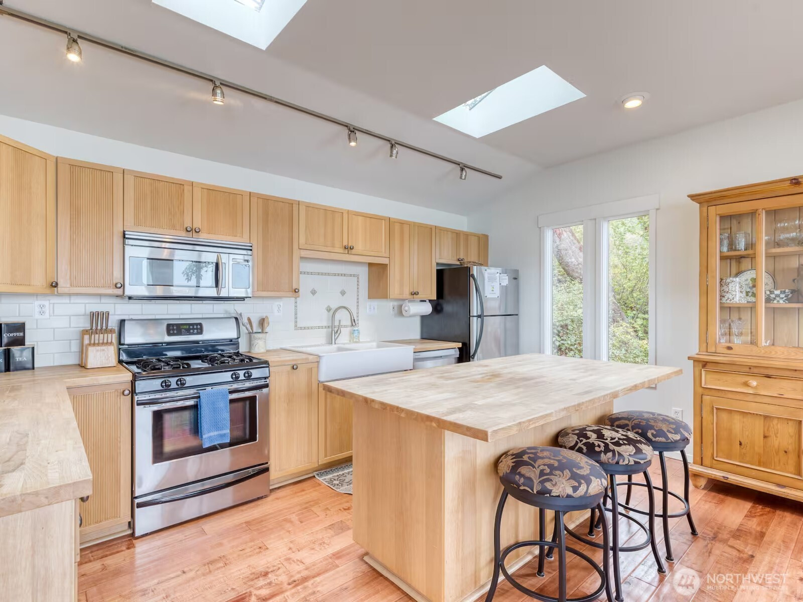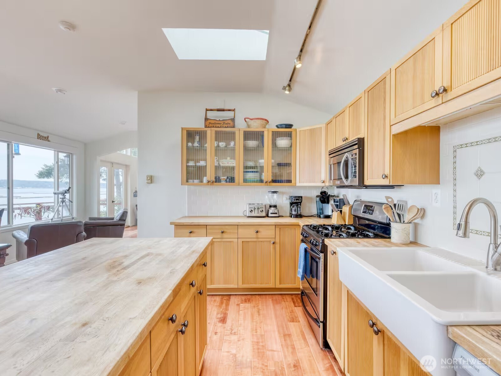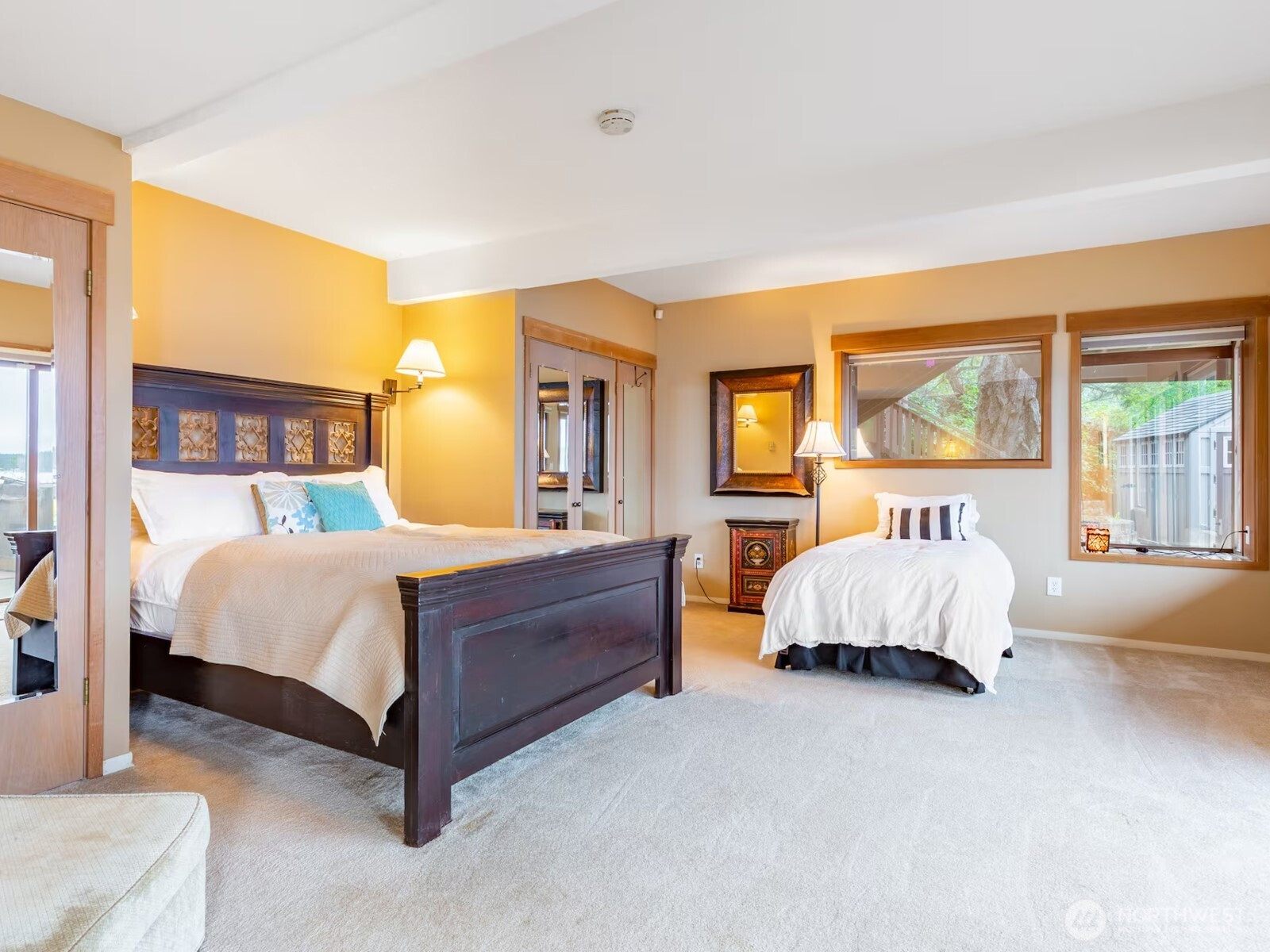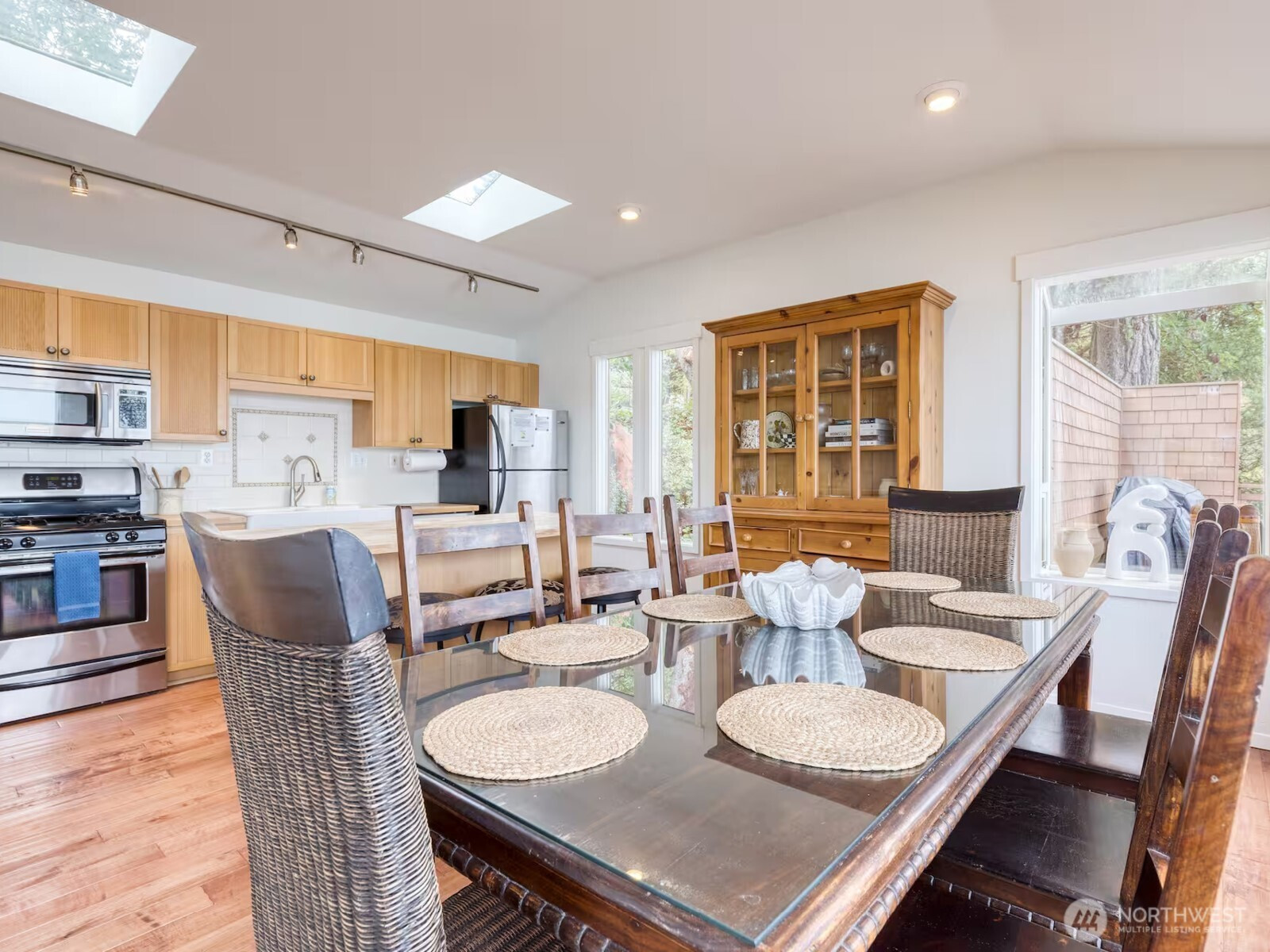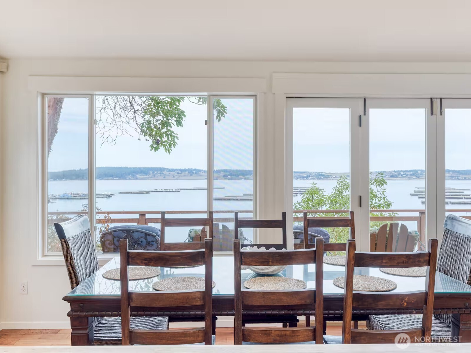 Perched on a serene, private stretch of Whidbey Island shoreline, this captivating waterfront retreat offers the perfect blend of Northwest charm, breathtaking views, and everyday comfort. Set on an expansive 27,007± SF sloping, wooded lot with an impressive 335 feet of waterfront and protective bulkhead, this property delivers a rare sense of seclusion while remaining conveniently accessible. The 1,818± SF home is thoughtfully designed to maximize its stunning surroundings. Inside, the vaulted, beamed great room welcomes you with a warm gas fireplace and walls of windows that frame sweeping views of the water, sunsets, mountains, and abundant wildlife. Whether you’re entertaining or enjoying a quiet evening, the ever-changing scenery becomes the centerpiece of daily living. The stylish kitchen features stainless steel appliances, an island with bar seating, and seamless flow into the spacious dining area—both perfectly positioned to take in the view. A charming sleeping loft offers additional guest space or a cozy retreat, also sharing in the home’s incredible vantage point. Wake up to water views in the generous primary suite, complete with its own bath and private deck access—ideal for morning coffee or evening unwinding. A guest bedroom provides comfortable accommodations for visitors. Outdoor living is equally inviting, with expansive view decks on both levels and a lower deck featuring a hot tub for soaking under the stars. The bulkhead shoreline offers easy access