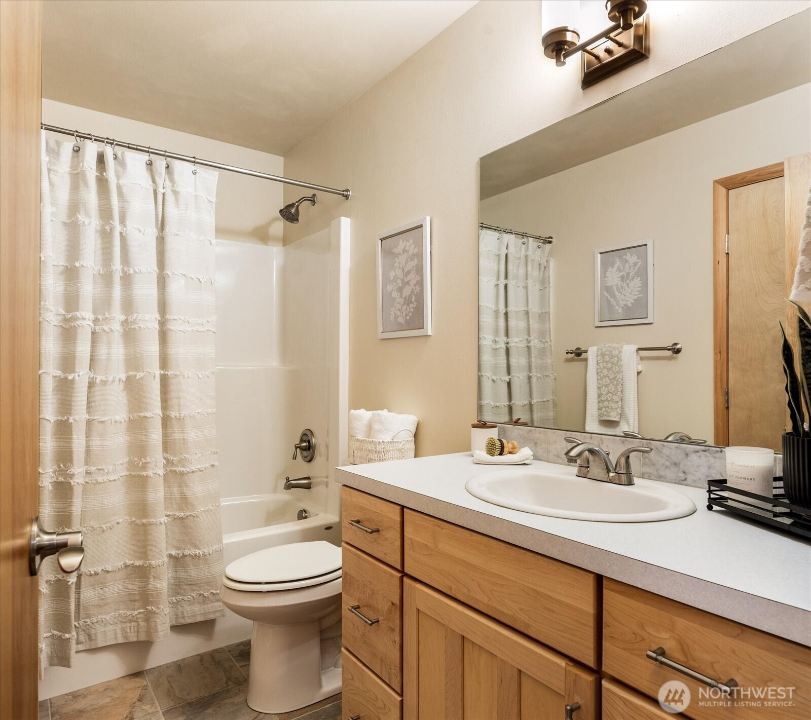 Welcome to Whispering Firs in Freeland. This beautifully maintained Craftsman offers the ease of main-level living, making it ideal for first-time buyers, downsizers, or those seeking the perfect work-from-home retreat. Hardwood floors run throughout the main living spaces, where an open kitchen flows seamlessly into a cozy living room anchored by a propane fireplace—perfect for cooler island evenings. The primary suite features a spacious walk-in closet and an en-suite bath with a large shower, while two additional bedrooms are also conveniently located on the main level. Upstairs, a generous bonus room provides flexible space for an office, playroom, or media room. Outside, enjoy a large backyard with thoughtfully designed landscaping. Recent upgrades since 2022 include new carpet in the bonus room, a Generac generator, heat pump, and updated plumbing and lighting fixtures. Making this home move-in ready and a wonderful place to call Whidbey home.