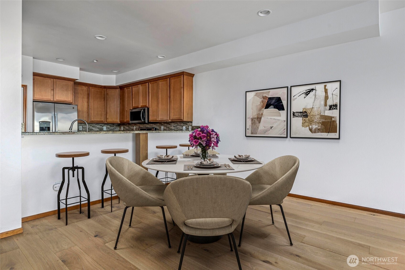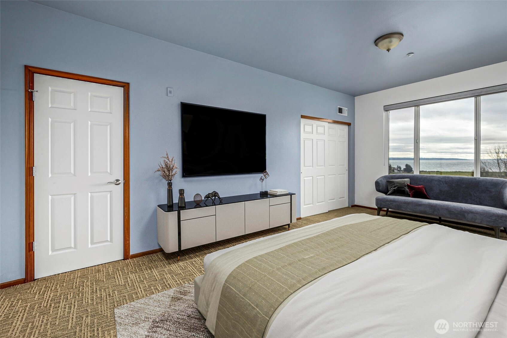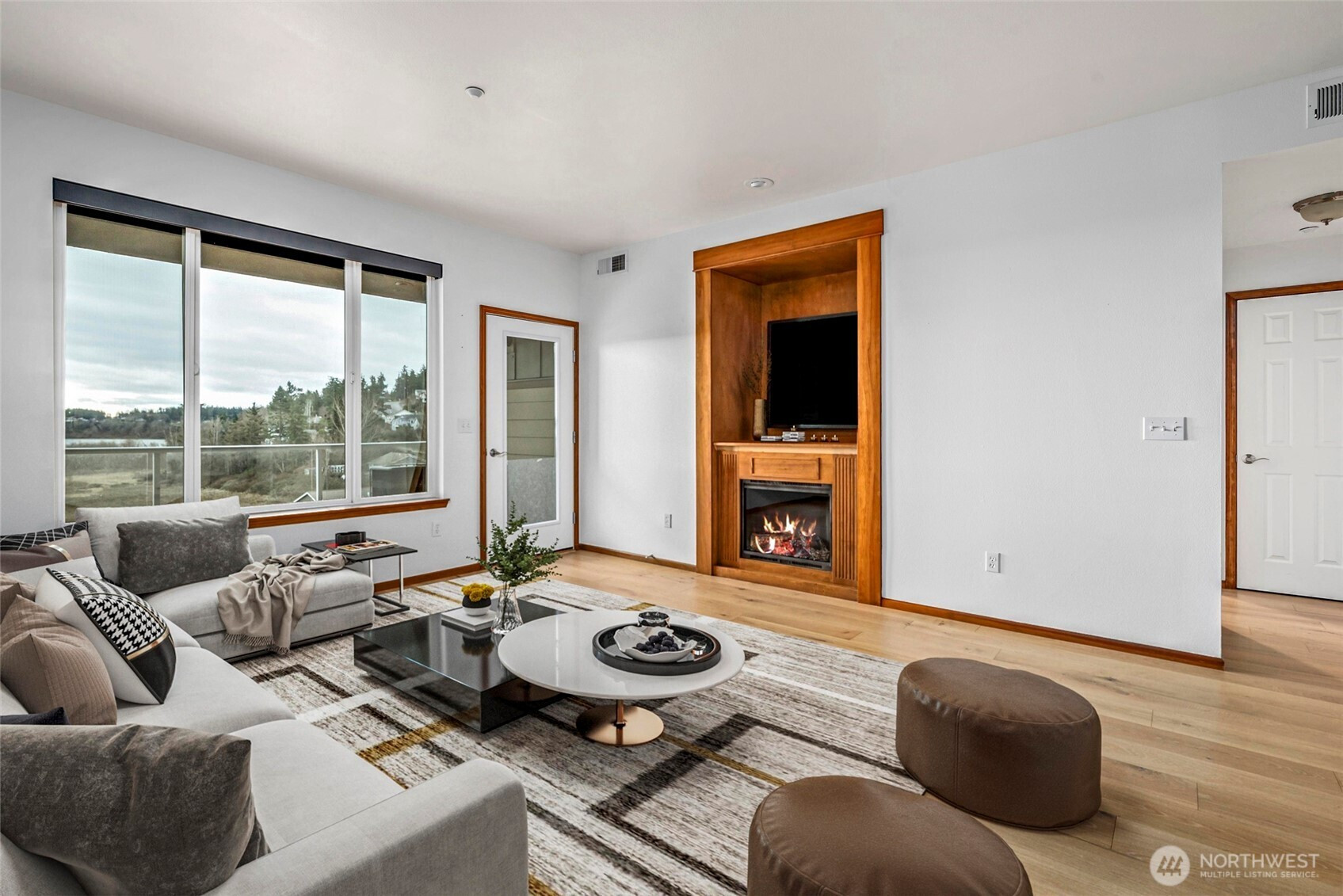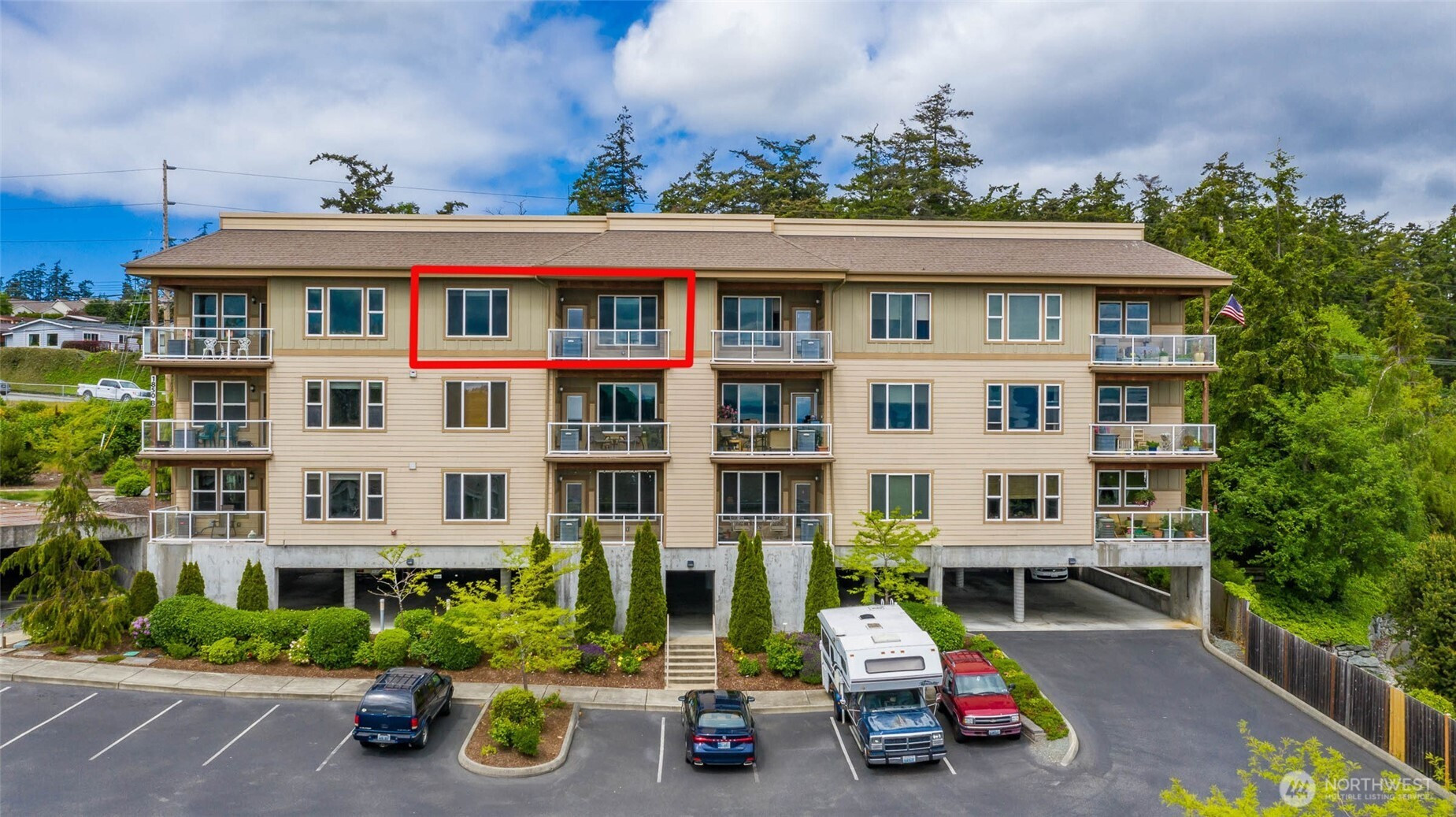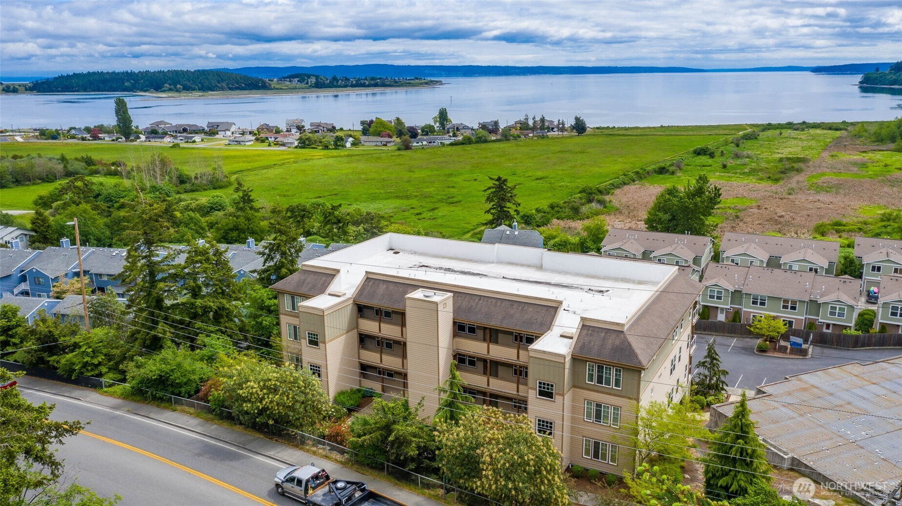 Welcome to Scenic View, your new Whidbey Island home! Enjoy the wonderful view from this top floor unit in one of Oak Harbors premier condominium complexes. Elevator access transports you from your covered parking spot to your front door. The thoughtful floor plan includes a roomy office space with french doors, large open view kitchen, main living area, guest bedroom, full guest bath, huge laundry room, and a large primary suite with updated 3/4 bath. The kitchen is perfect for entertaining with lots of cabinet space, stainless appliances, and beautiful granite counters. Plenty of room for bar stools here! Lounge in style in the living room with a view window and door leading out to the covered balcony. Check out those views! Perfect for morning coffee, mid-day snacks or evening cocktails. Need extra storage? A storage room on the balcony plus a private storage space in the garage has you covered. Take a stroll on the nearby Windjammer Beach Park trail and head to town for shopping, dining and of course all the beach activities. Move in ready and waiting for you to make it your own. Relax and enjoy!