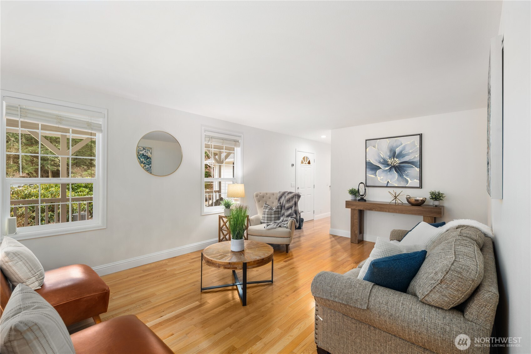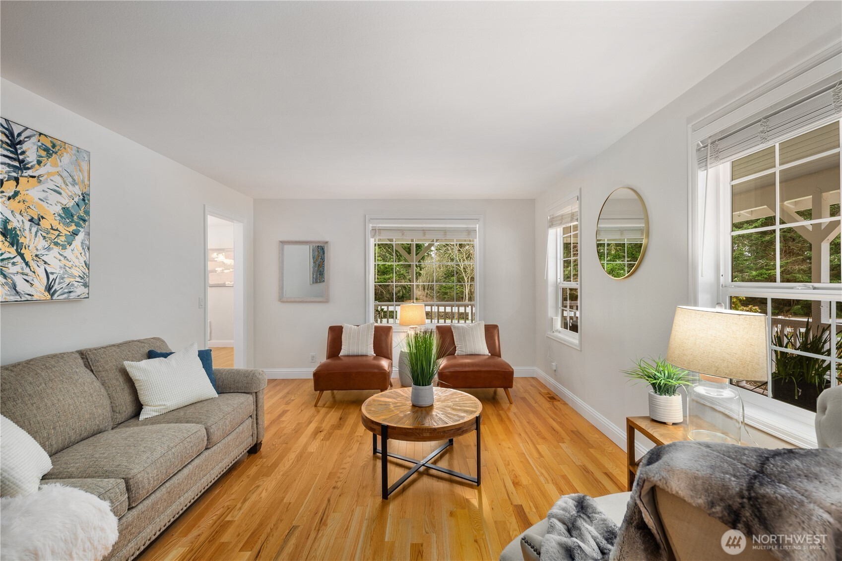 Privately set on just over 7 acres at the end of a quiet dead end road, this farmhouse inspired property offers thepeaceful feeling of a secluded country retreat. A classic wrap around porch overlooks a sunlit meadow framed bymature trees, creating a beautiful setting to enjoy quiet mornings or relaxed evenings watching the sunset.Designedwith comfortable farmhouse living in mind, the home features warm, inviting spaces including a formal living room and aspacious family room centered around a cozy fireplace. The large country kitchen offers abundant cabinetry andgenerous counter space and opens to a bright dining area with French doors leading to the back patio, perfect foreveryday living and entertaining.Recent updates include new carpet, luxury vinyl plank flooring, and fresh interior paint,giving the home a refreshed feel. Upstairs, all bedrooms are thoughtfully positioned, including a spacious primary suitewith ensuite bath and walk in closet. A large laundry room with dog wash adds convenience for countryliving.Approximately one acre of fully fenced space, ideal for horses, goats, chickens, or simply having room to roam andplay. A 40x40 deer fence protected garden with raised beds provides the perfect setup for growing your own produce,and a spacious four car garage offers plenty of room for vehicles , tools, and recreational gear.Enjoy the privacy ofacreage living while remaining just minutes from town, nearby beaches,trails, and NAS Whidbey.